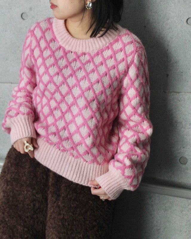ピンクのダイヤ柄が可愛い、立体感のあるニットセーター ふんわり素材で、着るだけでコーデが華やぐ主役アイテムです ⚫︎サイズ (平置き cm) 着丈 約56 肩幅 約48 身幅(脇下から計測) 約54 袖丈(脇下から計測)約50 着用スタッフ身長 153 ※着用画像のお色味が1番実物に近いです ※極力正確に採寸しておりますが、商品によって多少の誤差が生じる場合がございます為ご了承下さいませ。 ⚫︎素材 アクリル ナイロン ウール モヘア ⚫︎コンディション 目立つもの以外の記載はしておりませんので、 古着の特質上、使用感に関してはご理解下さいませ。少しでも不安がありましたら、お気軽にお問い合わせ下さいませ。 【商品のキャンセルについて】 商品発送後のキャンセルは承っておりません。 ならびに、似合わない想像と違うなどの個人的な理由での返品交換はお受けできません。 予めご了承くださいませ。 ※店頭販売と並行しておりますので、決済後でもsoldの場合がございます。お客様には大変ご迷惑をかけいたしますが予めご了承下さいませ。