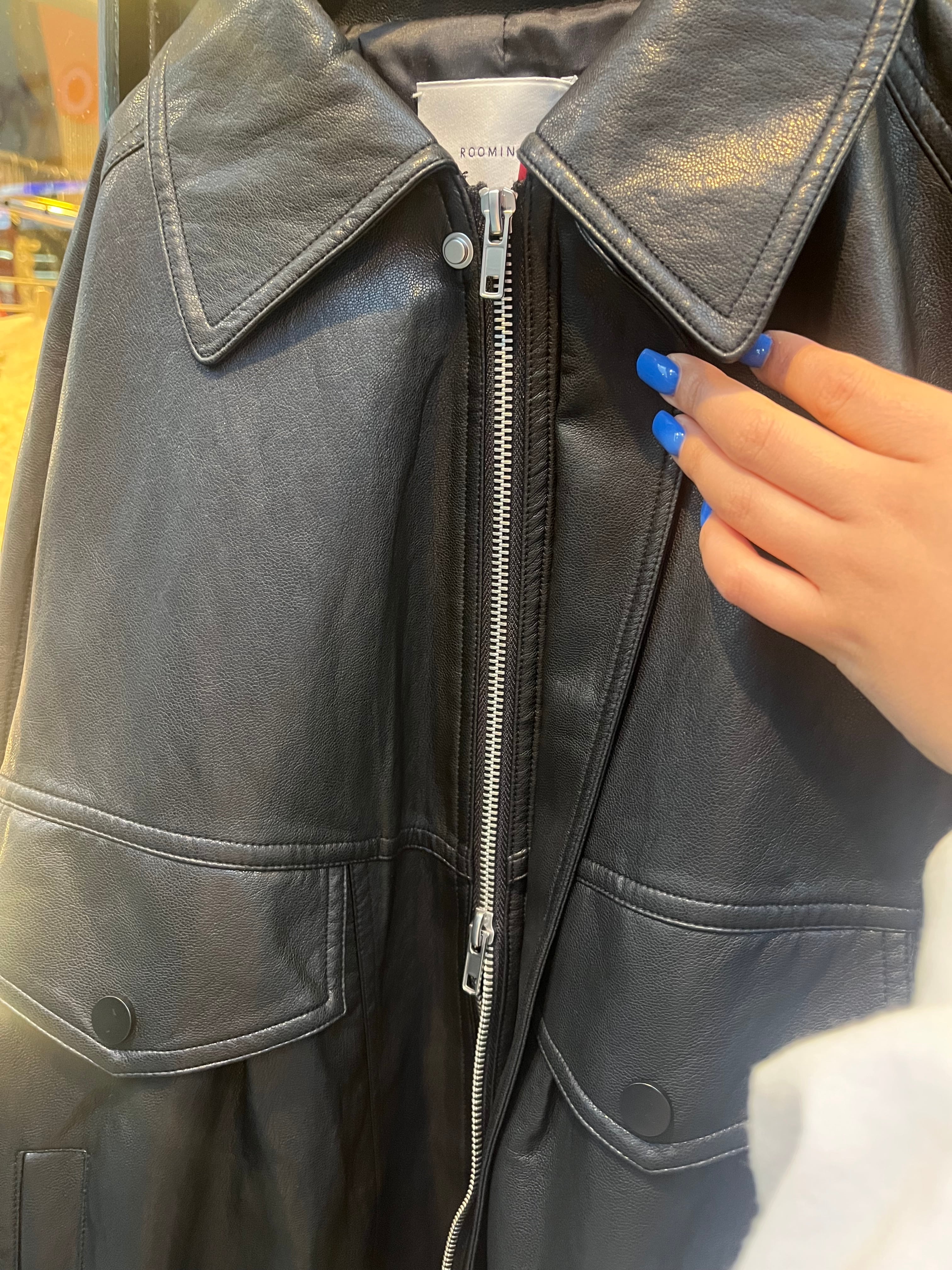 vegan leather double zip jacket