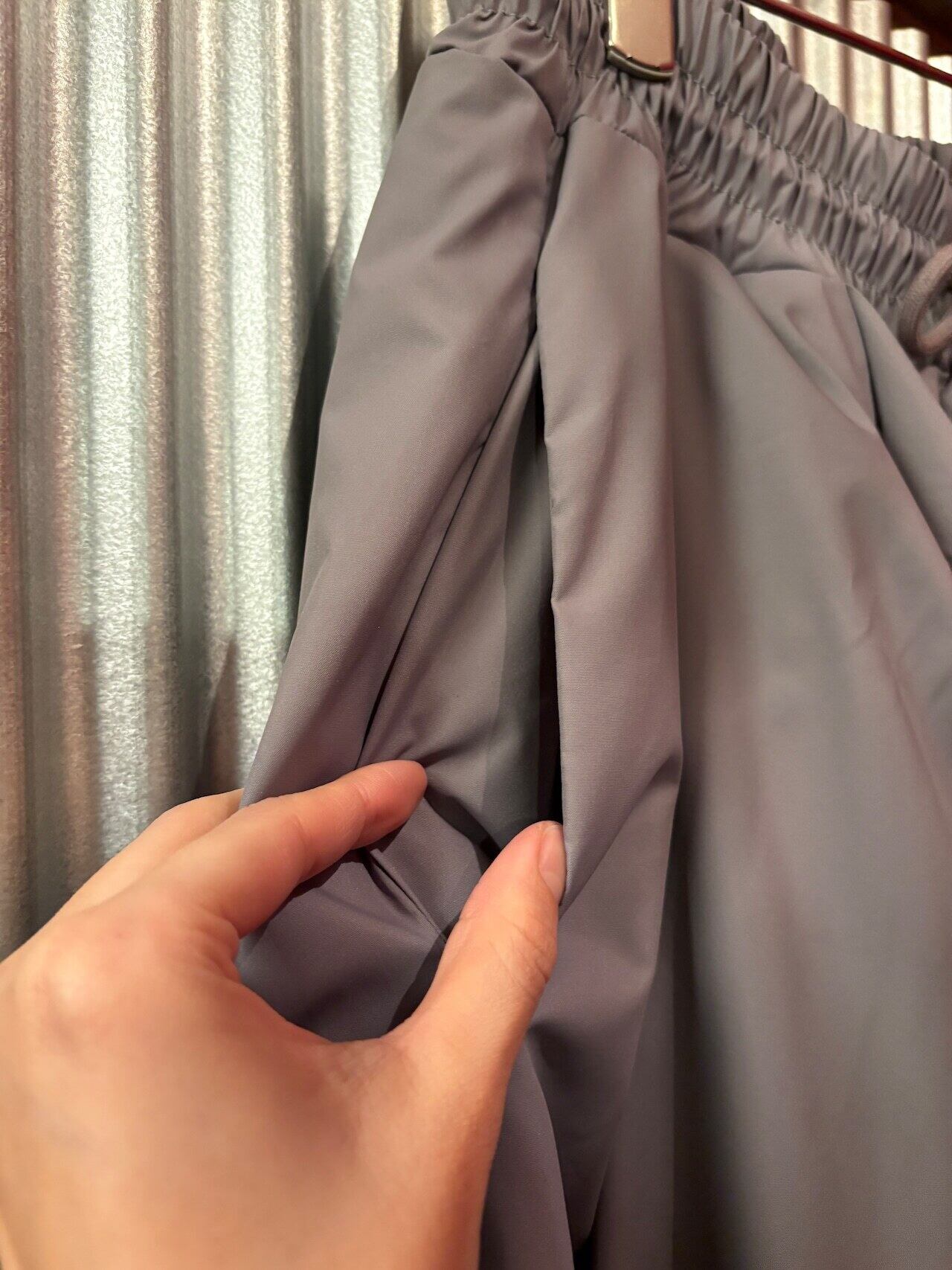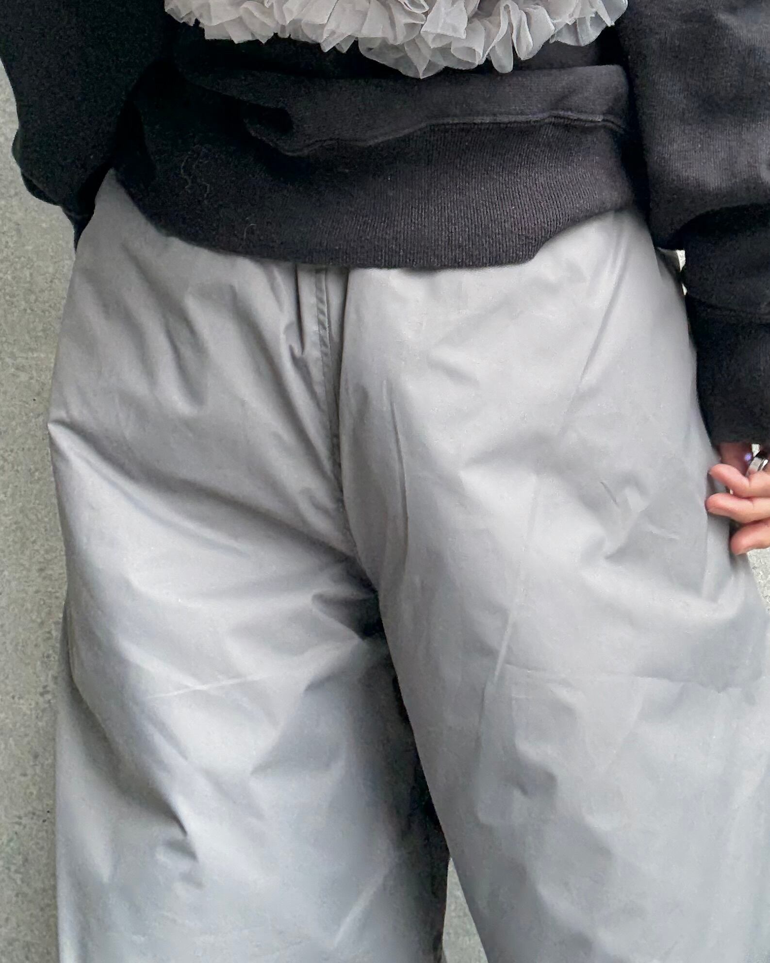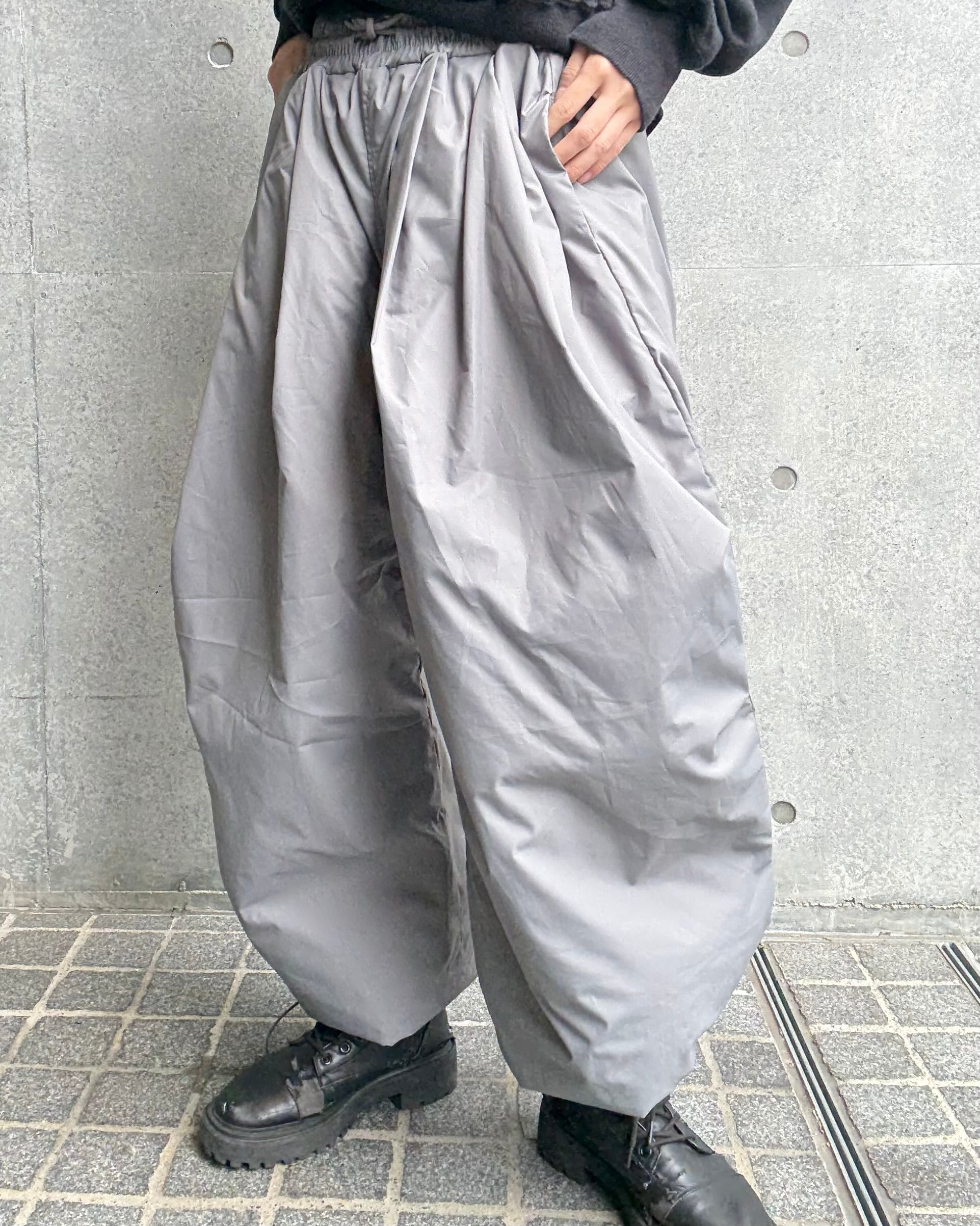 ウエスト周りは、ゴムが太めに入ることですっきりとしているので、セーターや大きめなスウェットを着ても膨らみすぎず◎