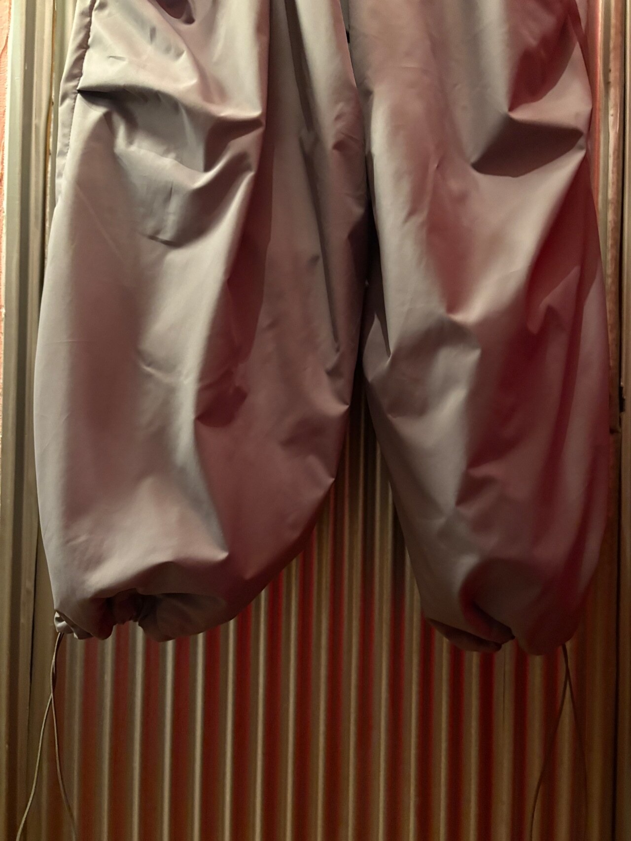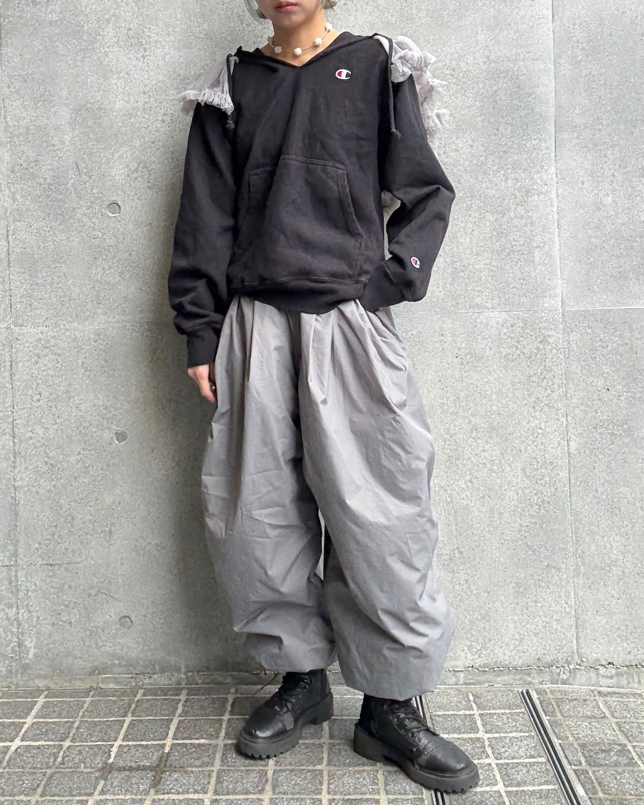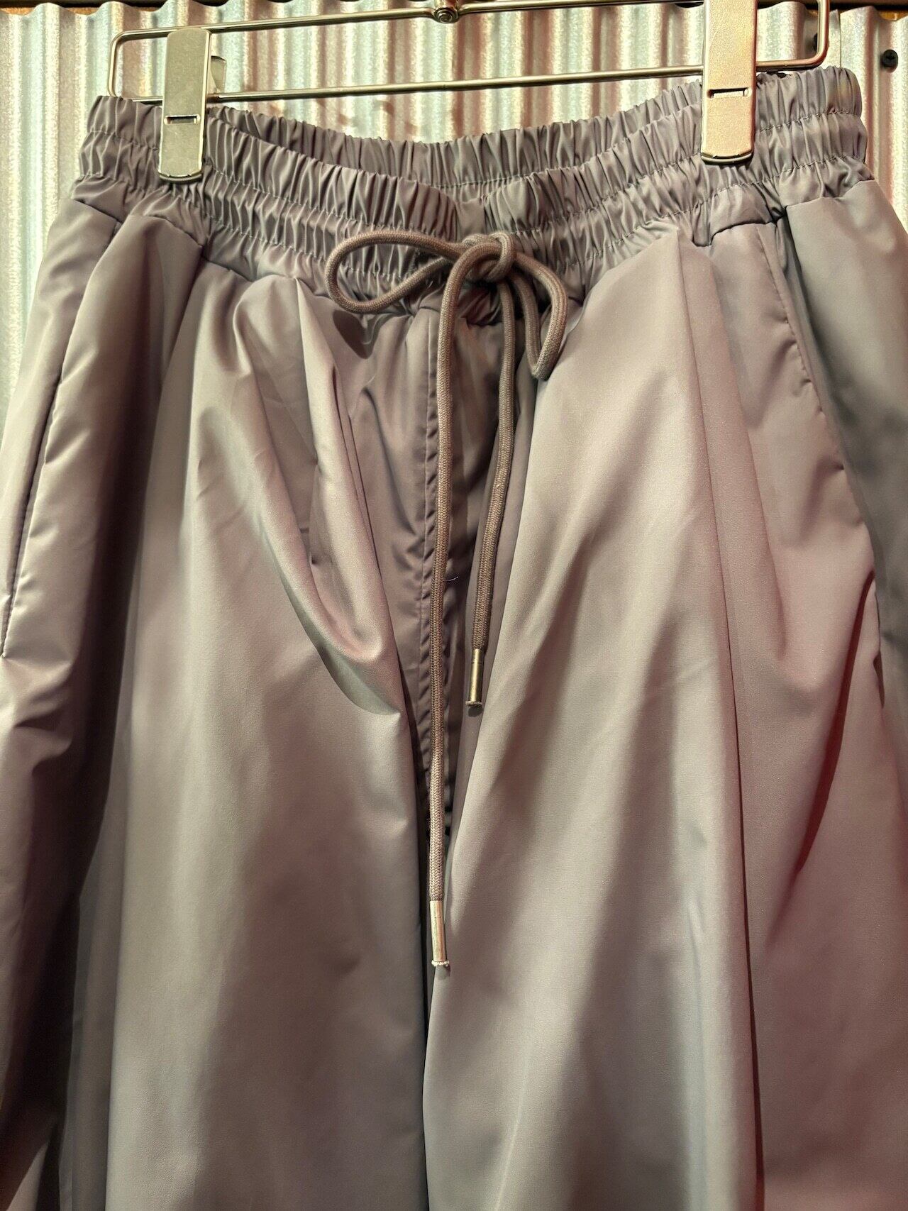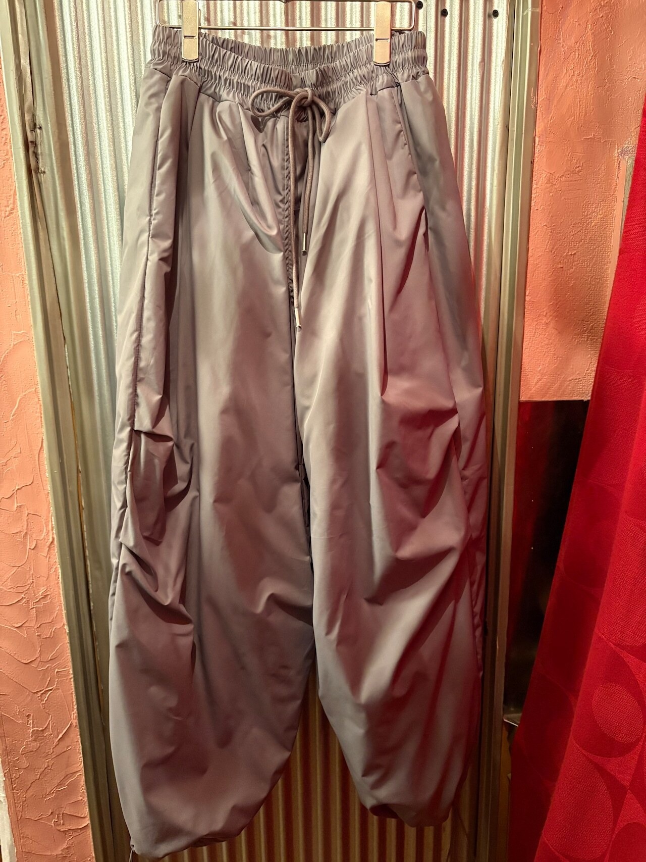 ウエスト周りは、ゴムが太めに入ることですっきりとしているので、セーターや大きめなスウェットを着ても膨らみすぎず◎