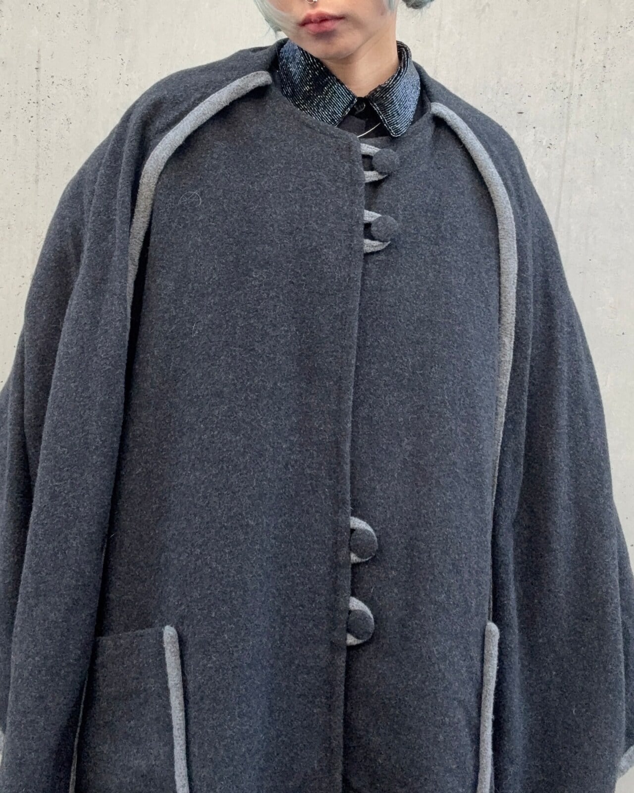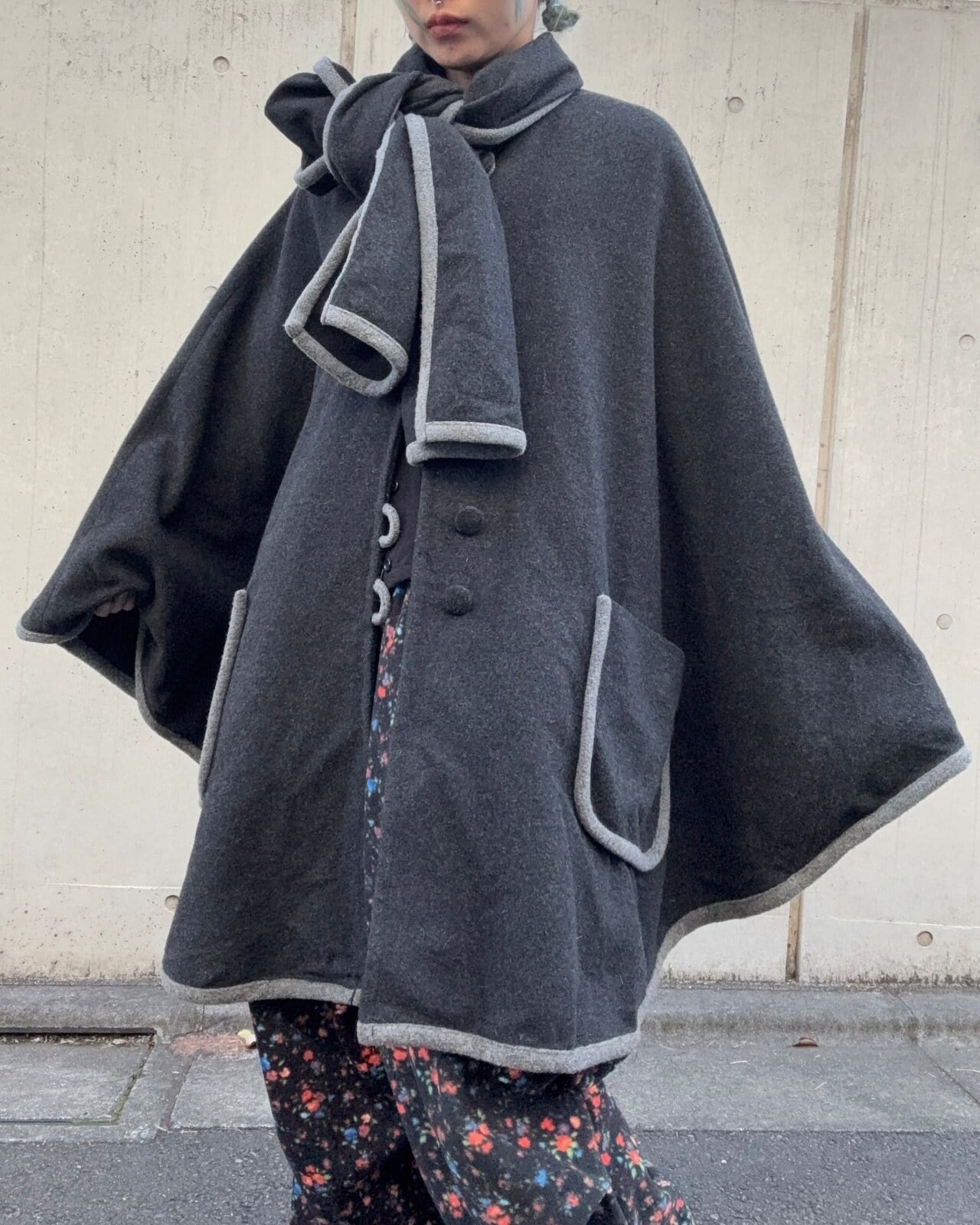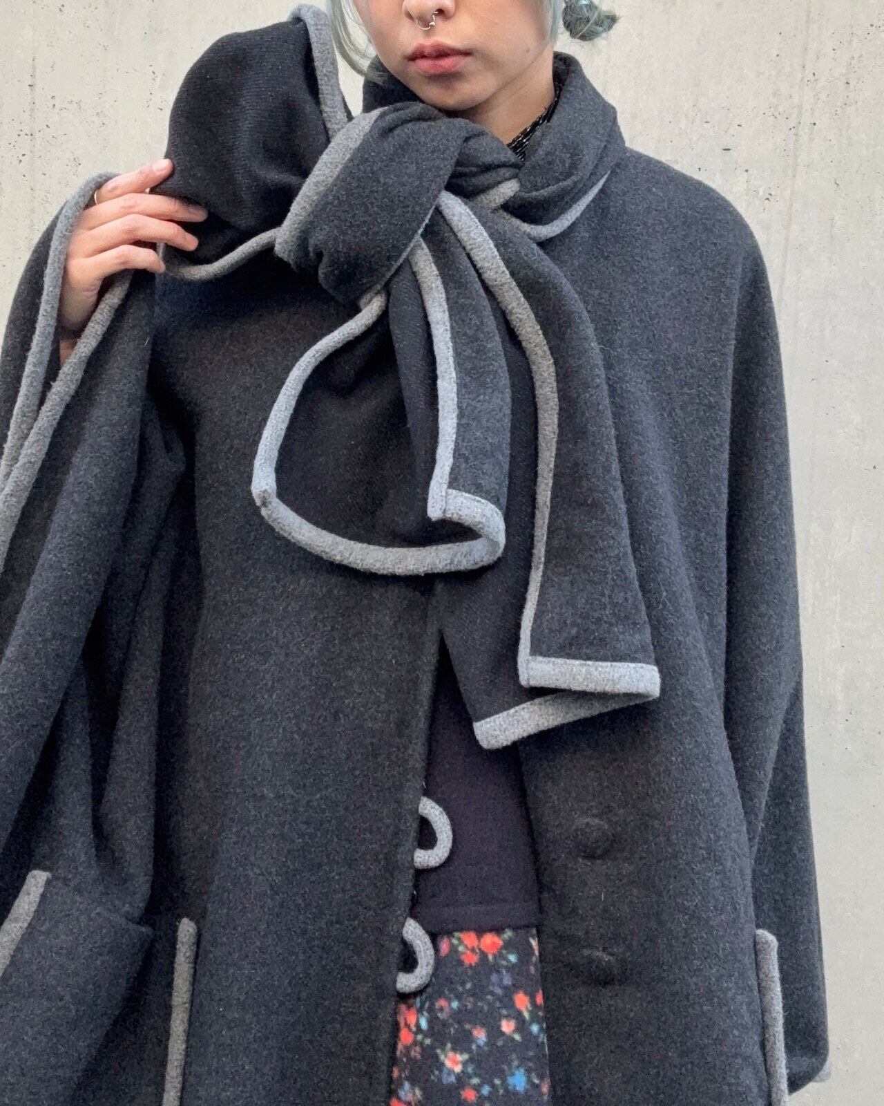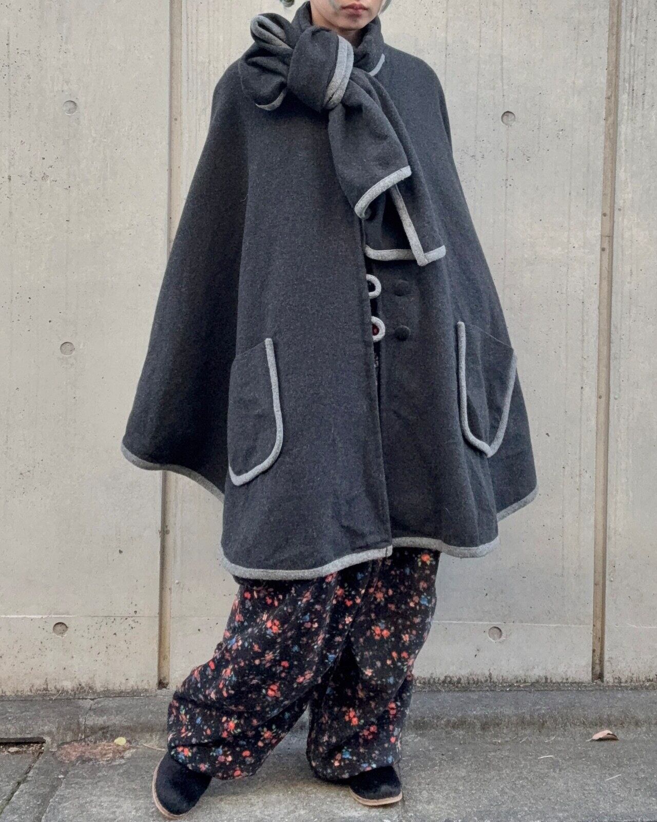 ダークグレーカラーのポンチョコートです。