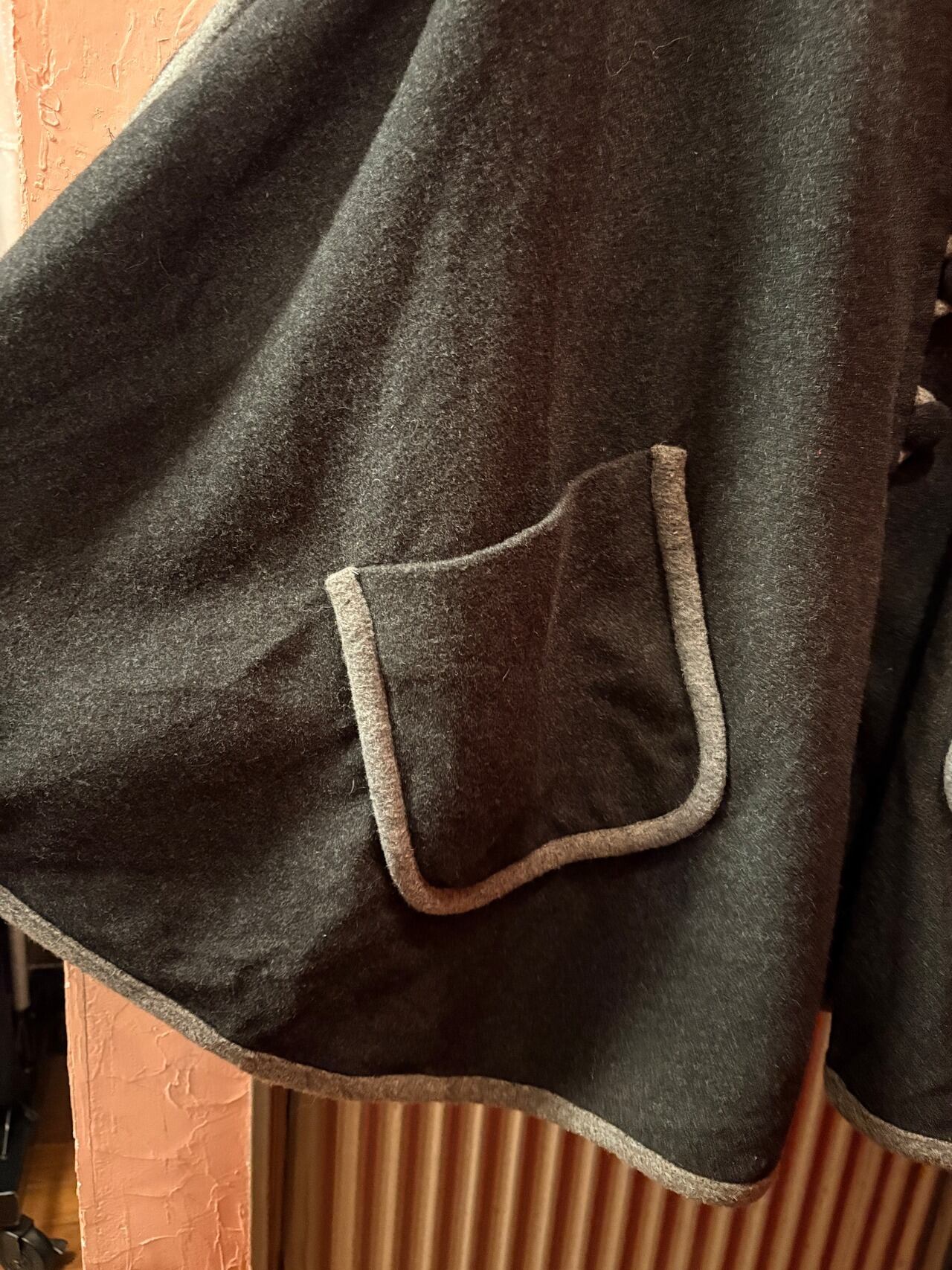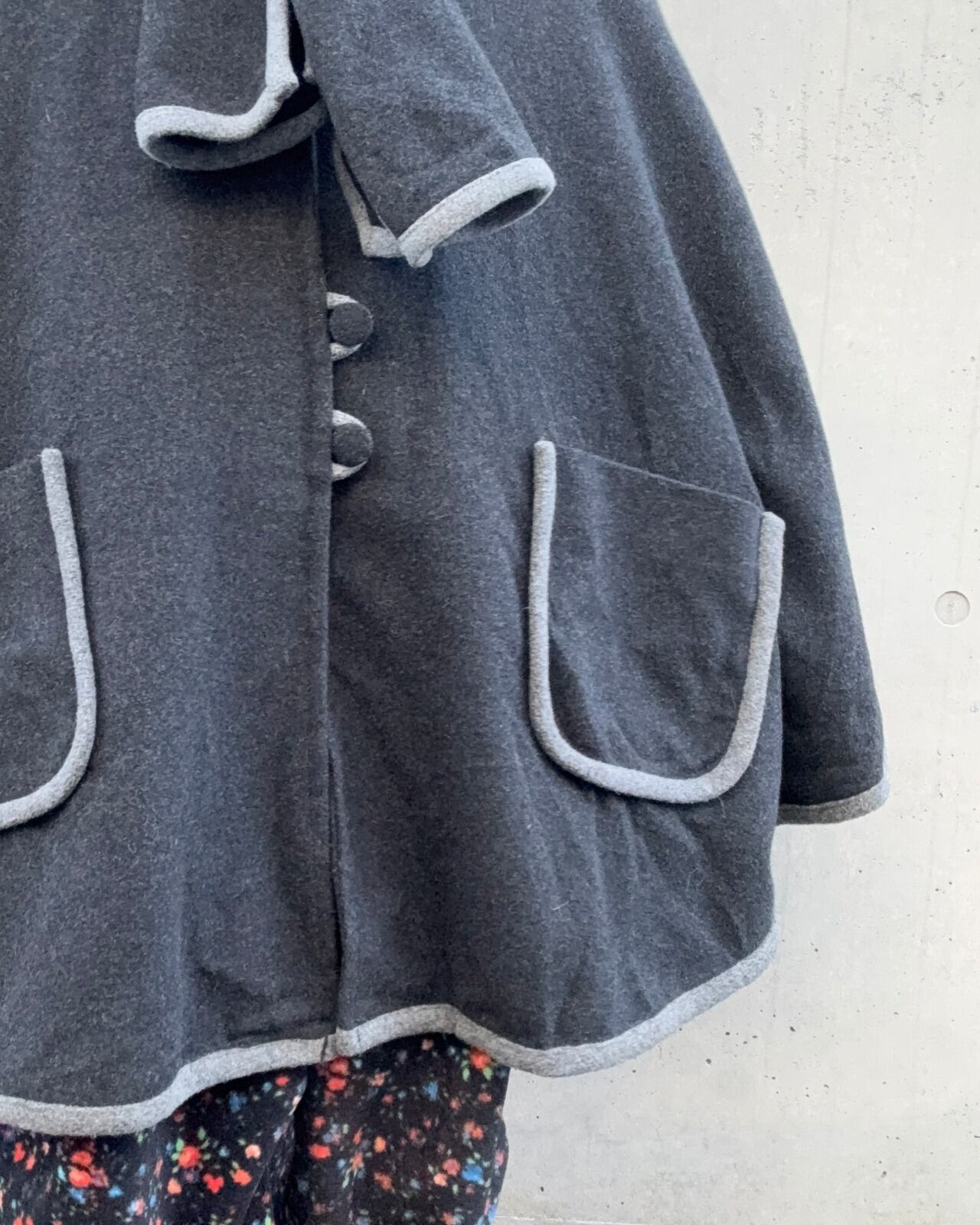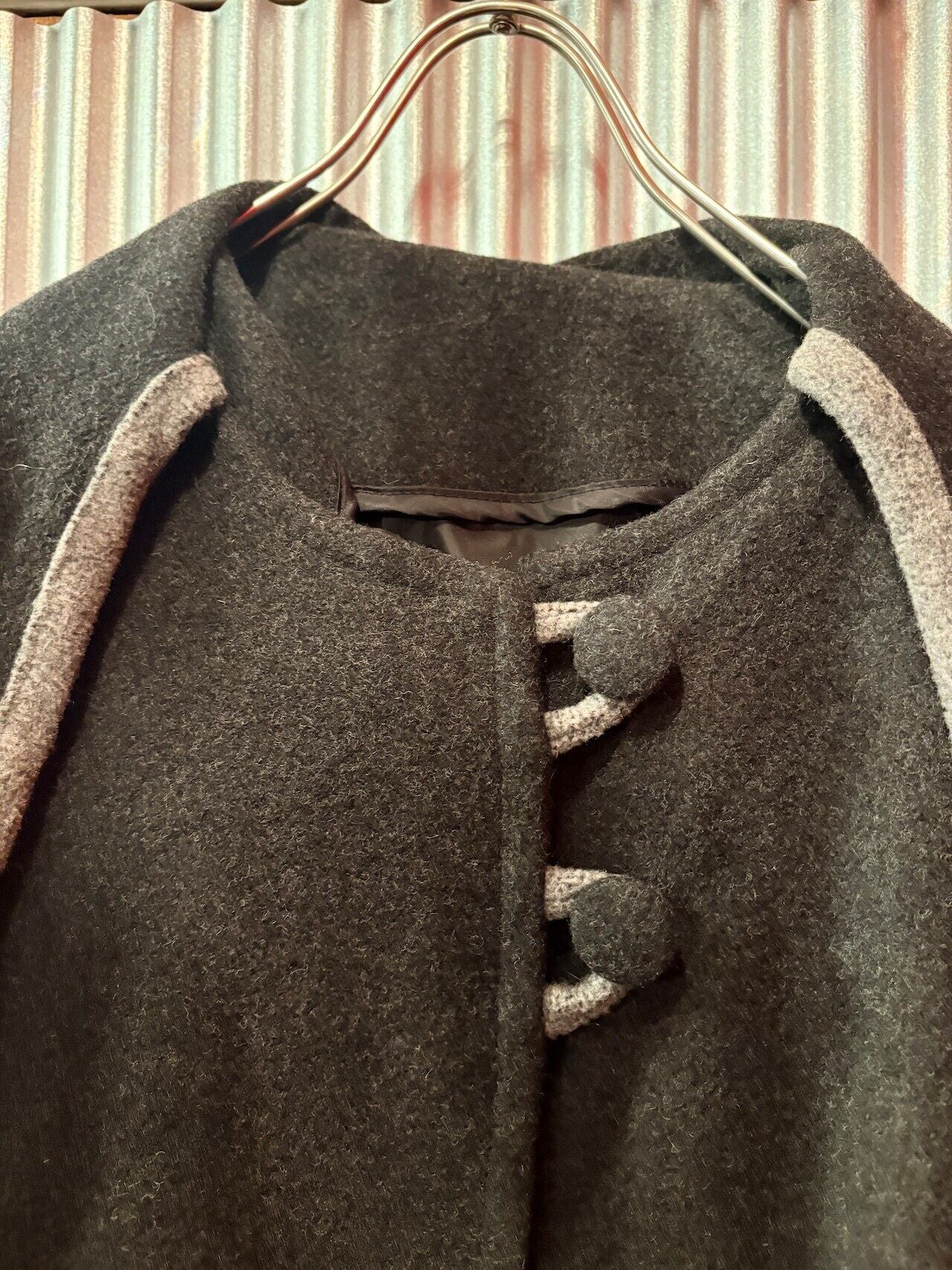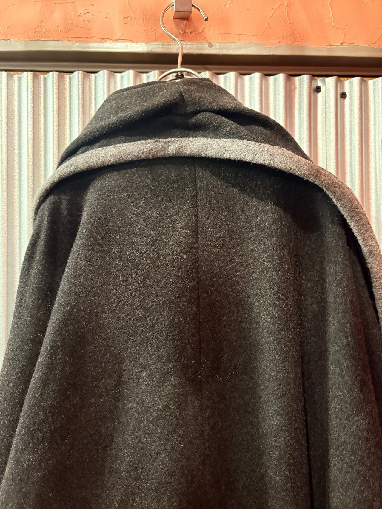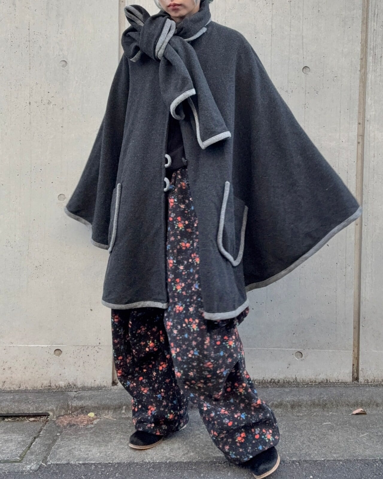 ダークグレーカラーのポンチョコートです。