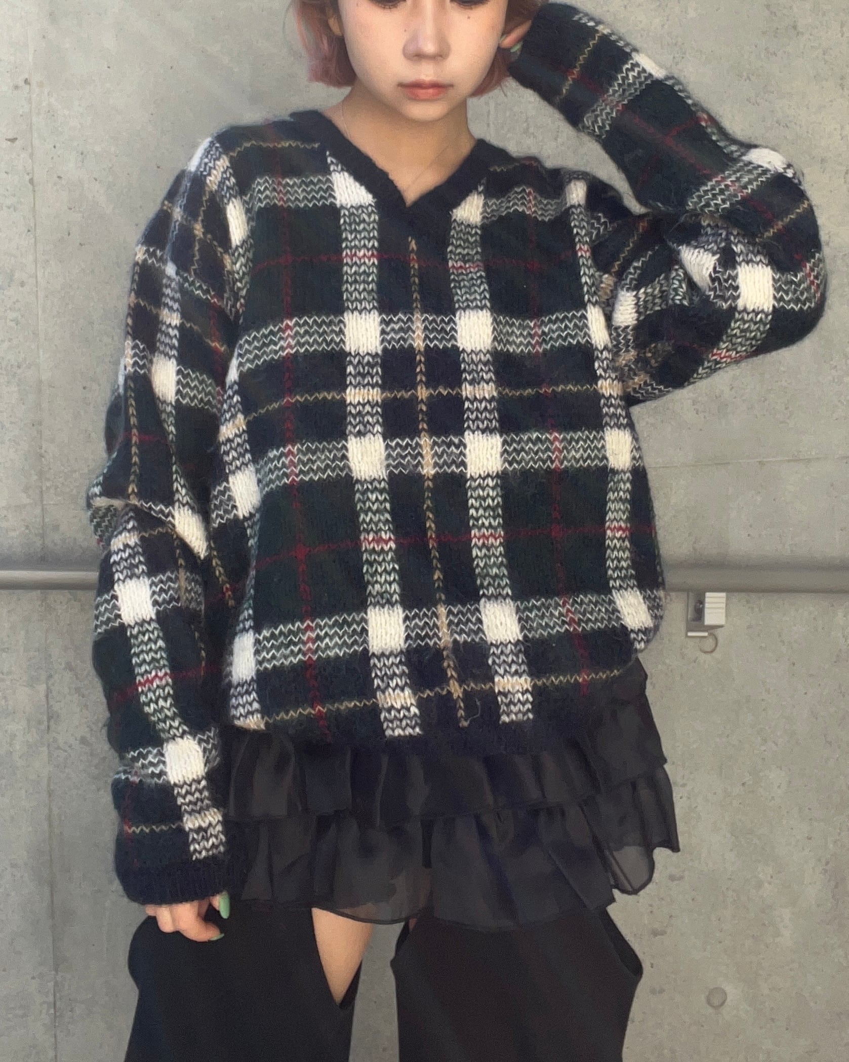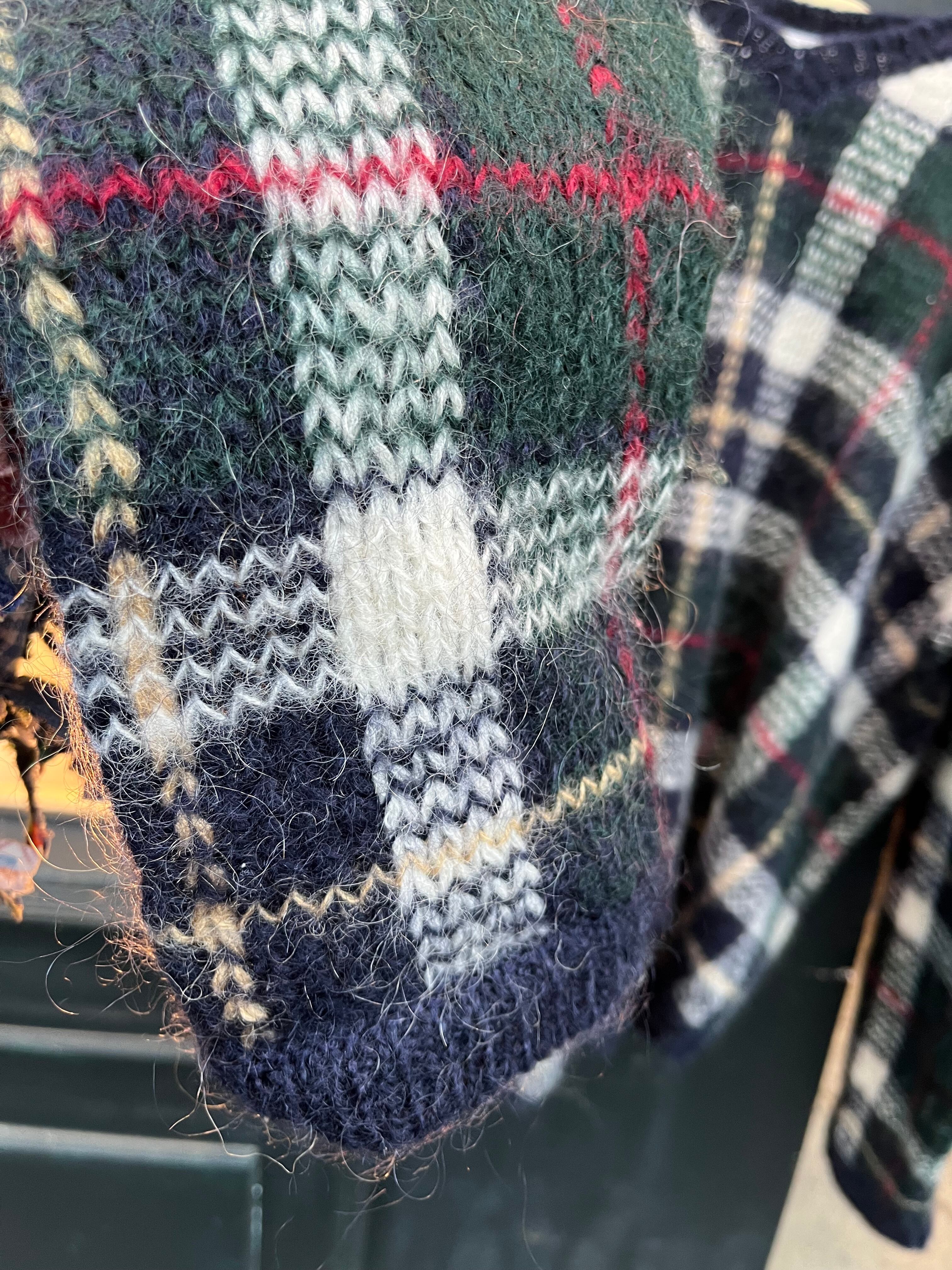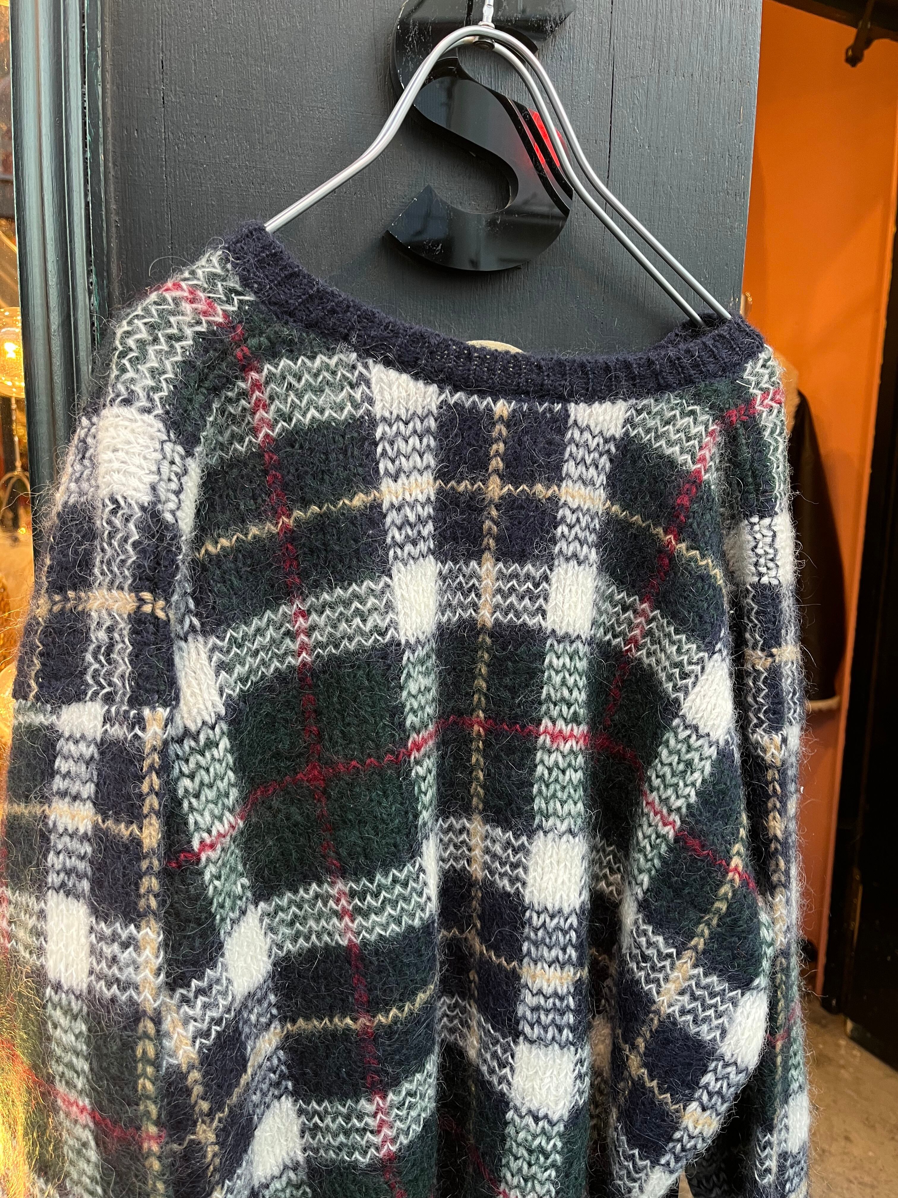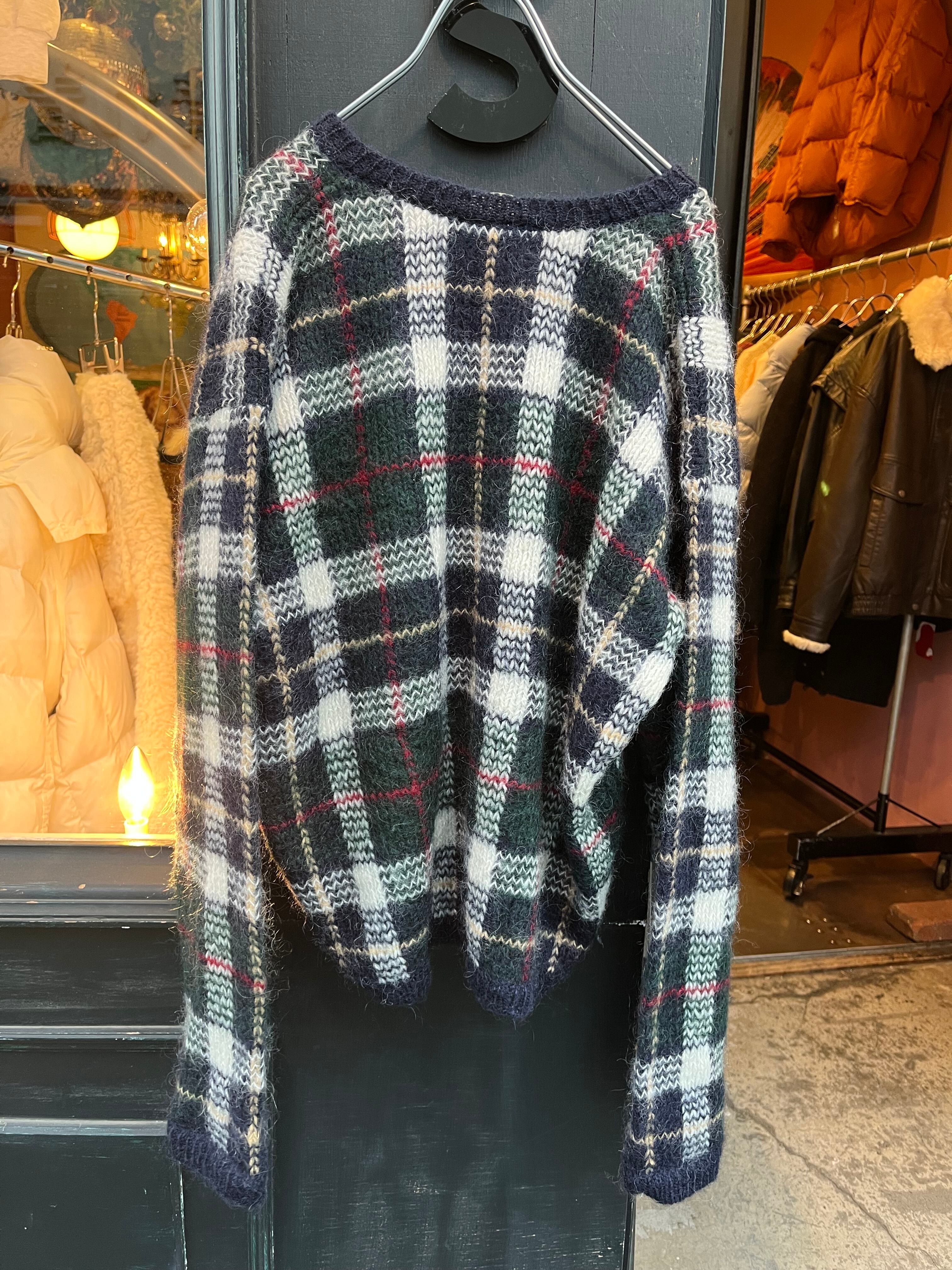 mohair混合のチェック柄セーター
