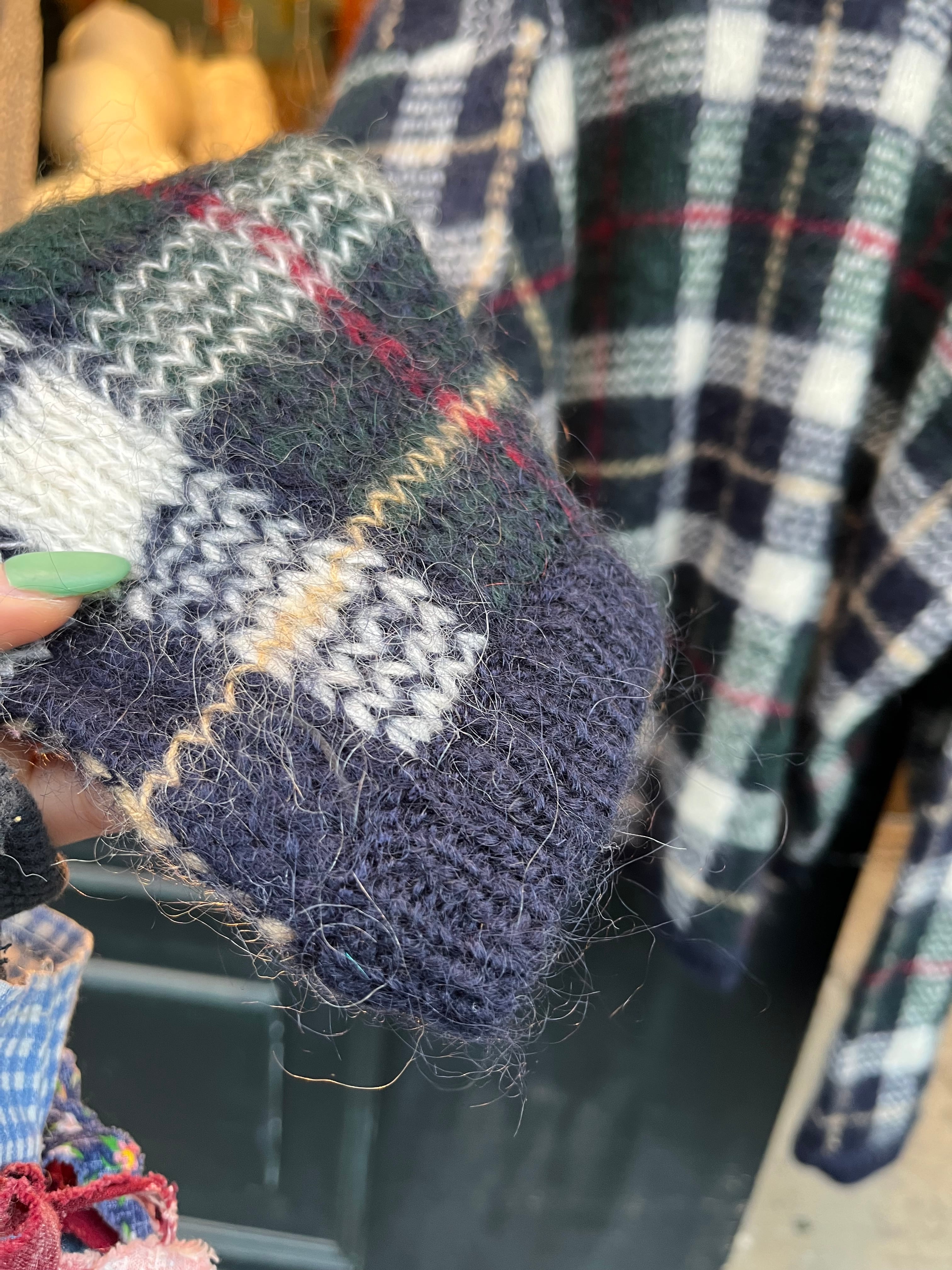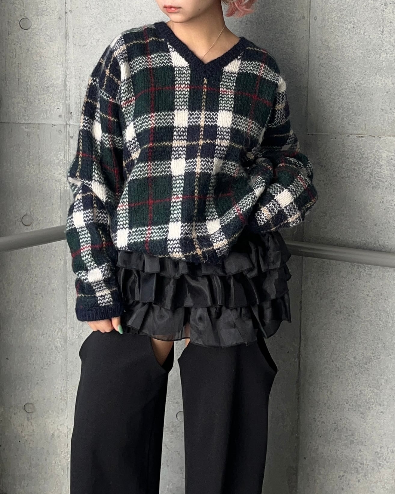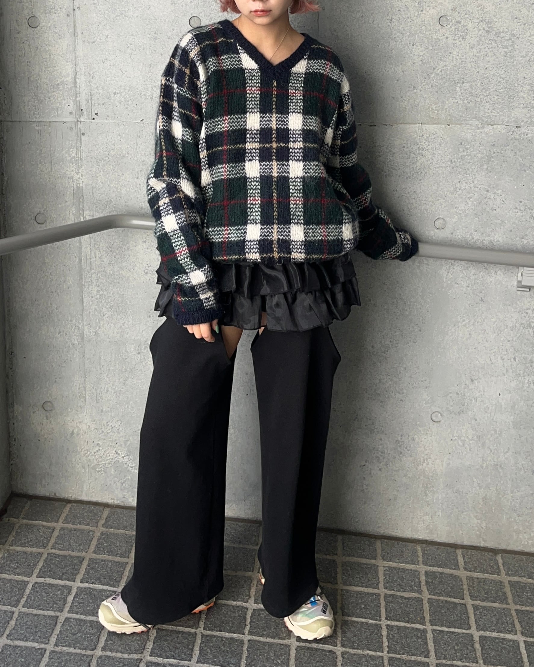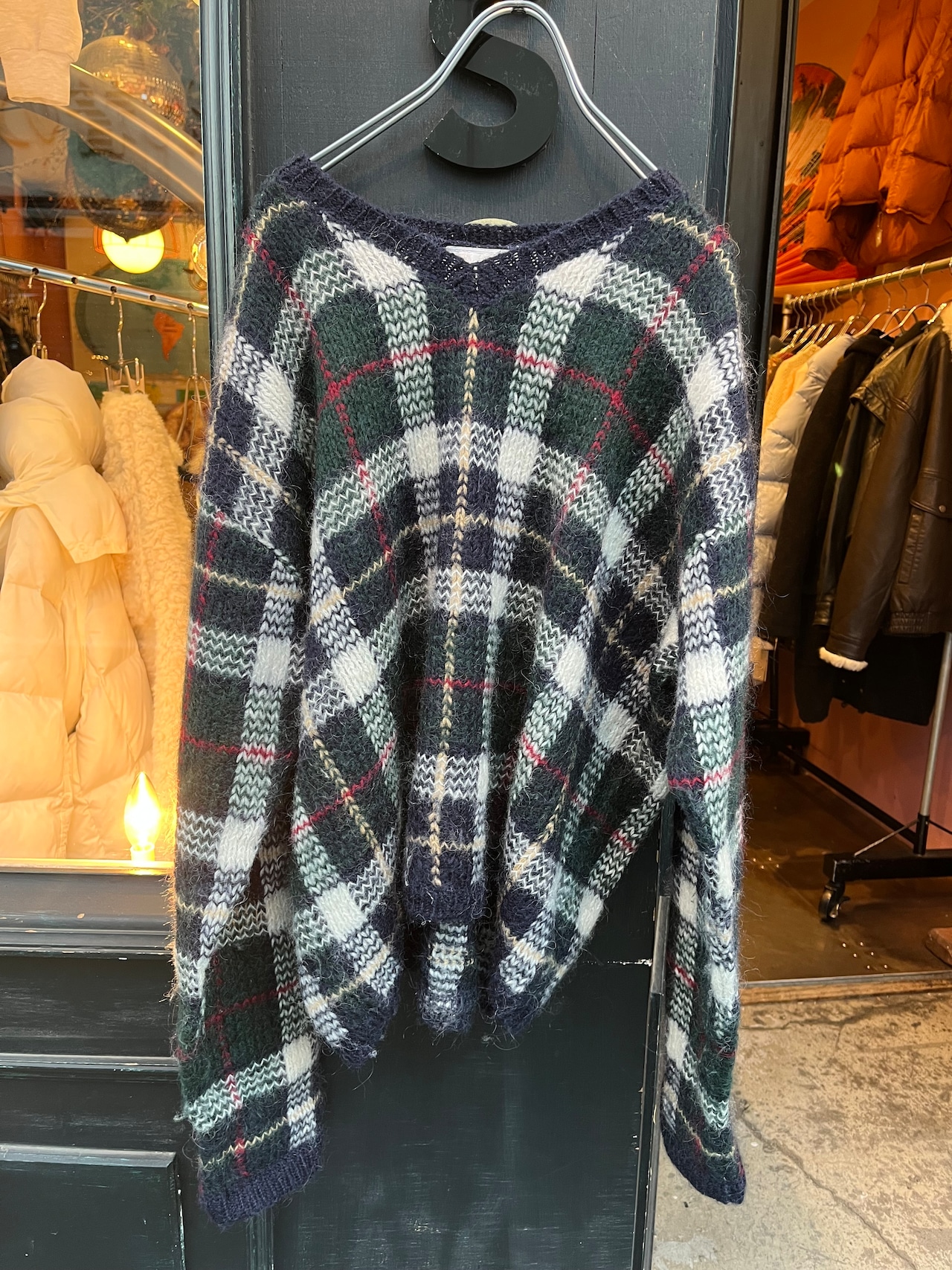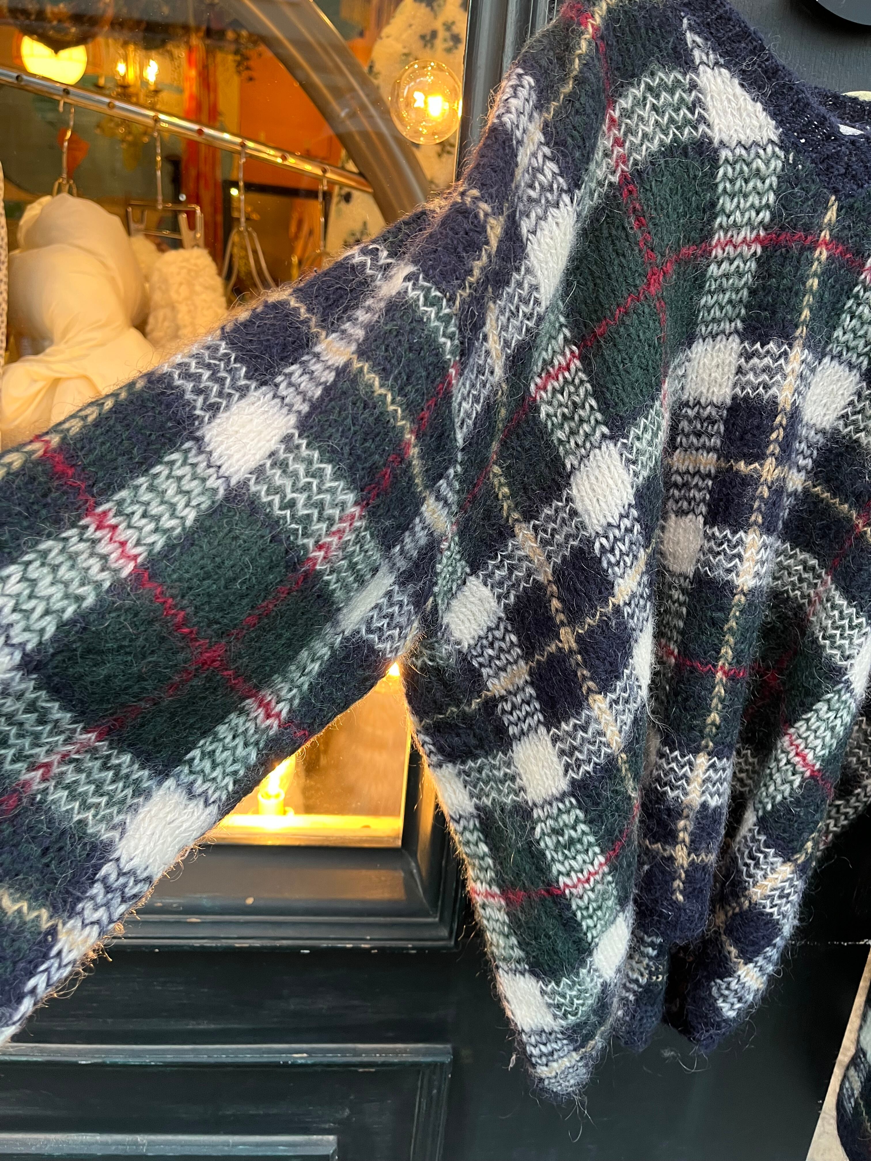 mohair混合のチェック柄セーター
