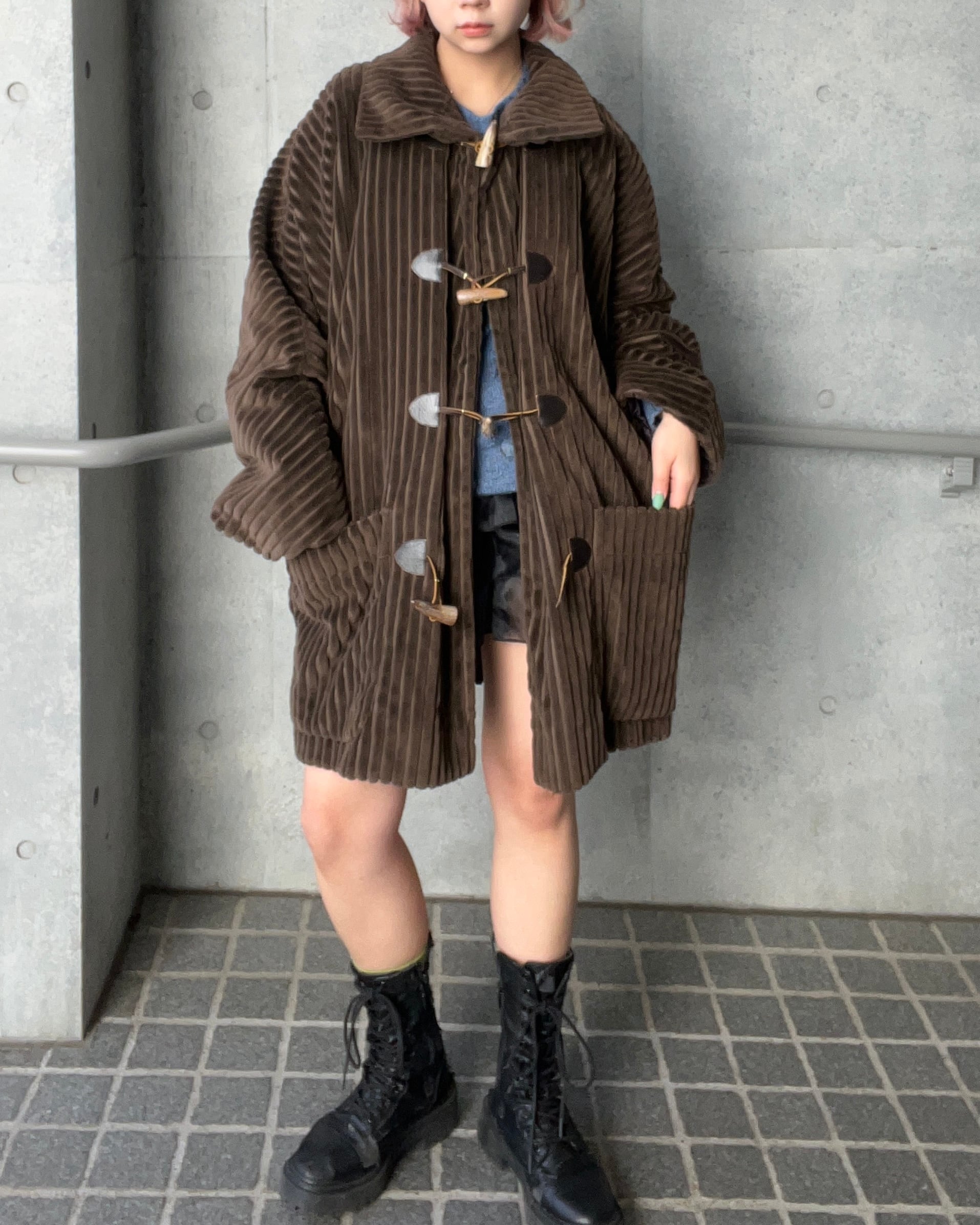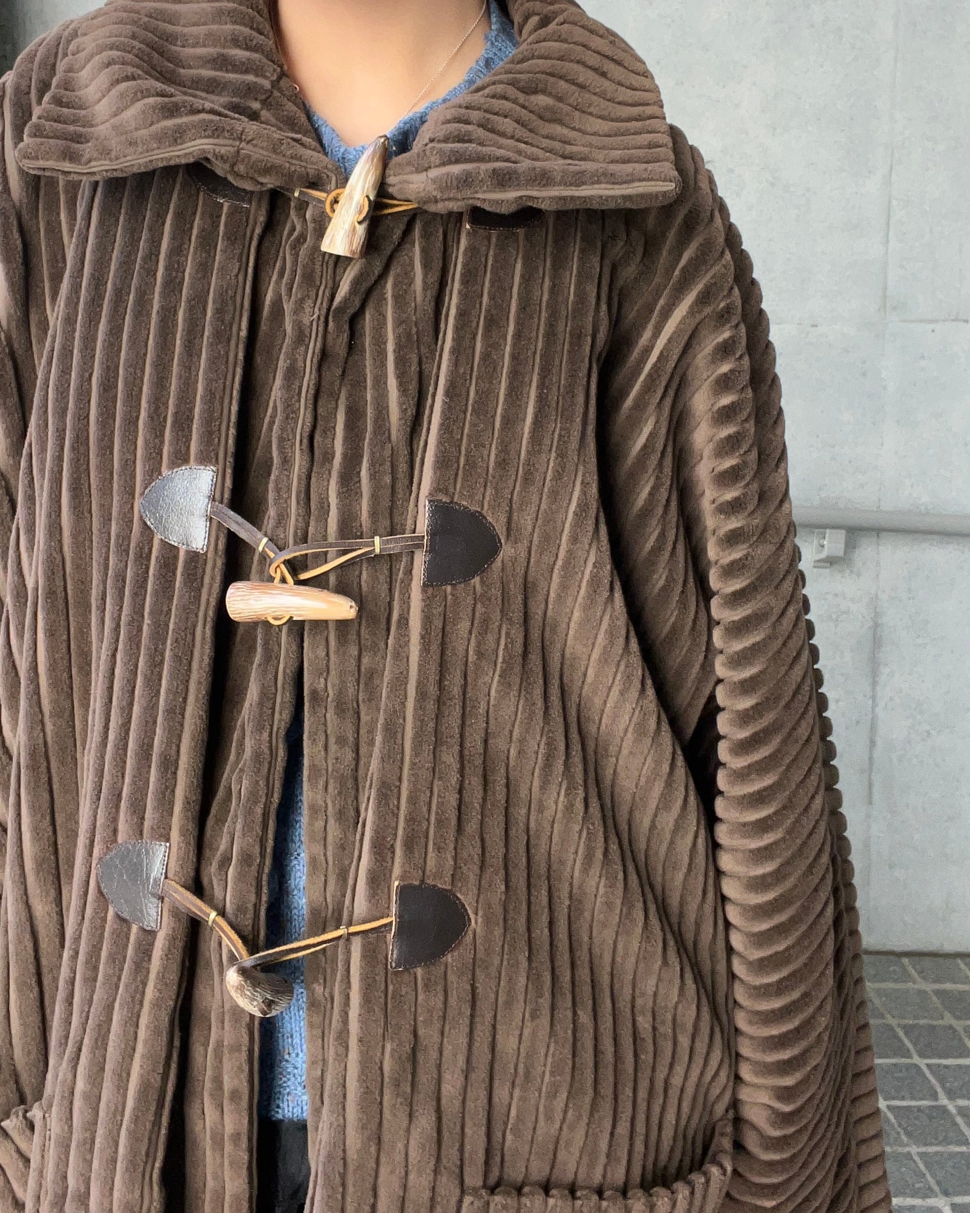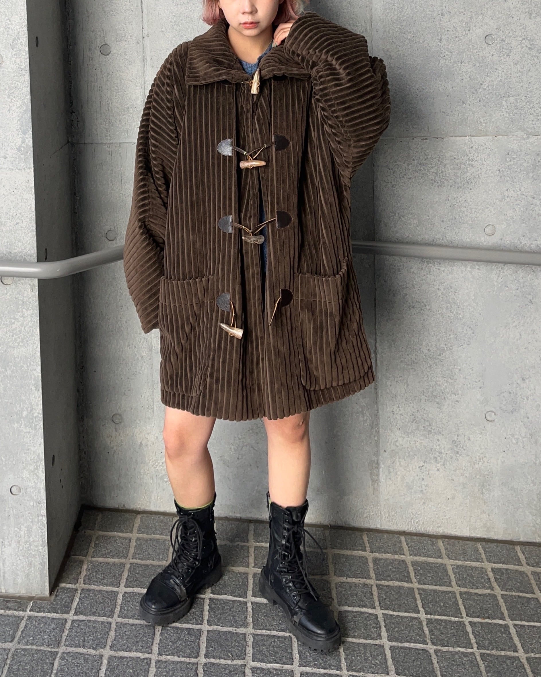 太畝のコーデュロイ素材が存在感のあるダッフルコート