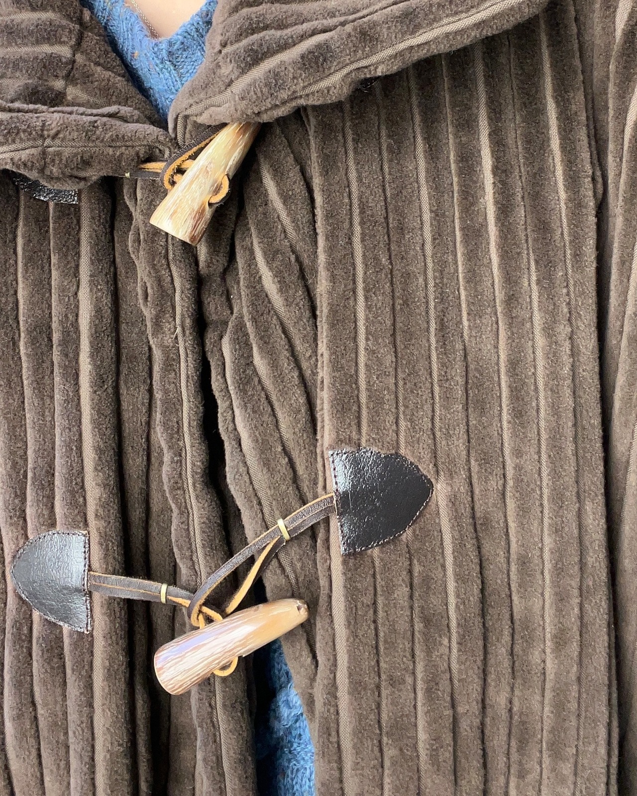 トグルボタンと深みのあるブラウンが、ヴィンテージらしい温もりを出してくれます