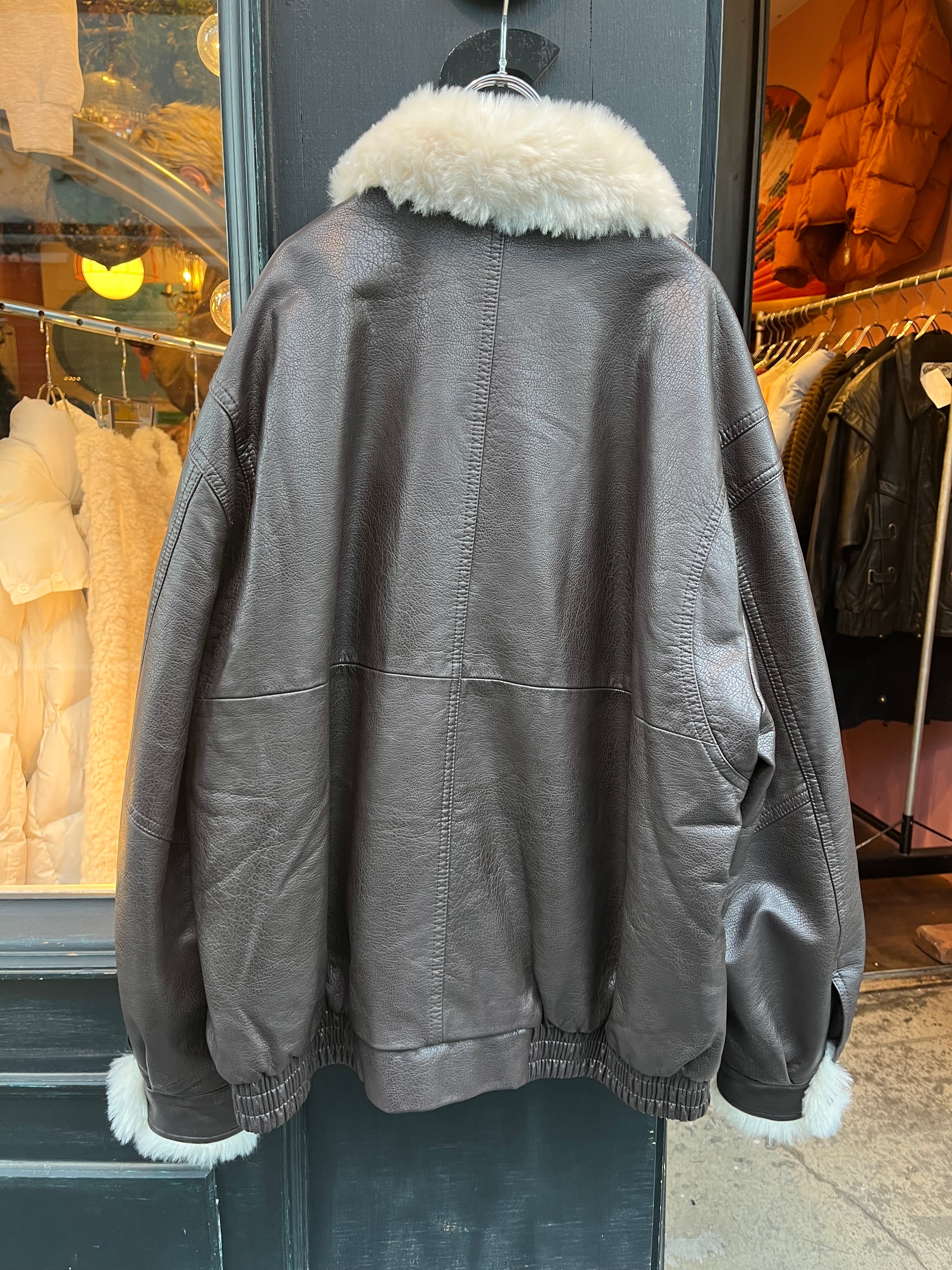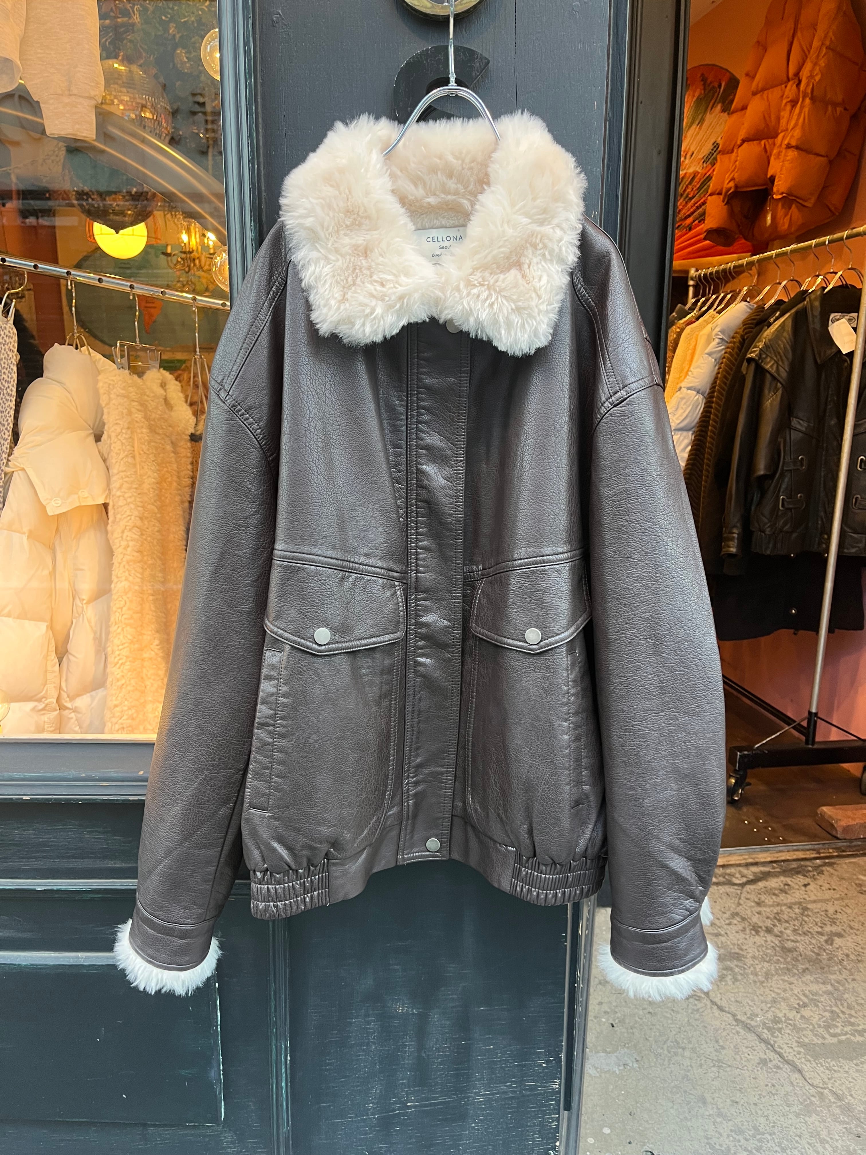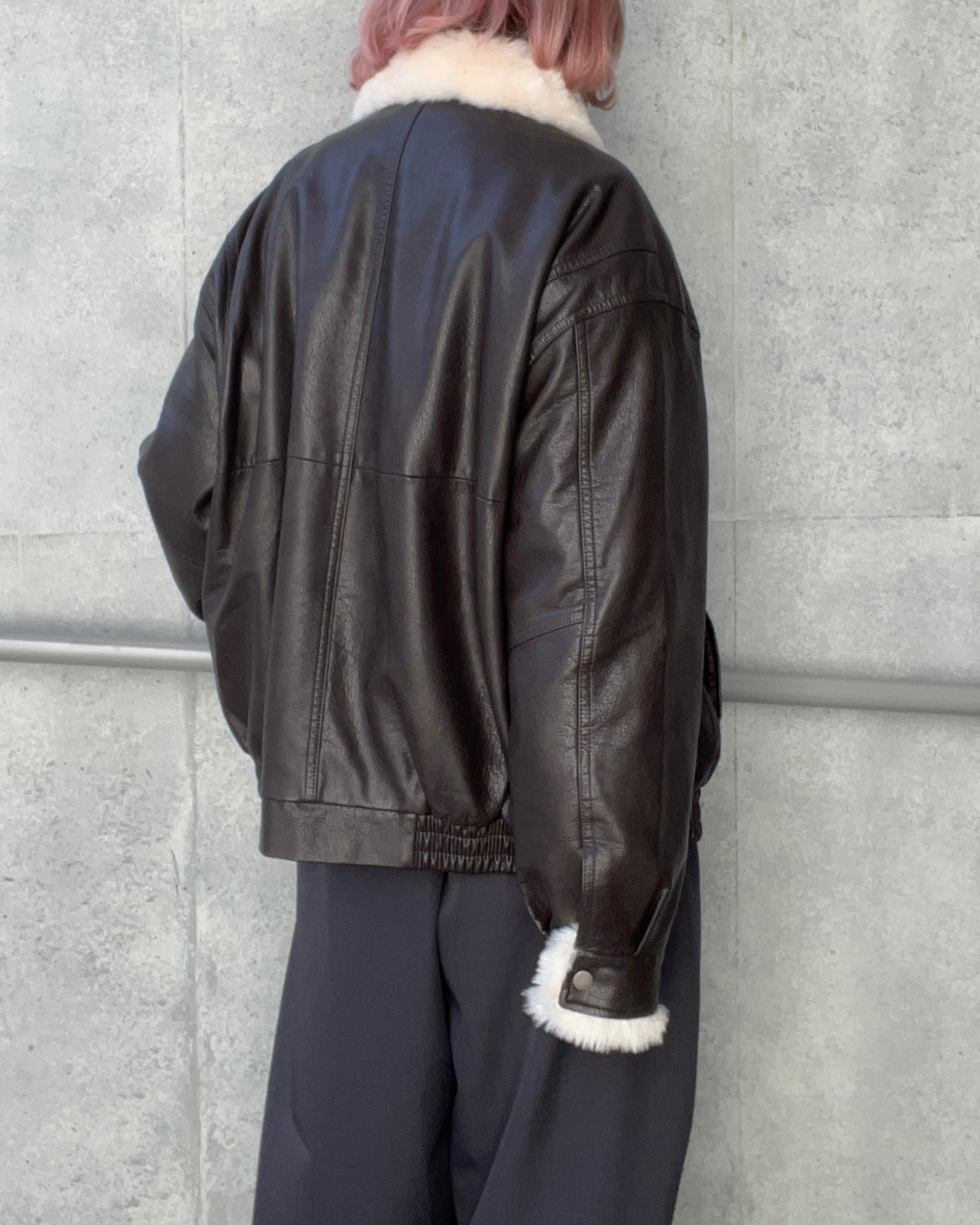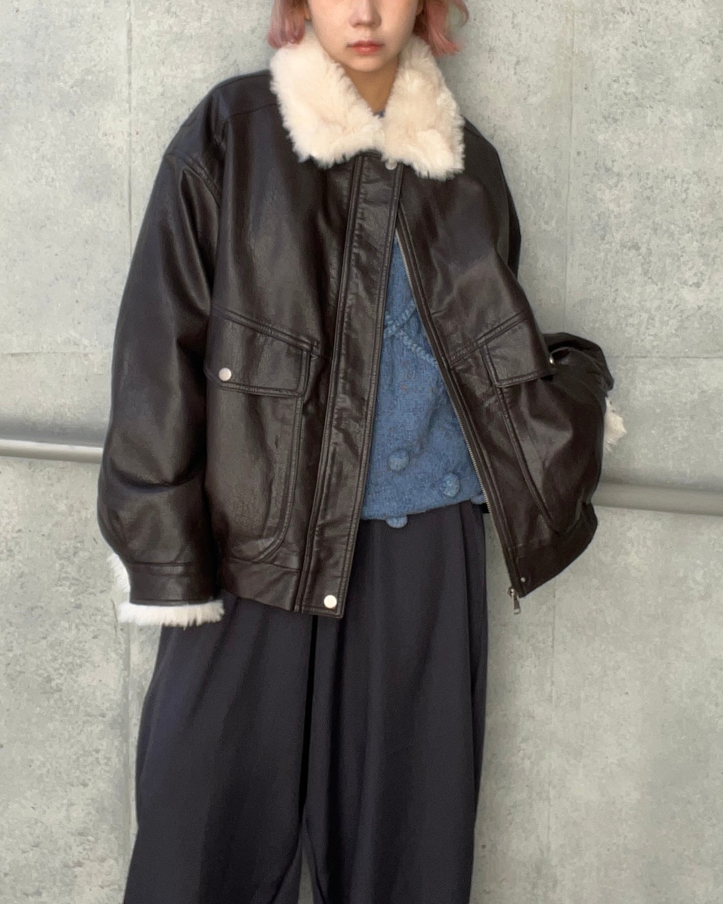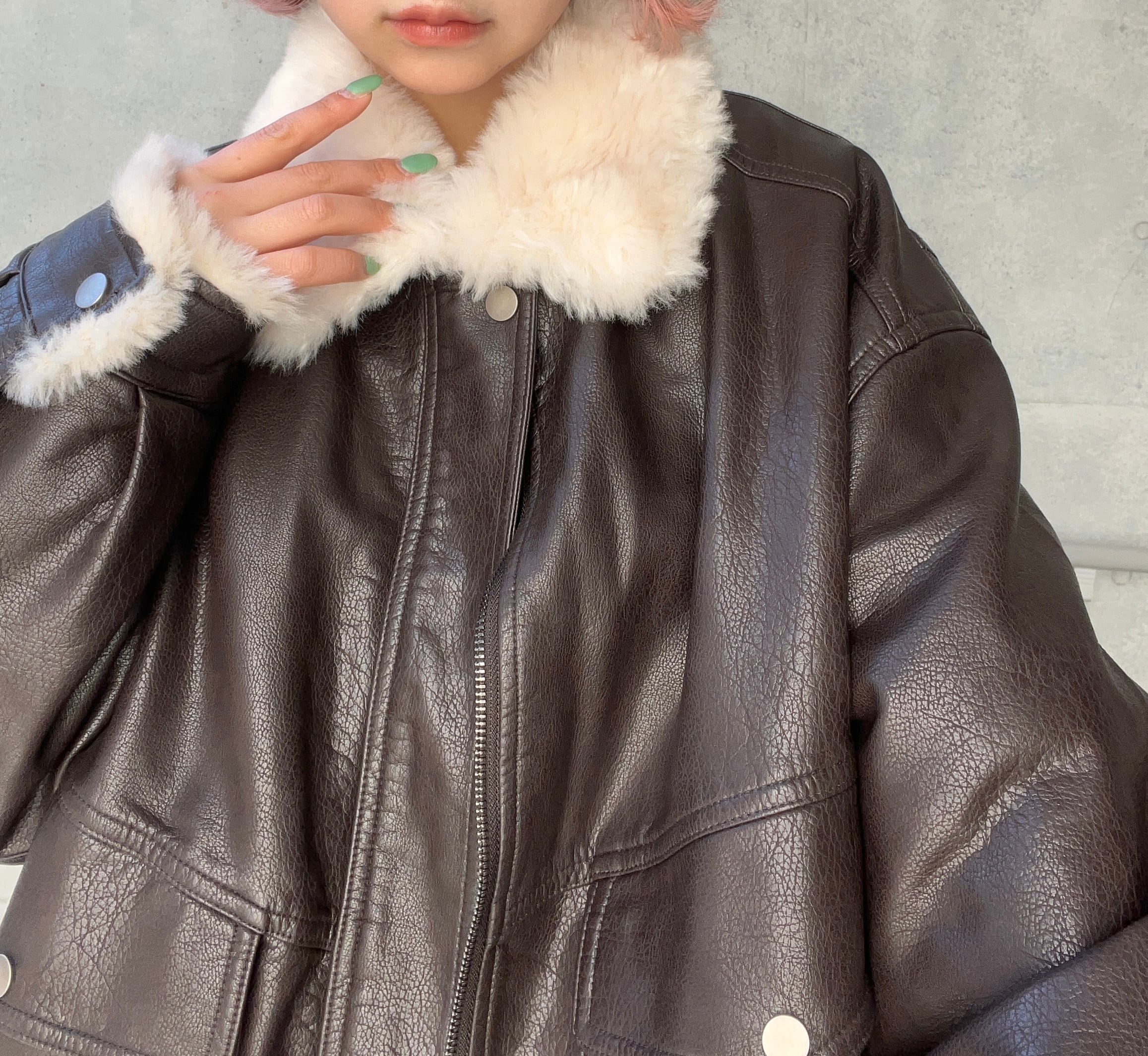 ずっと触ったいたくなるようなフワッフワな触り心地のボアと、抜け感のあるブラウンカラーが魅力的なビーガンレザーのジャケット