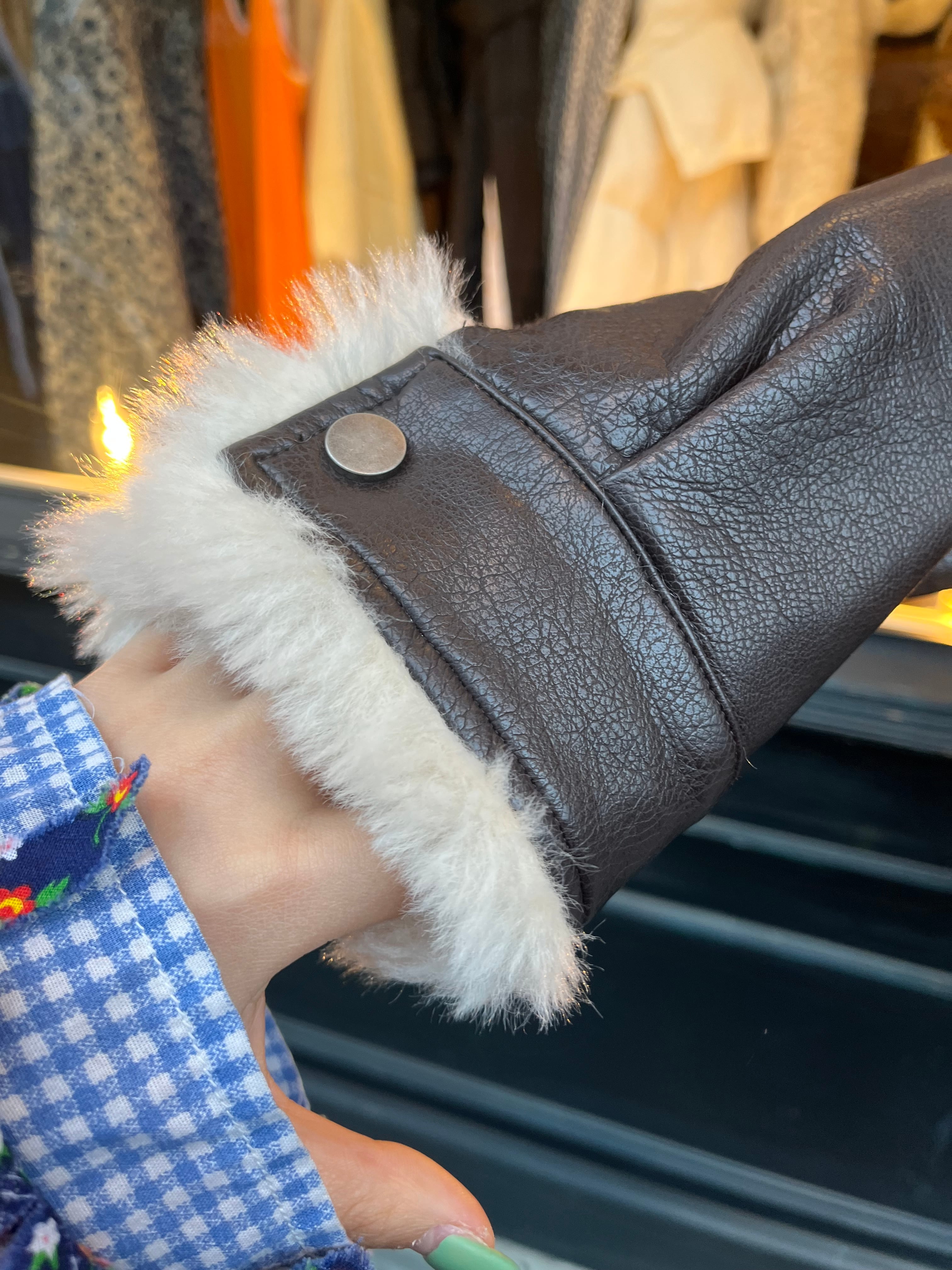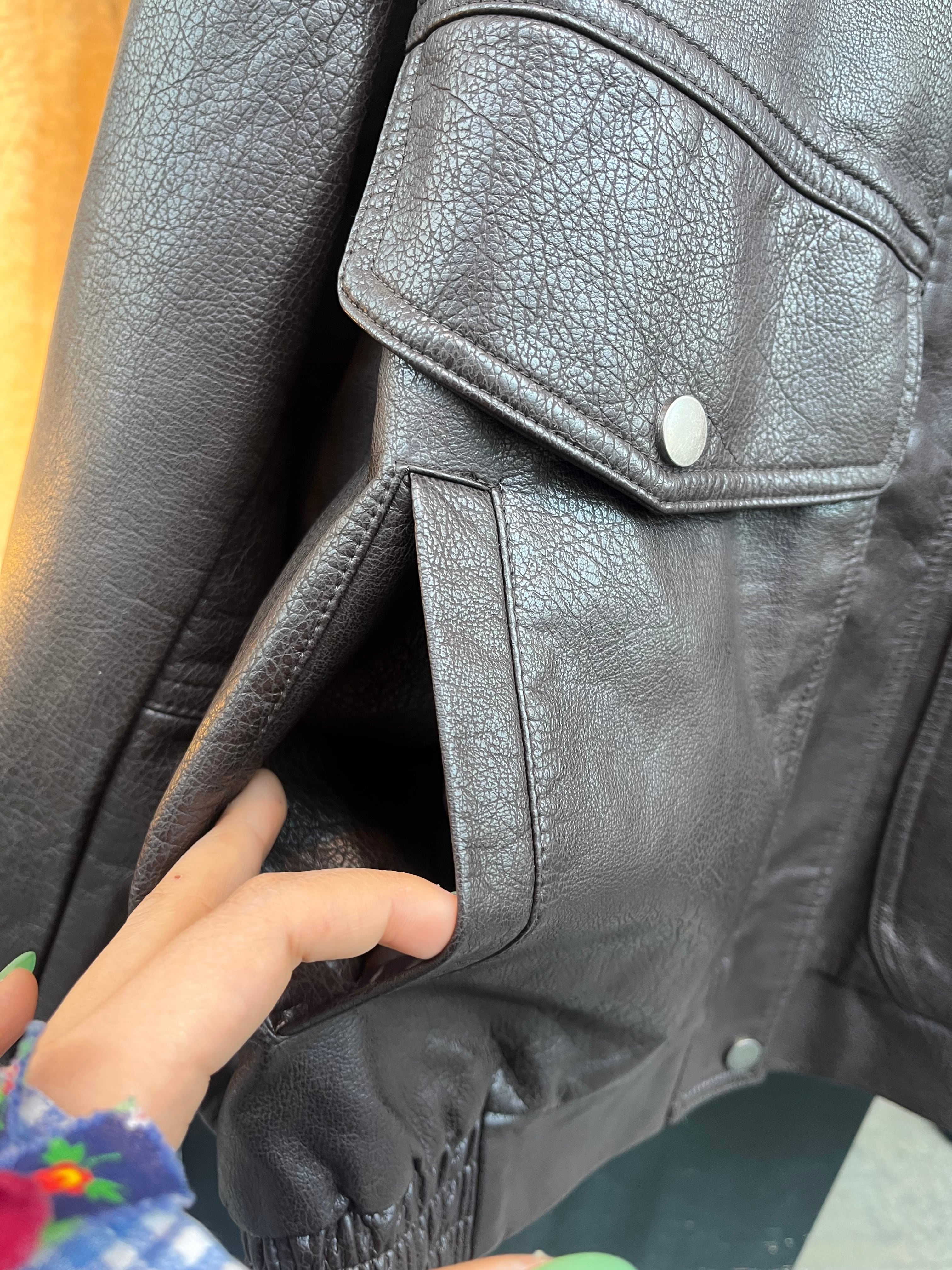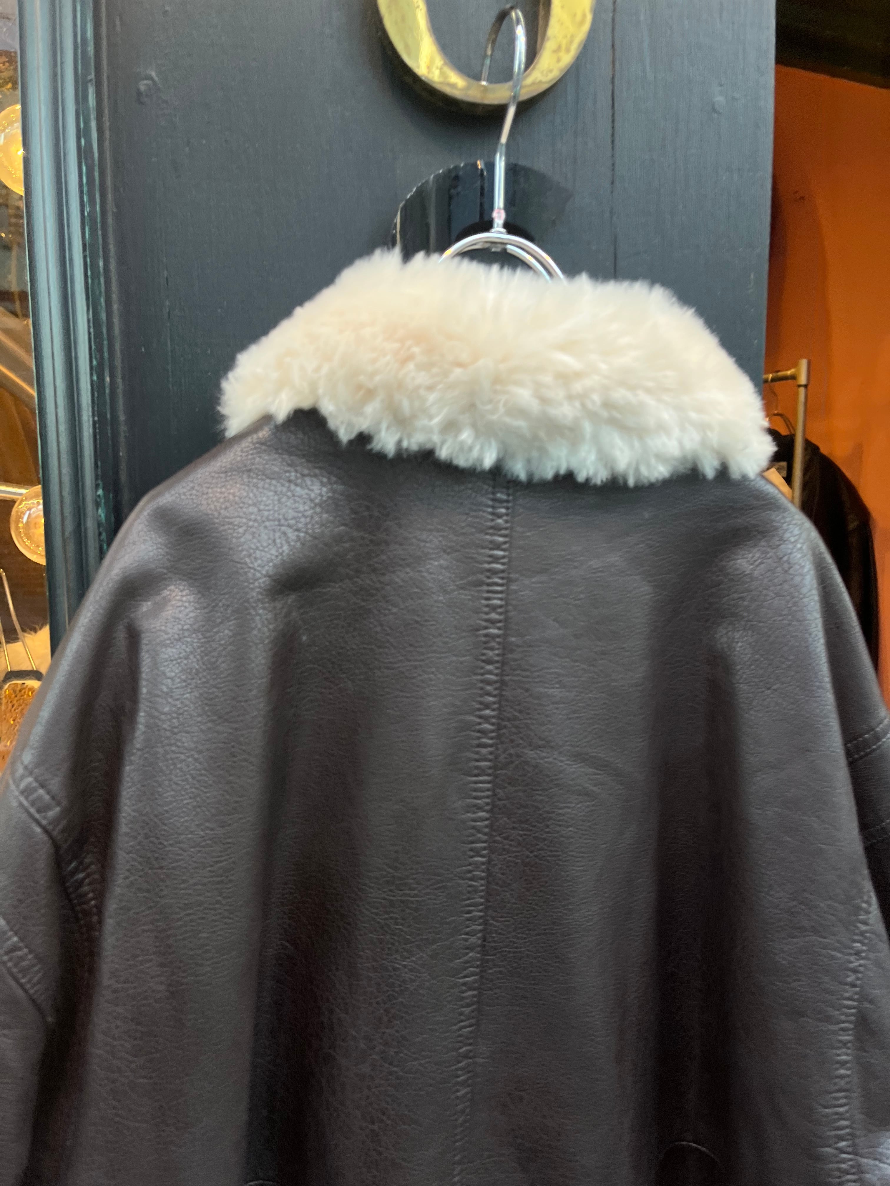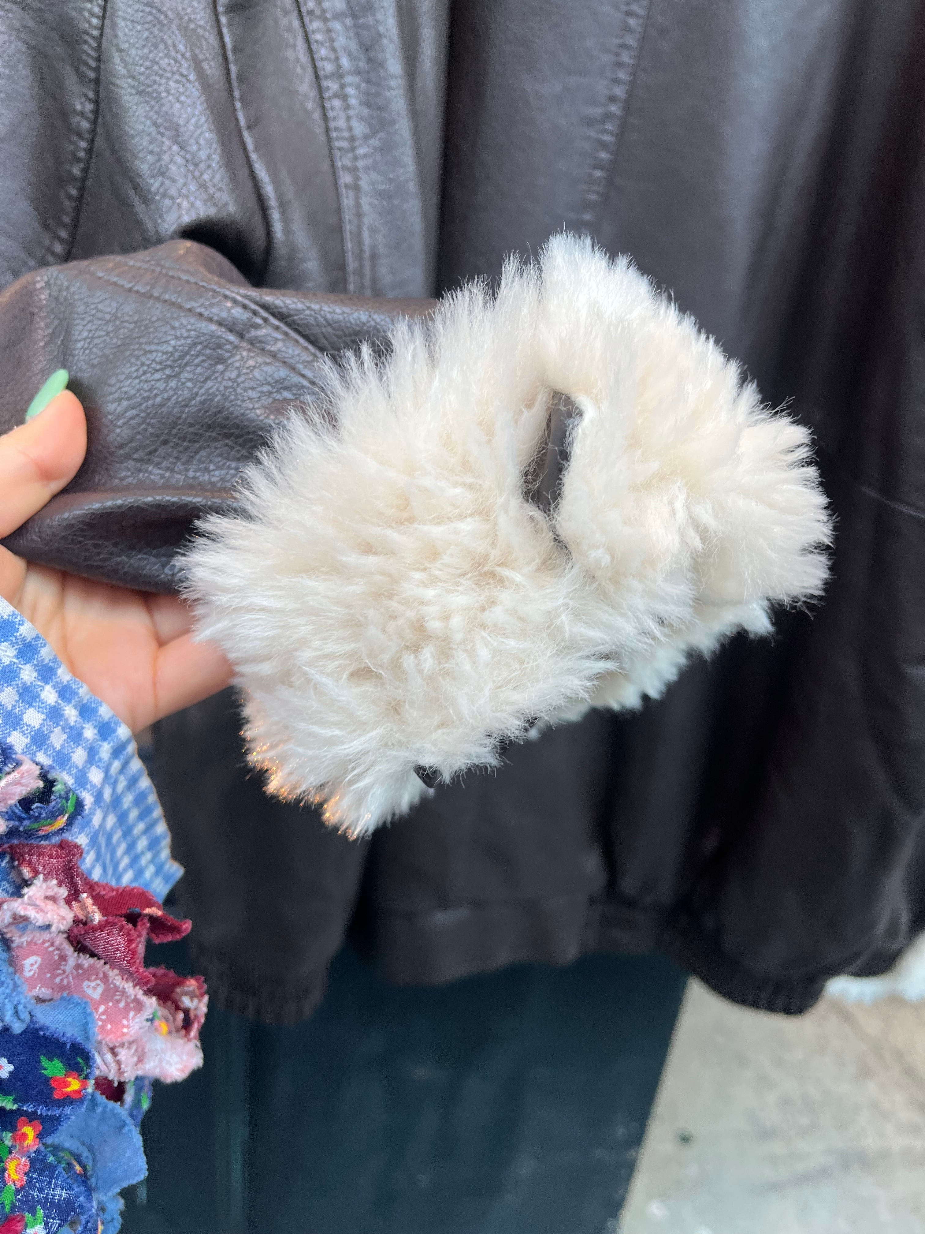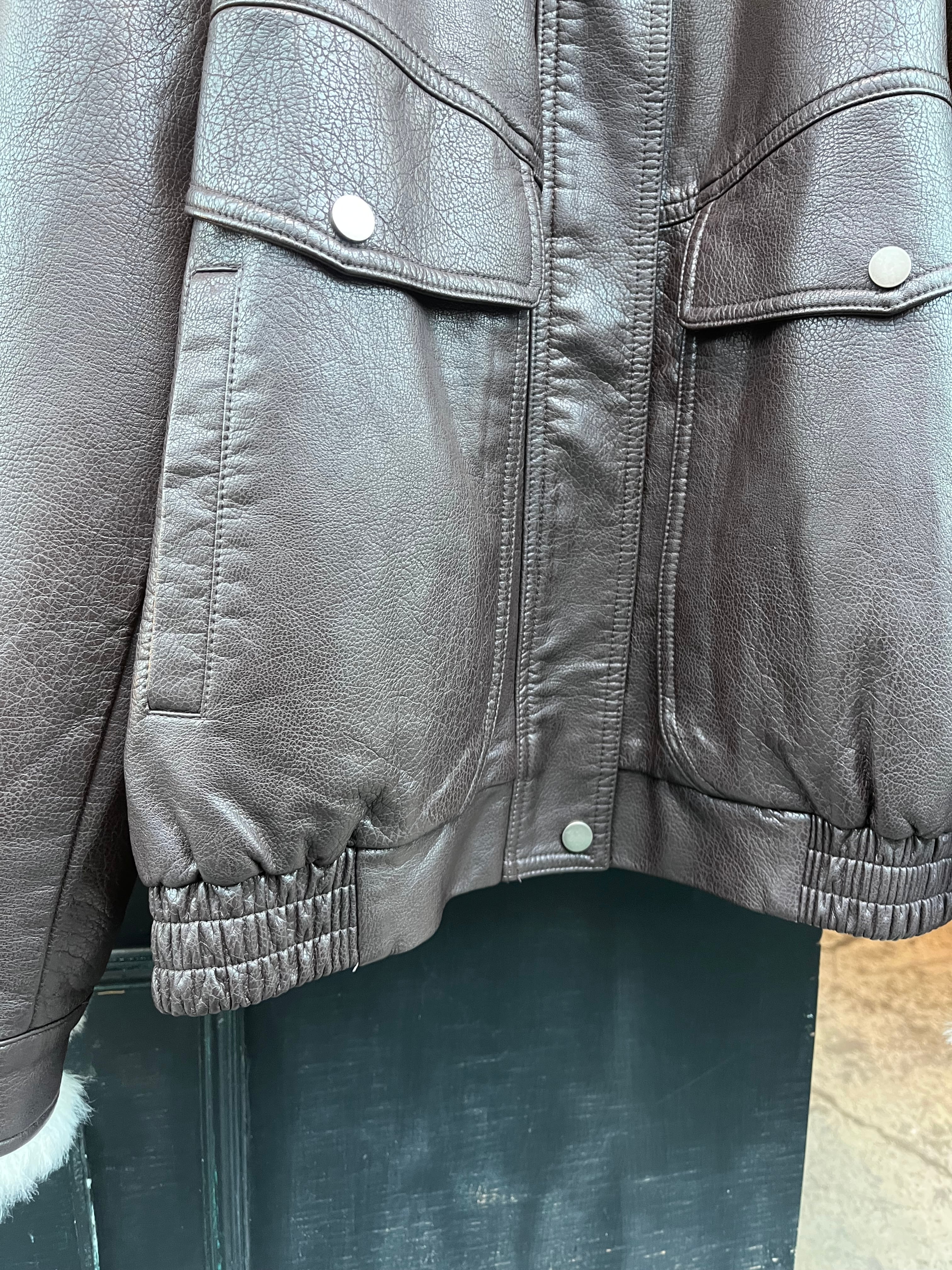 ずっと触ったいたくなるようなフワッフワな触り心地のボアと、抜け感のあるブラウンカラーが魅力的なビーガンレザーのジャケット