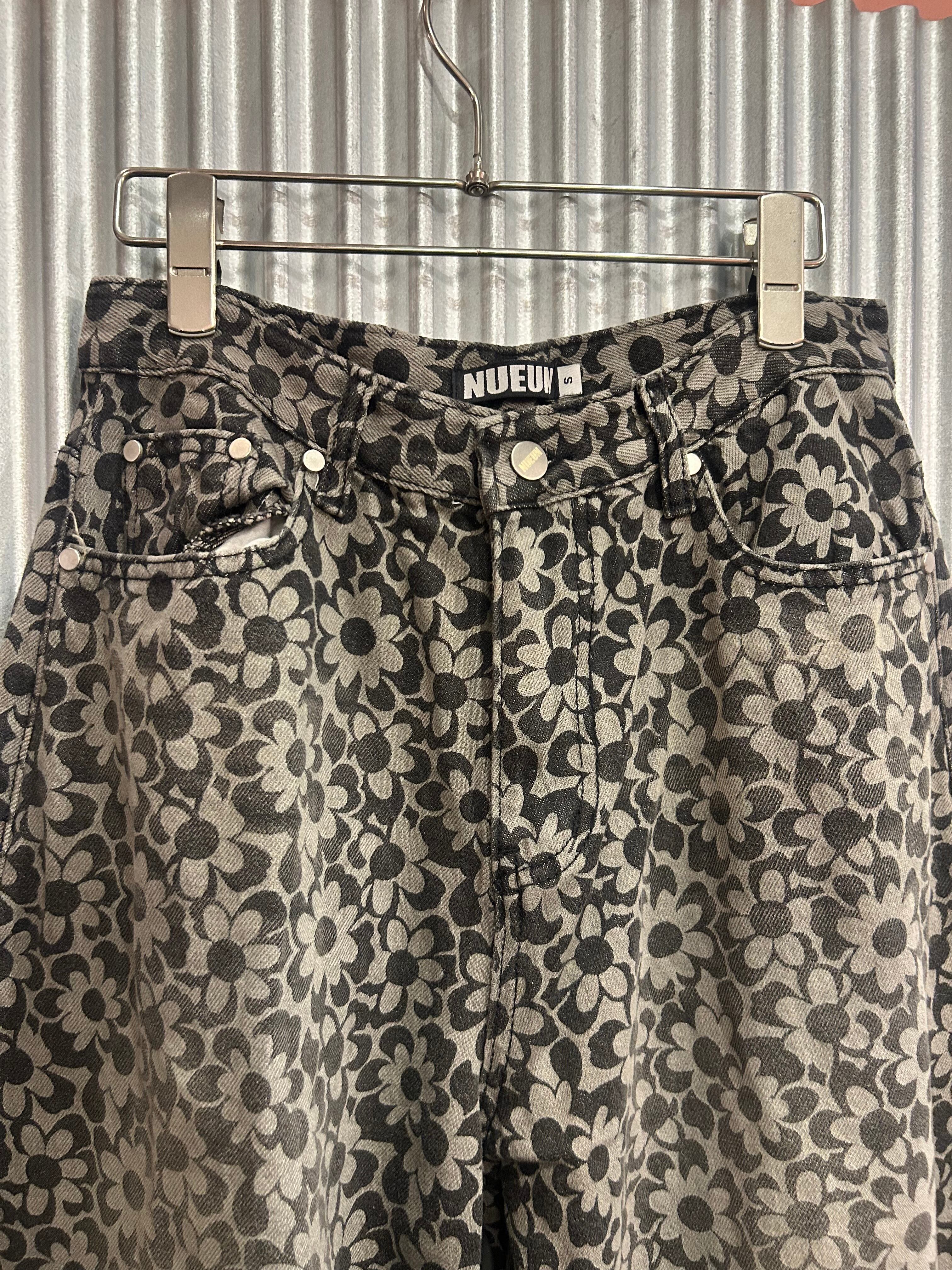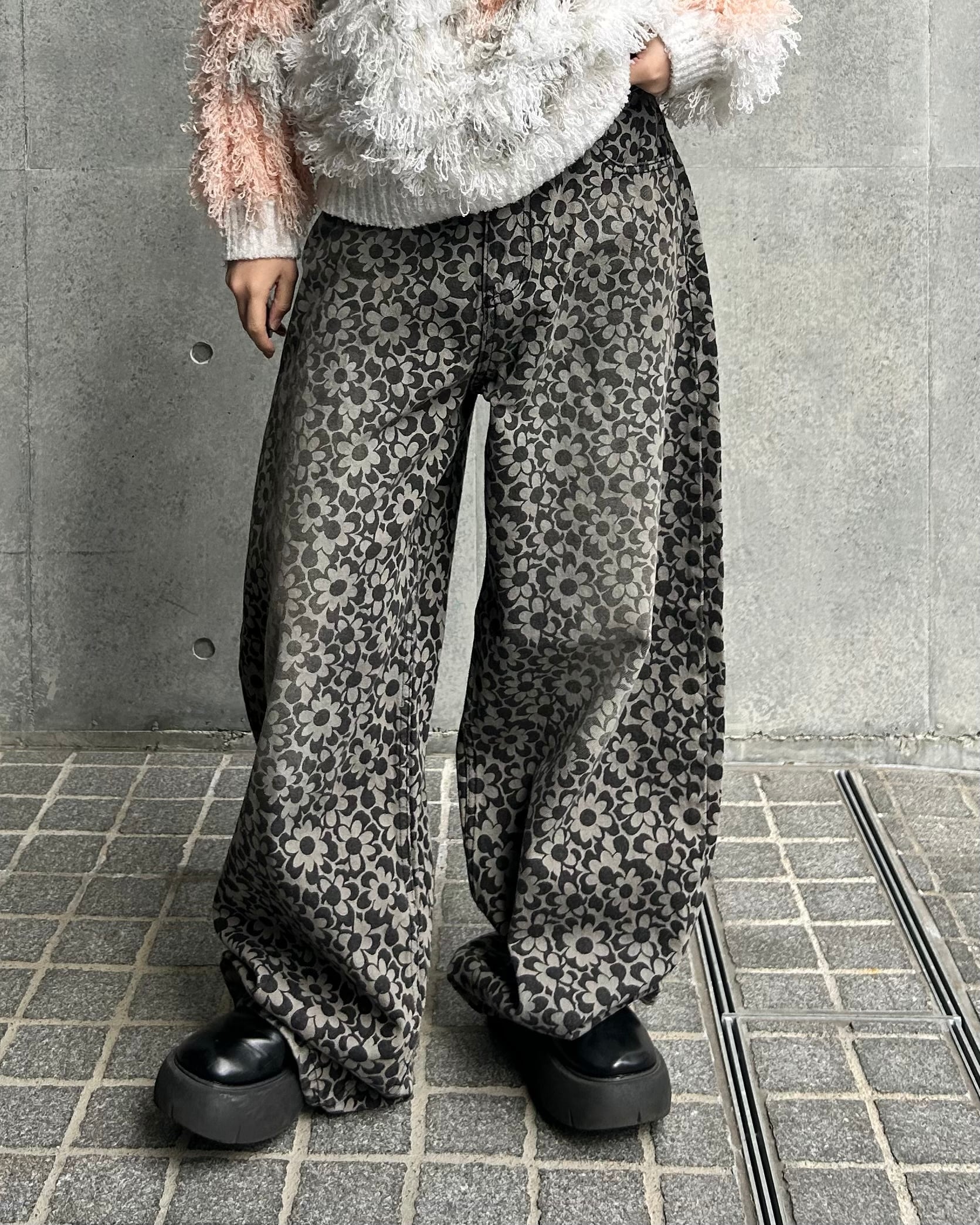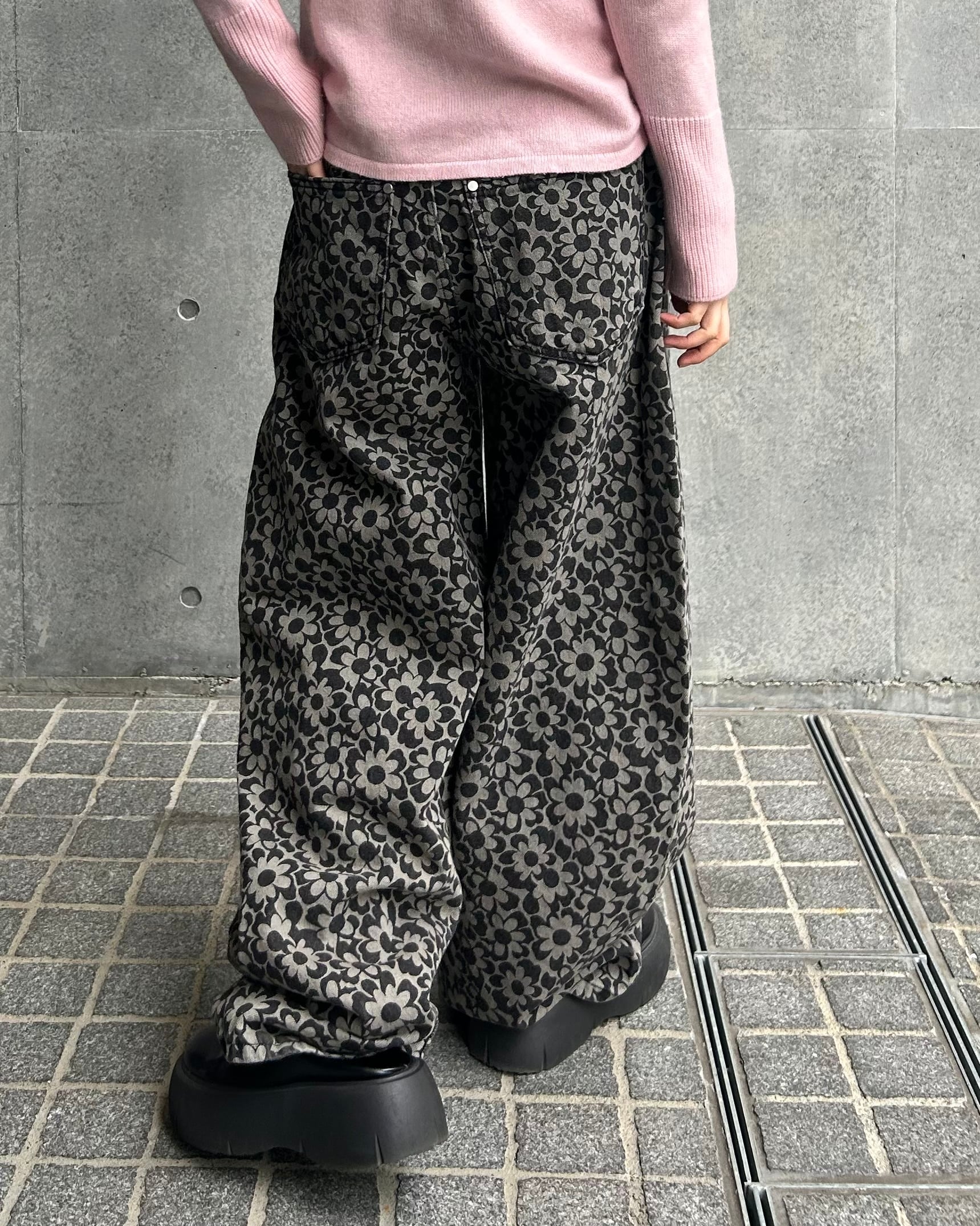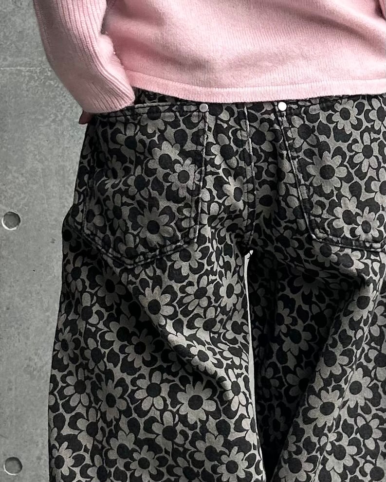 flower grip denim pants black