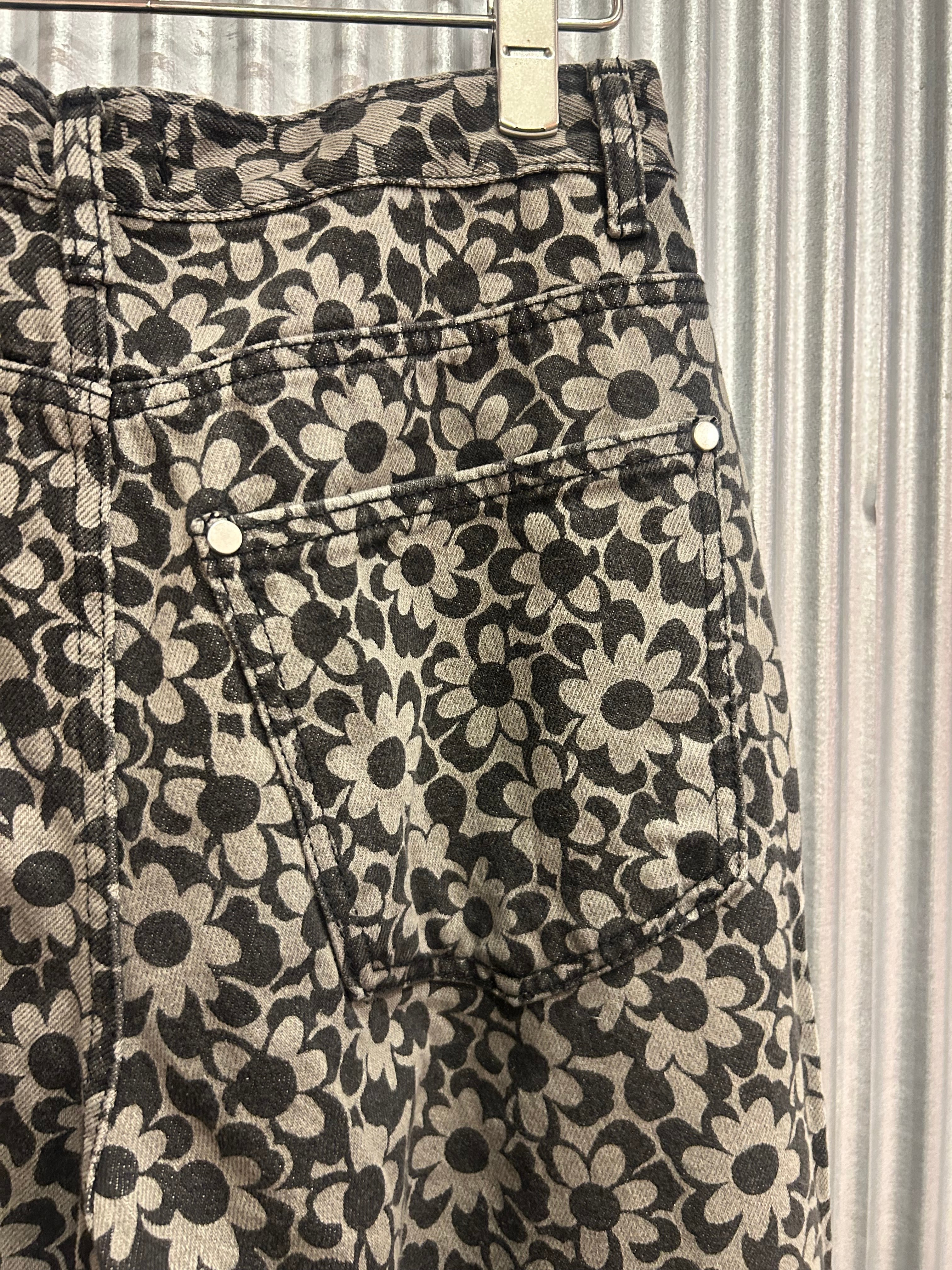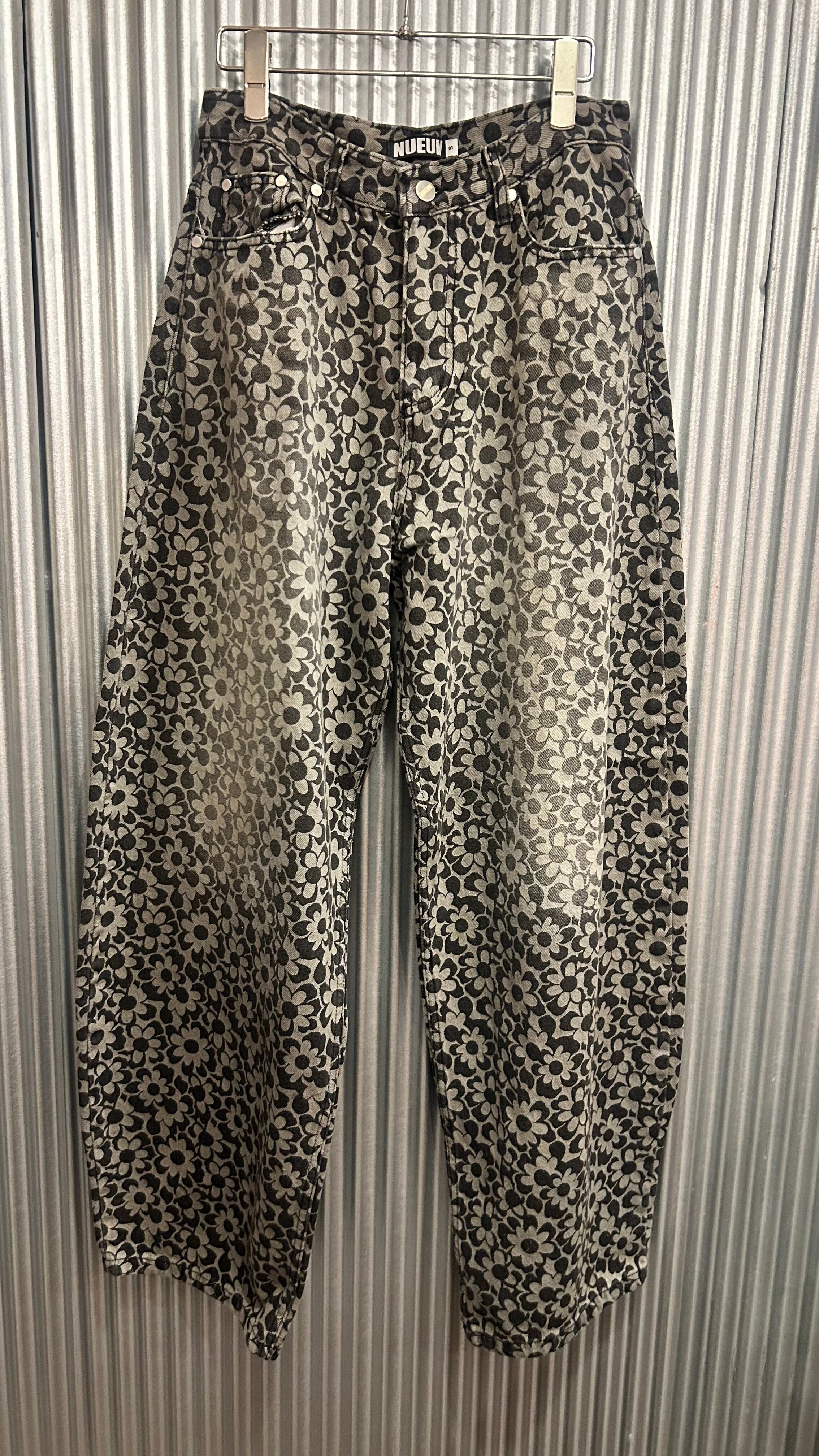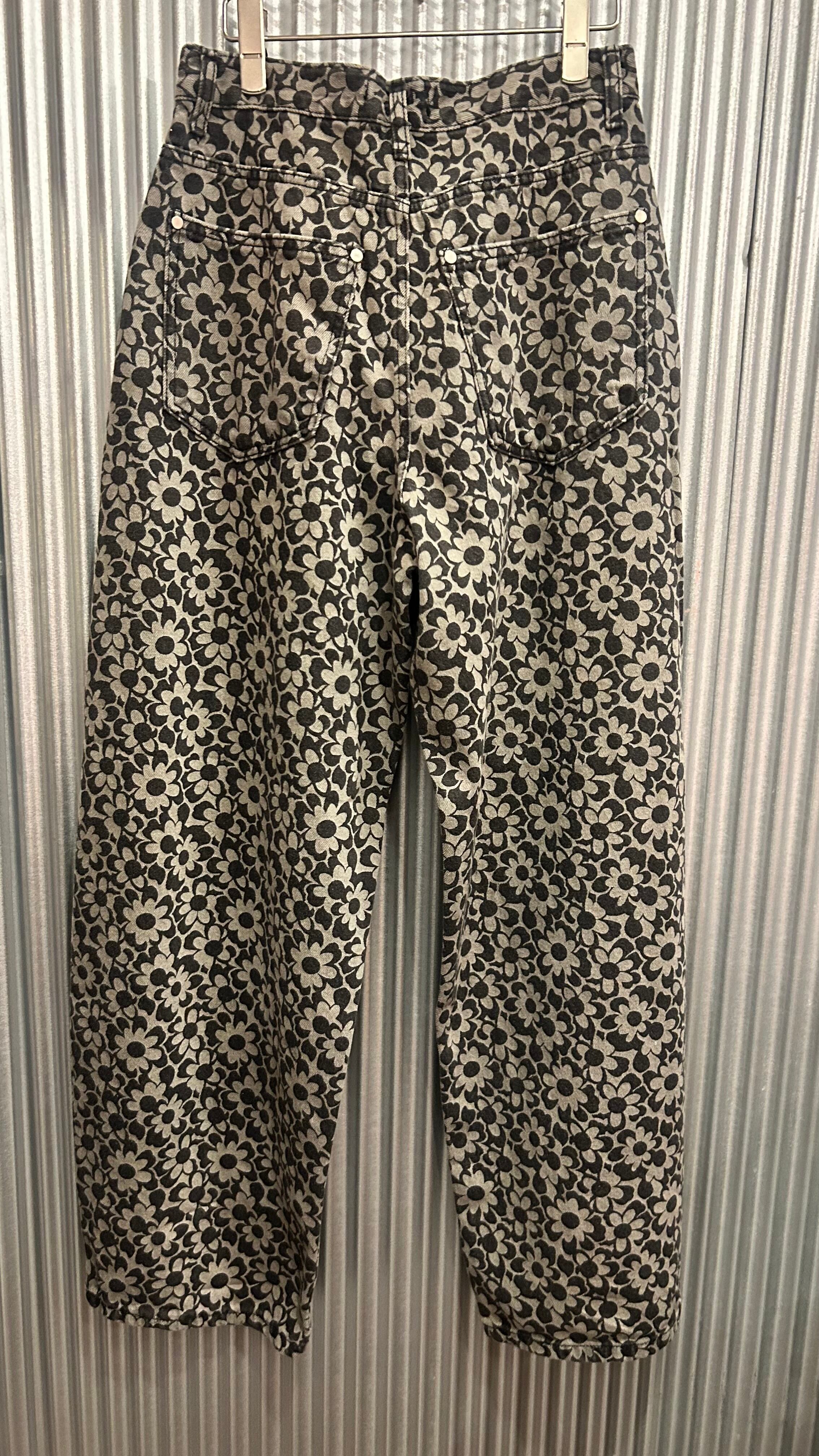 flower grip denim pants black