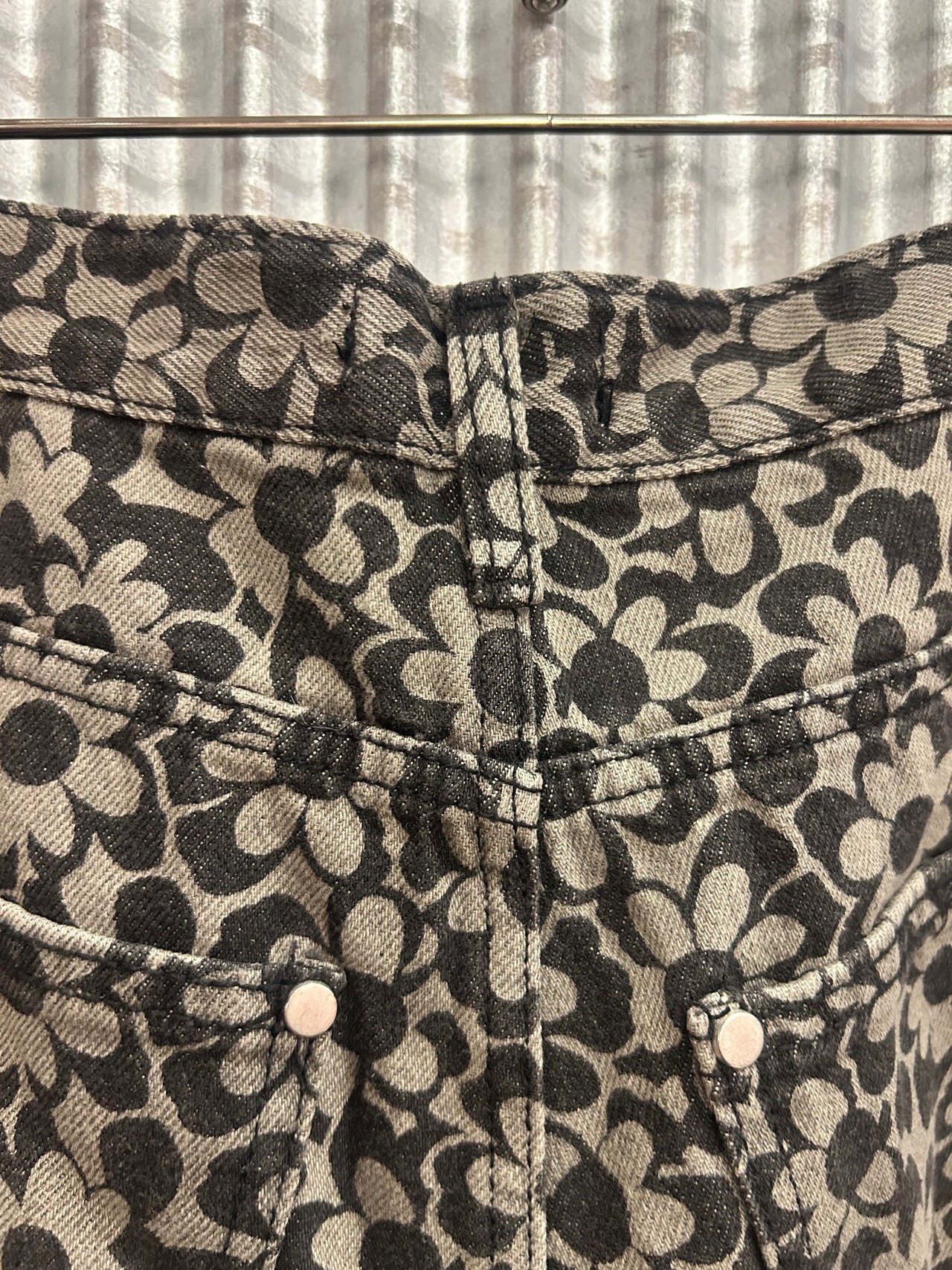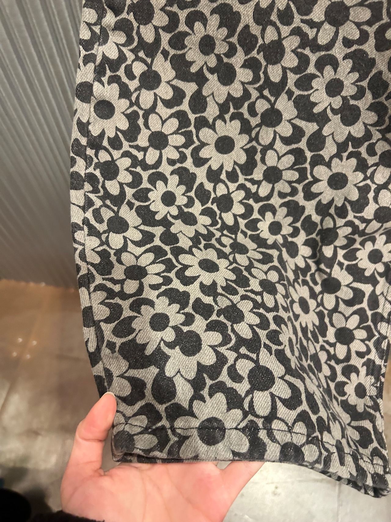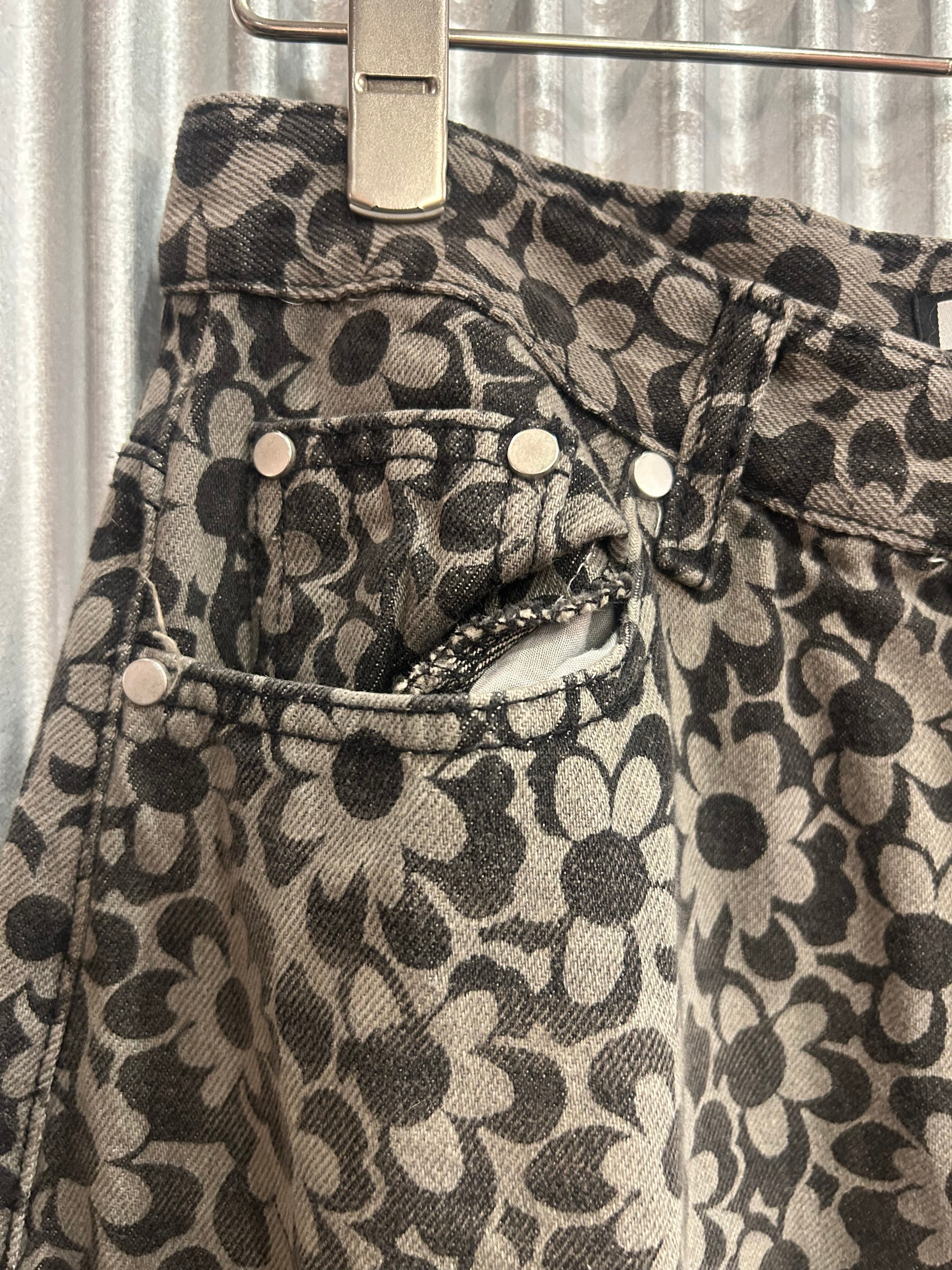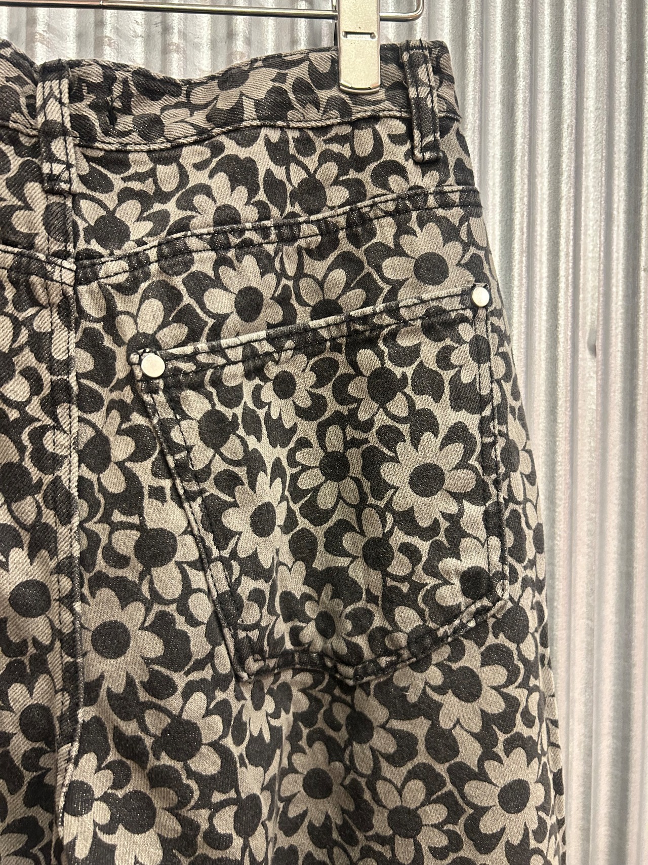 flower grip denim pants black