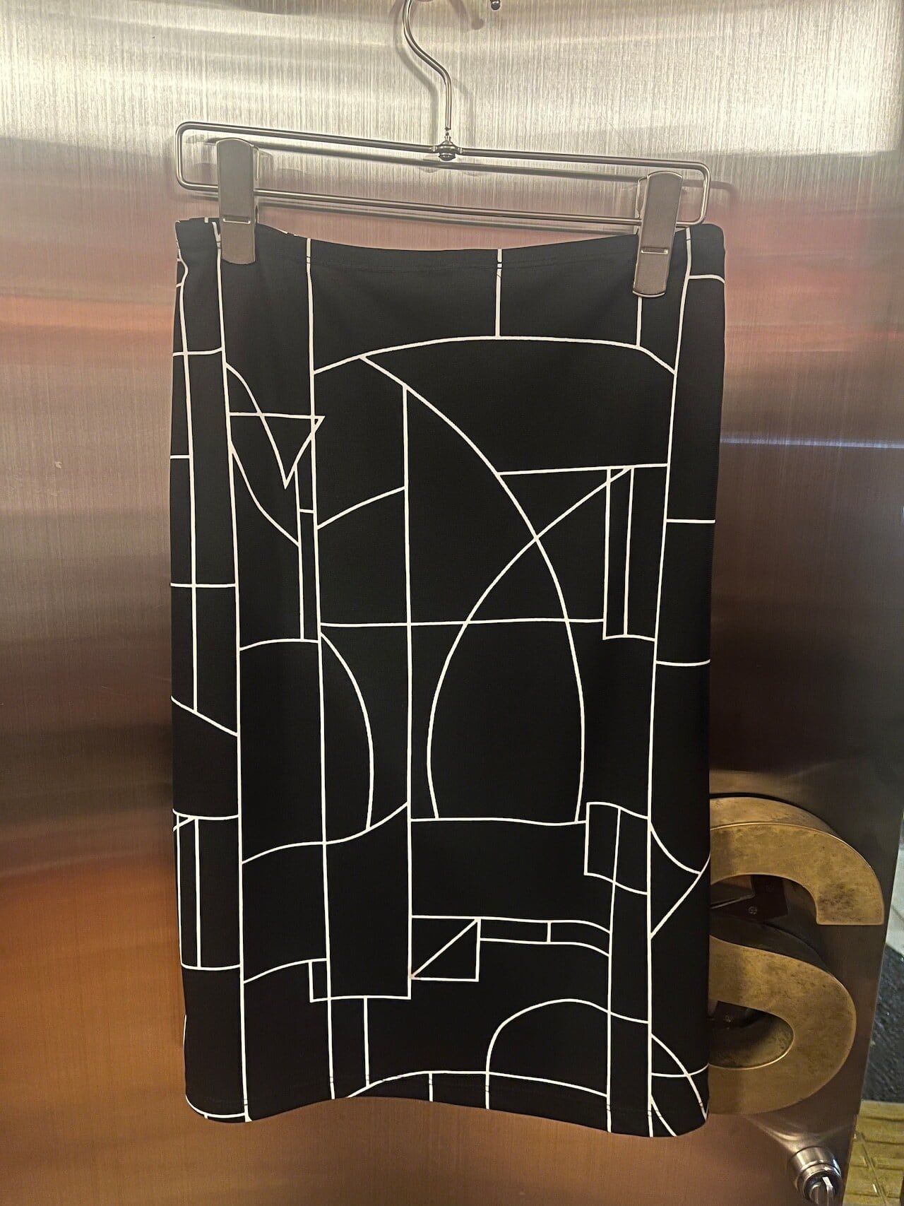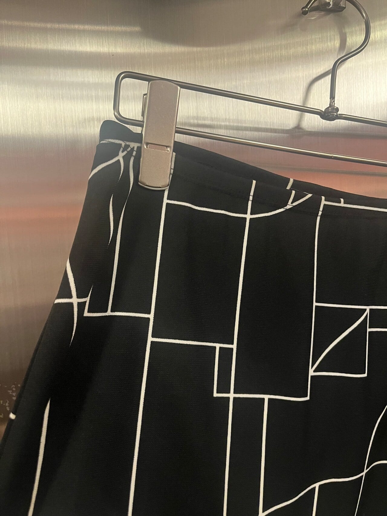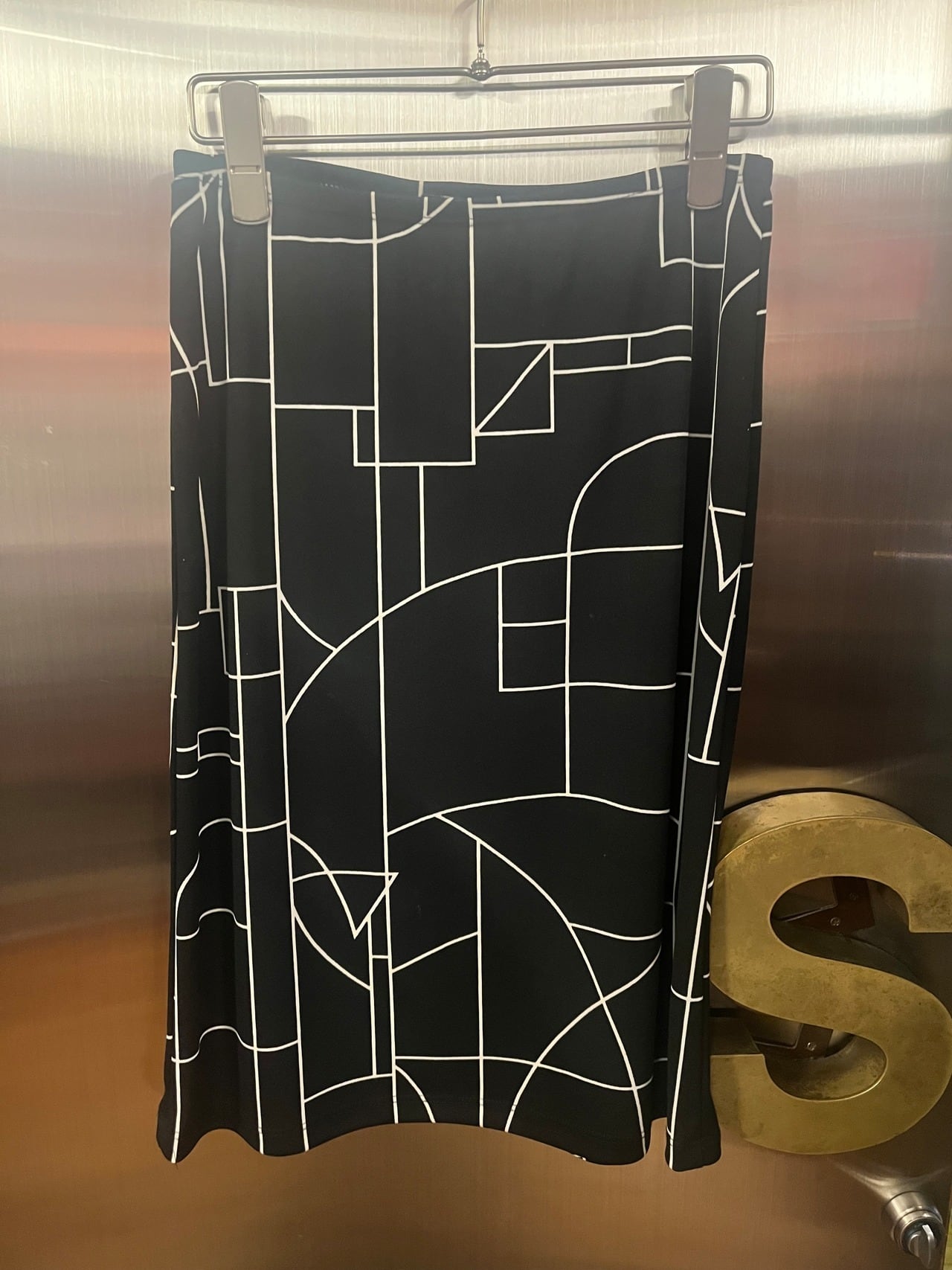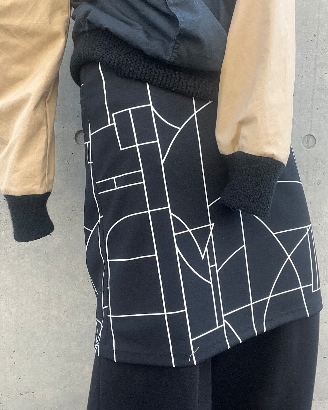 伸縮性のある膝上丈のスカートは、