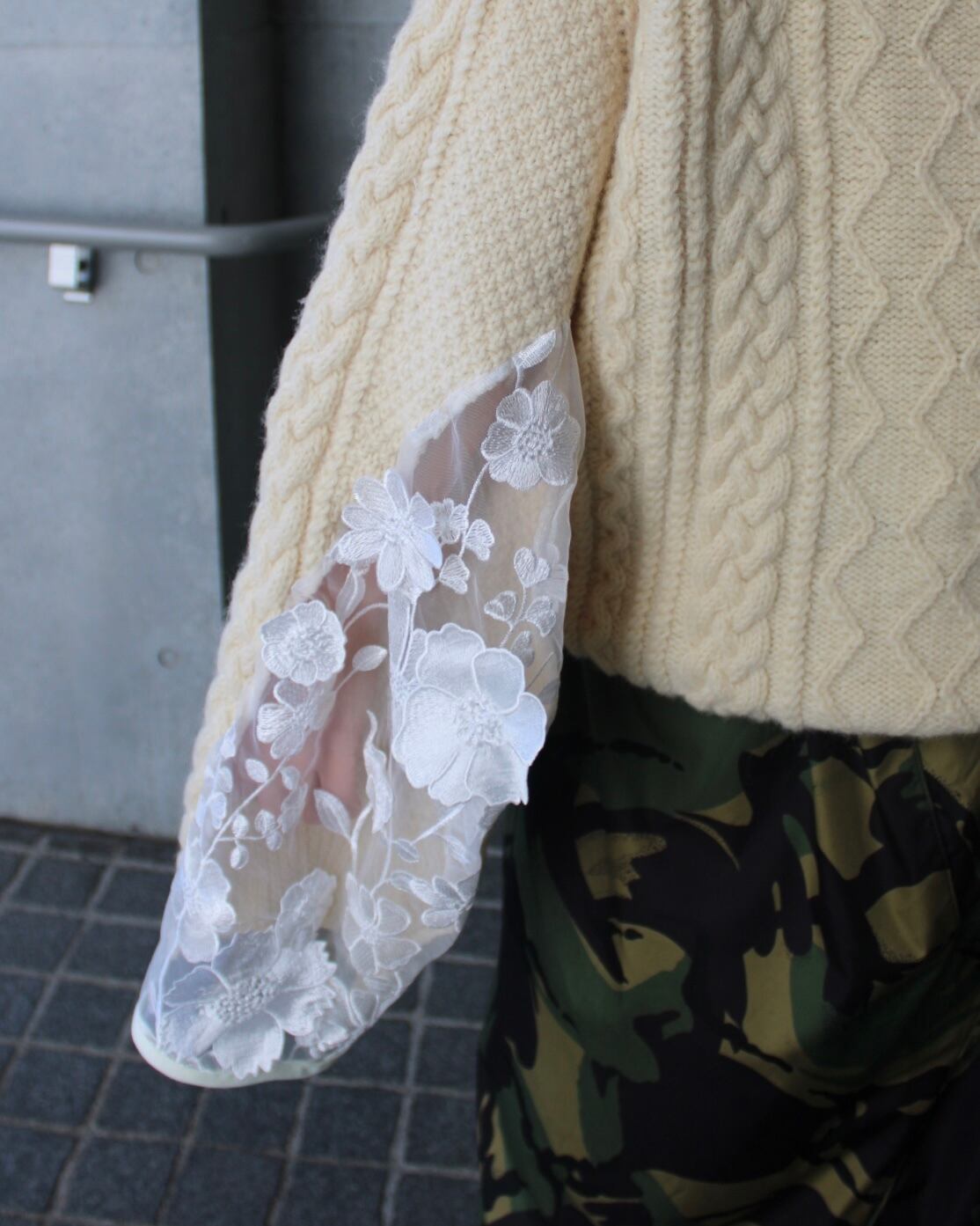 シアー素材なので、下に着るインナーのカラーや、春先には肌見せをして抜け感を