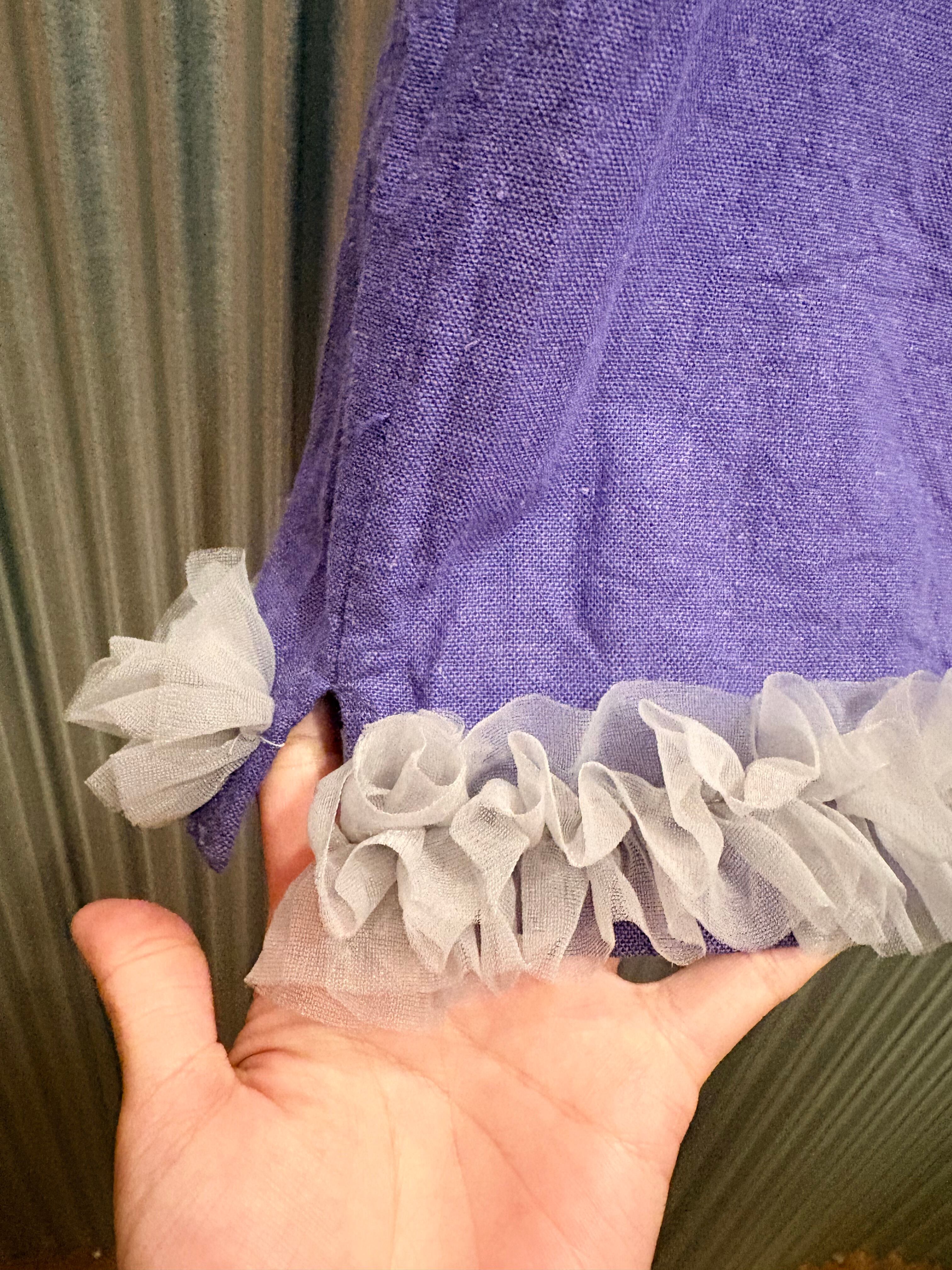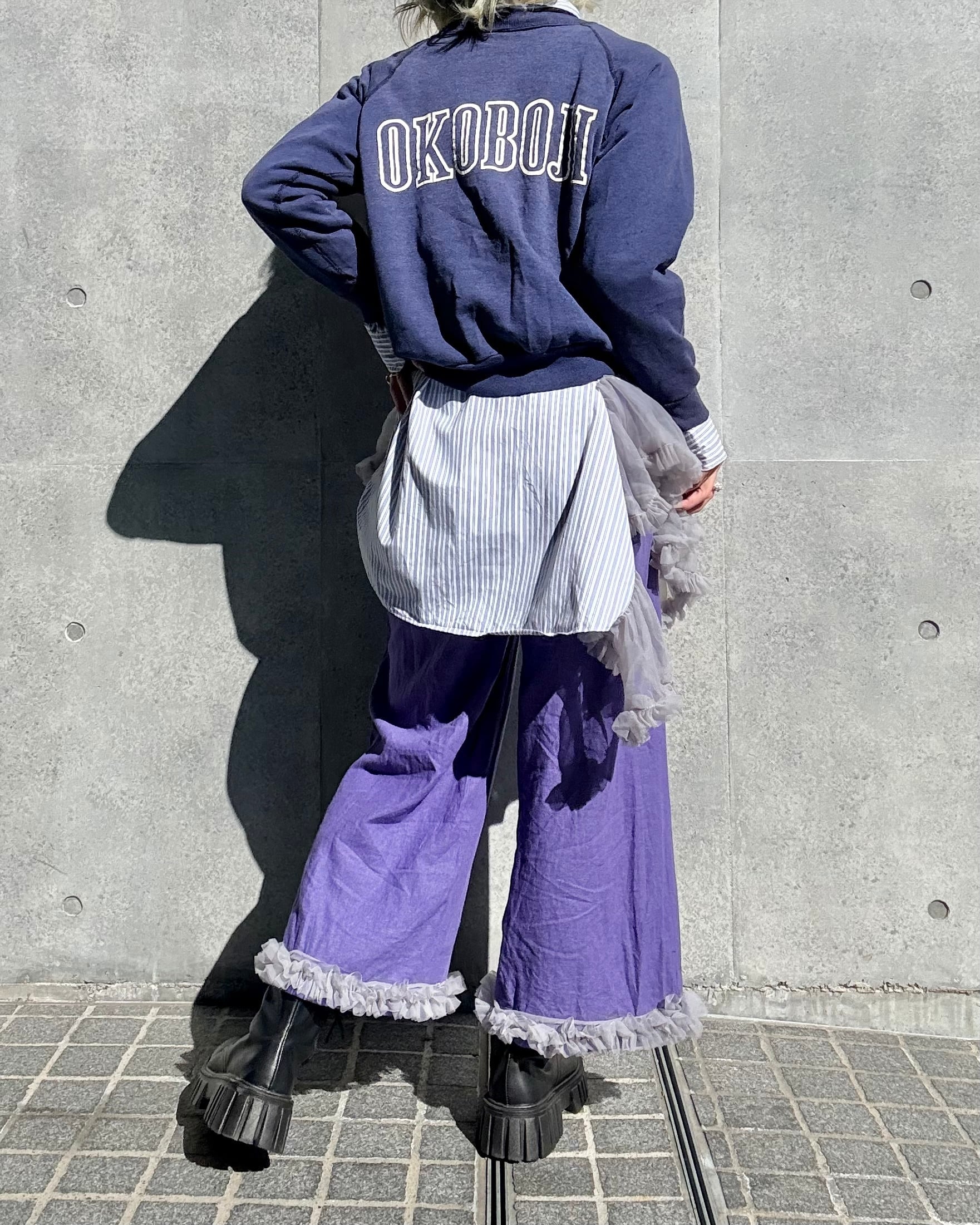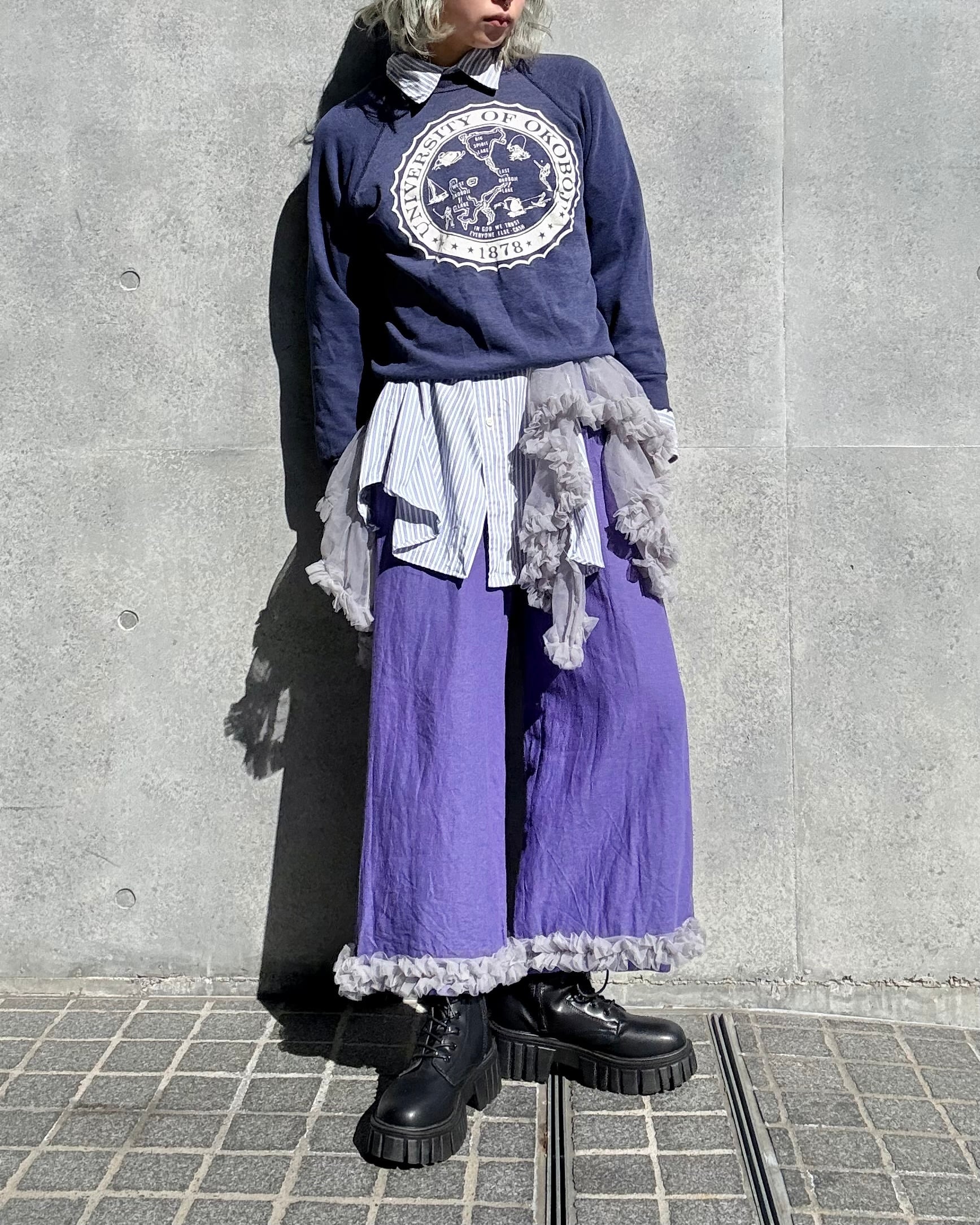 今季注目のカプリパンツに、tulle remakeを施しました。ウエストゴムで履きやすく、春夏にピッタリの涼しげな素材です✨