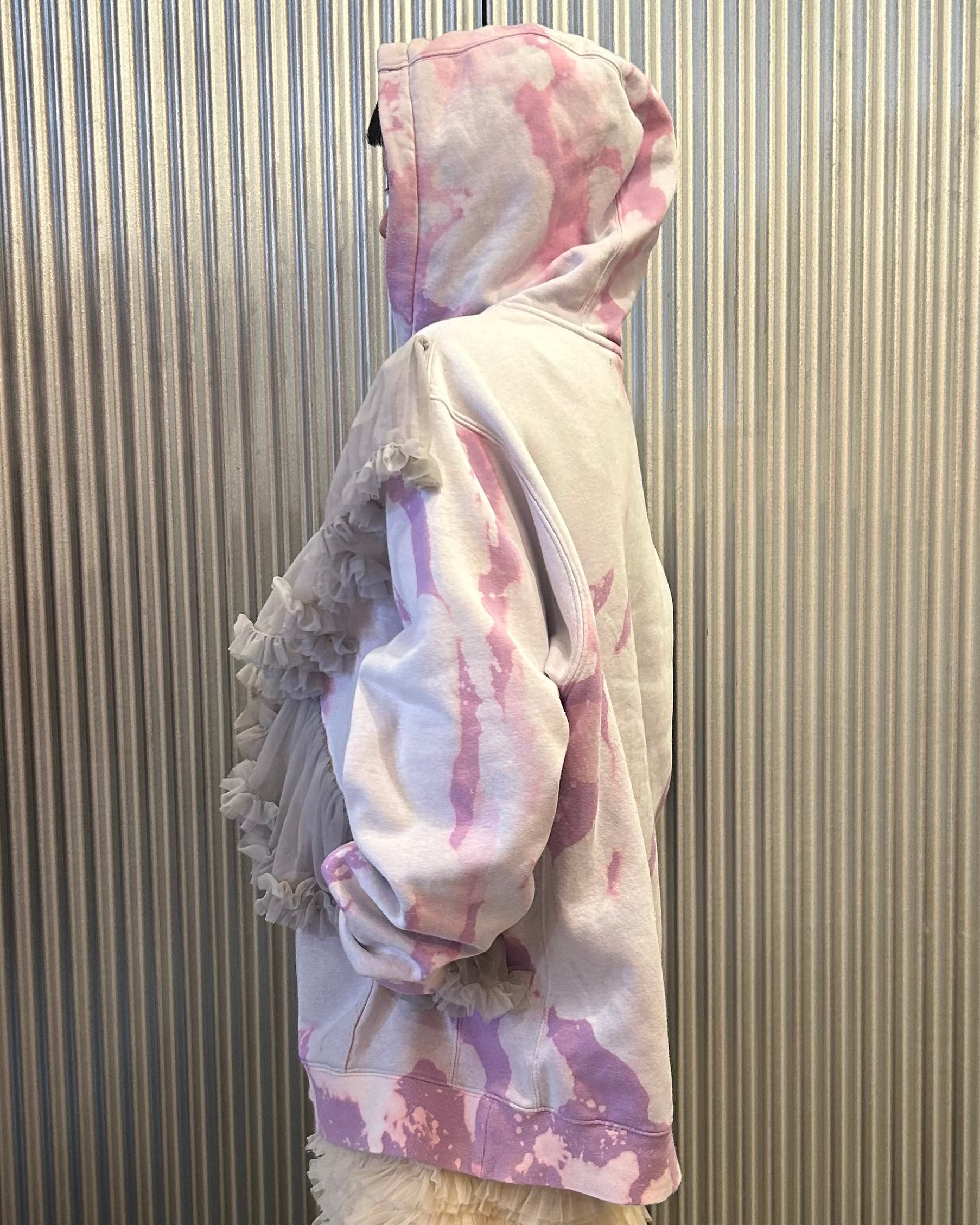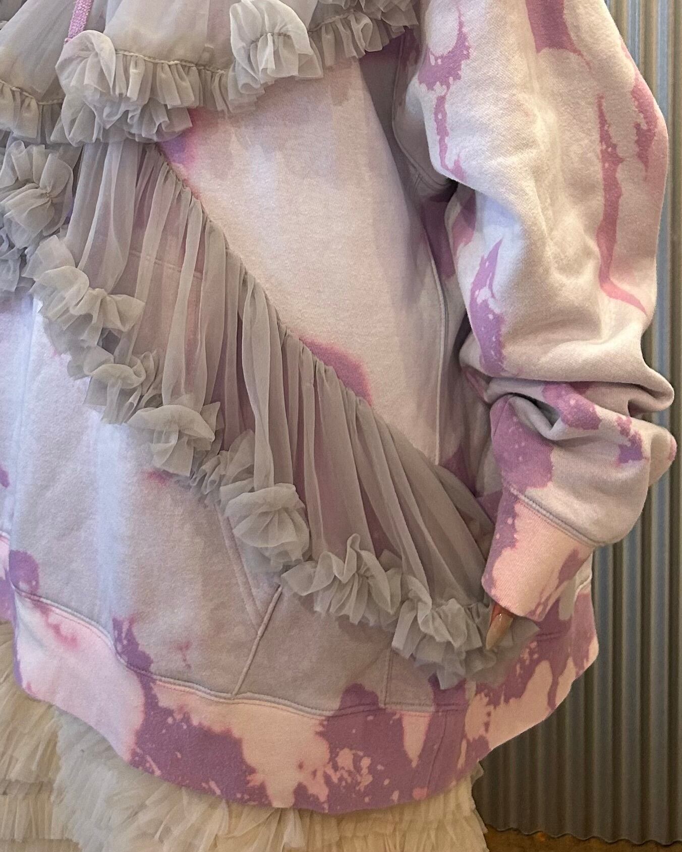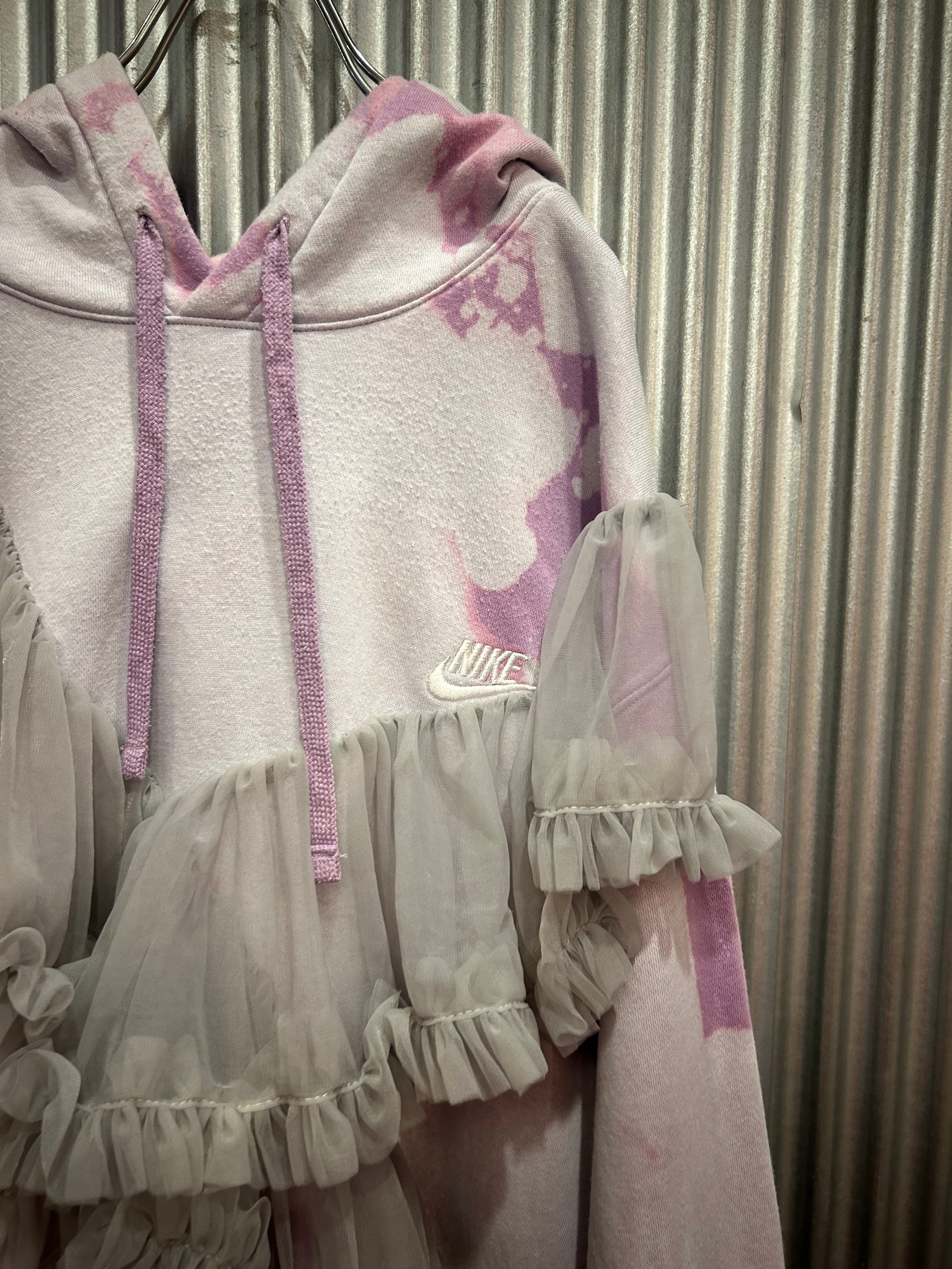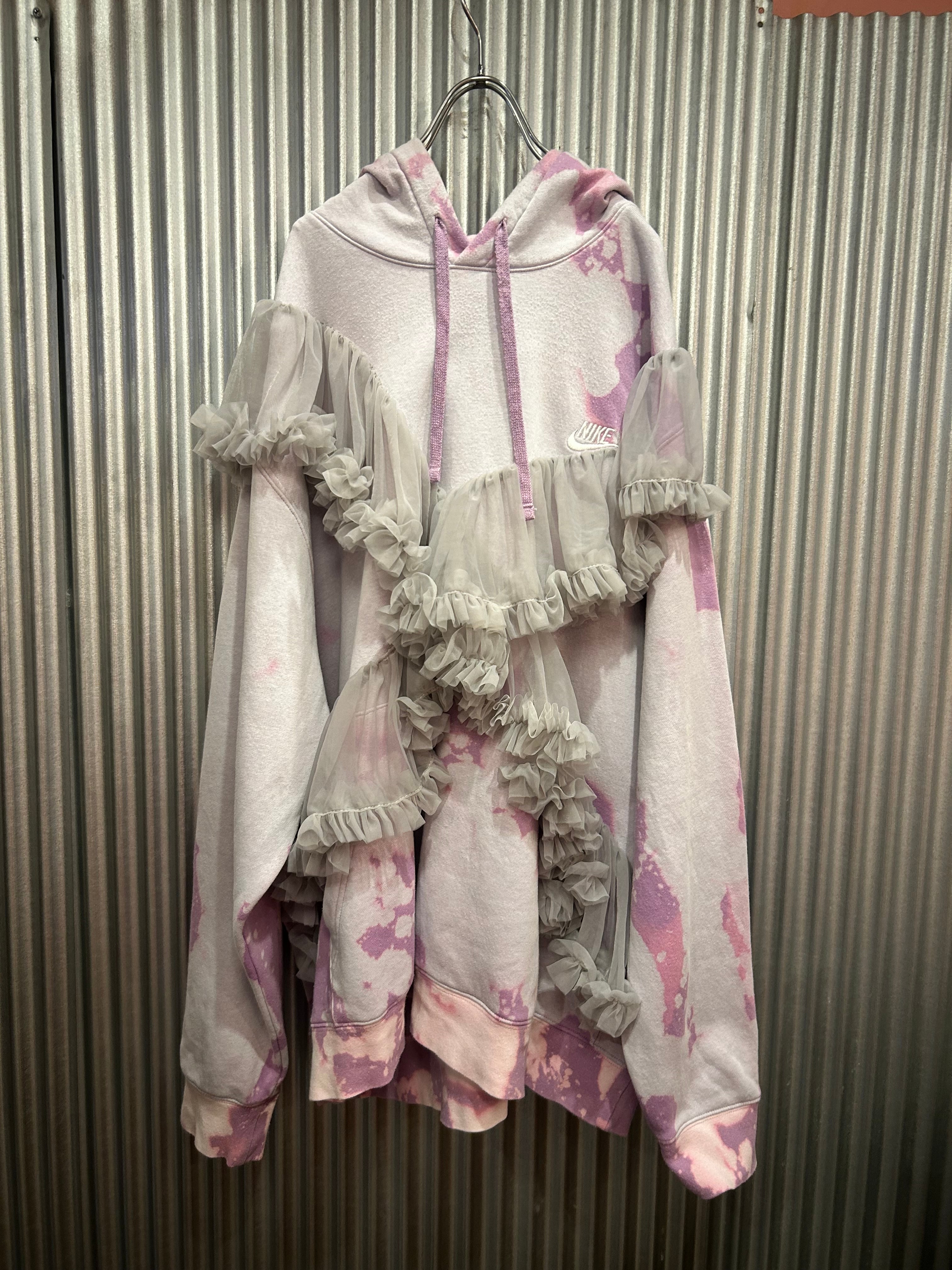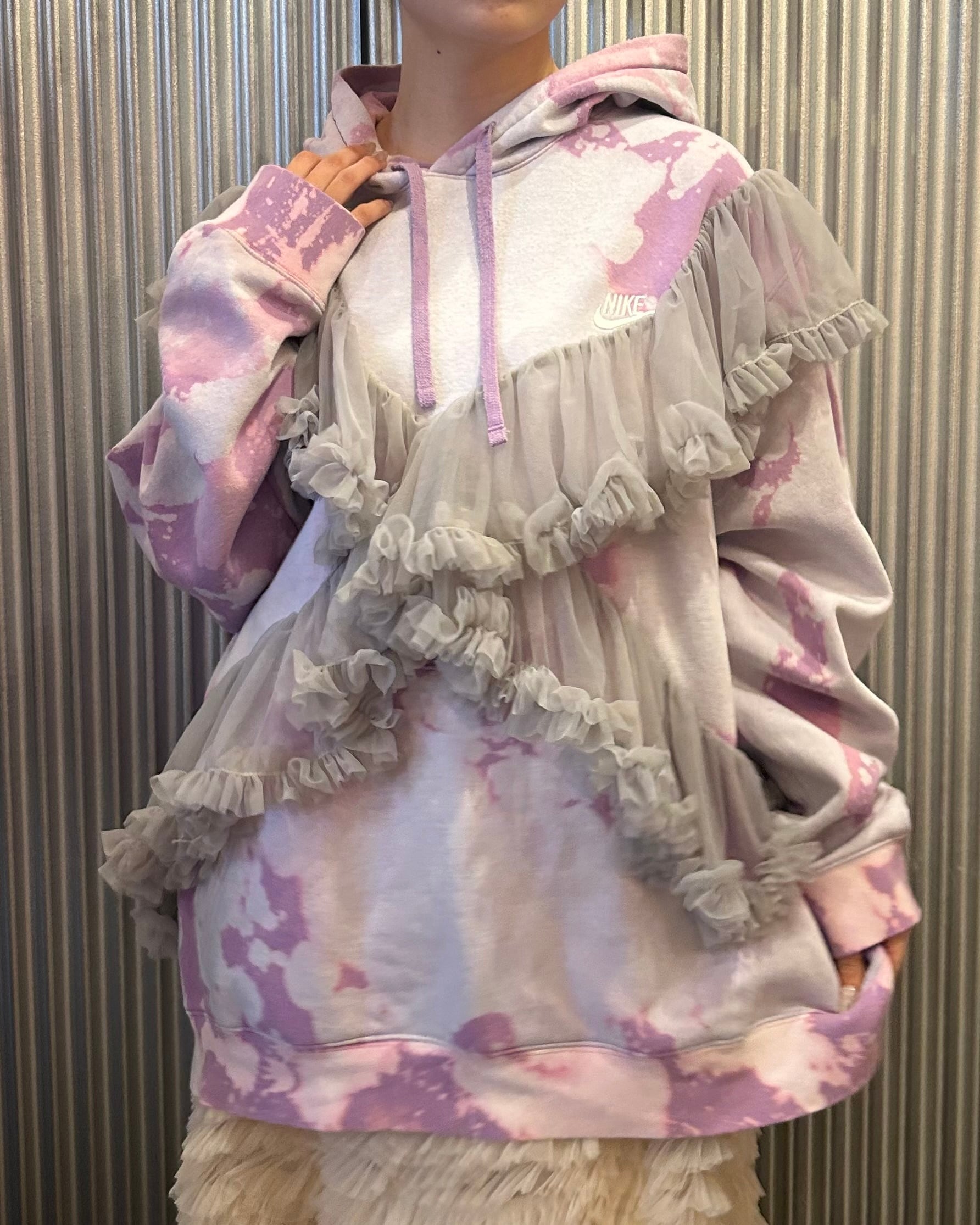 ブリーチされたNIKEスウェットにチュールをつけたリメイクアイテム。