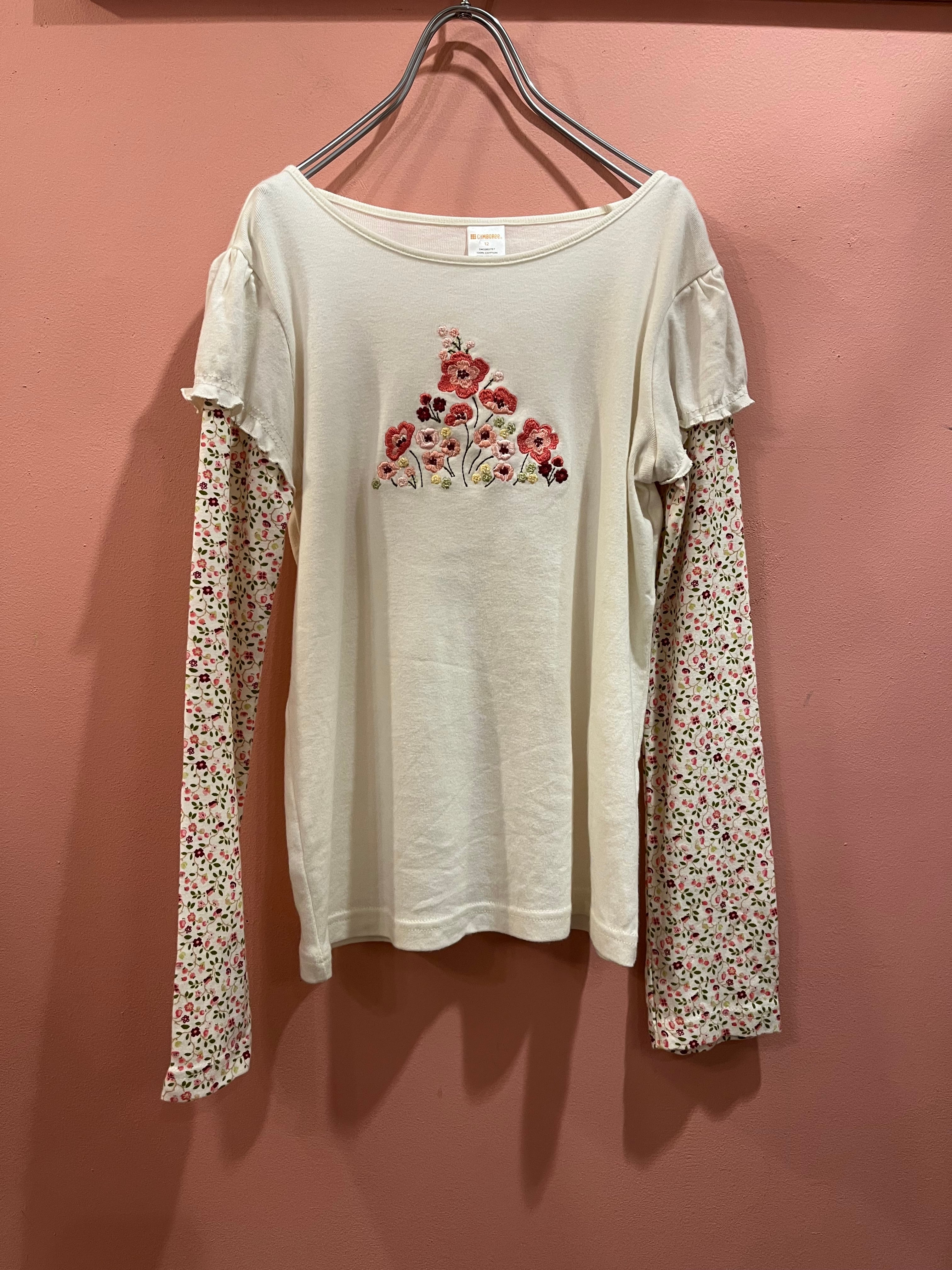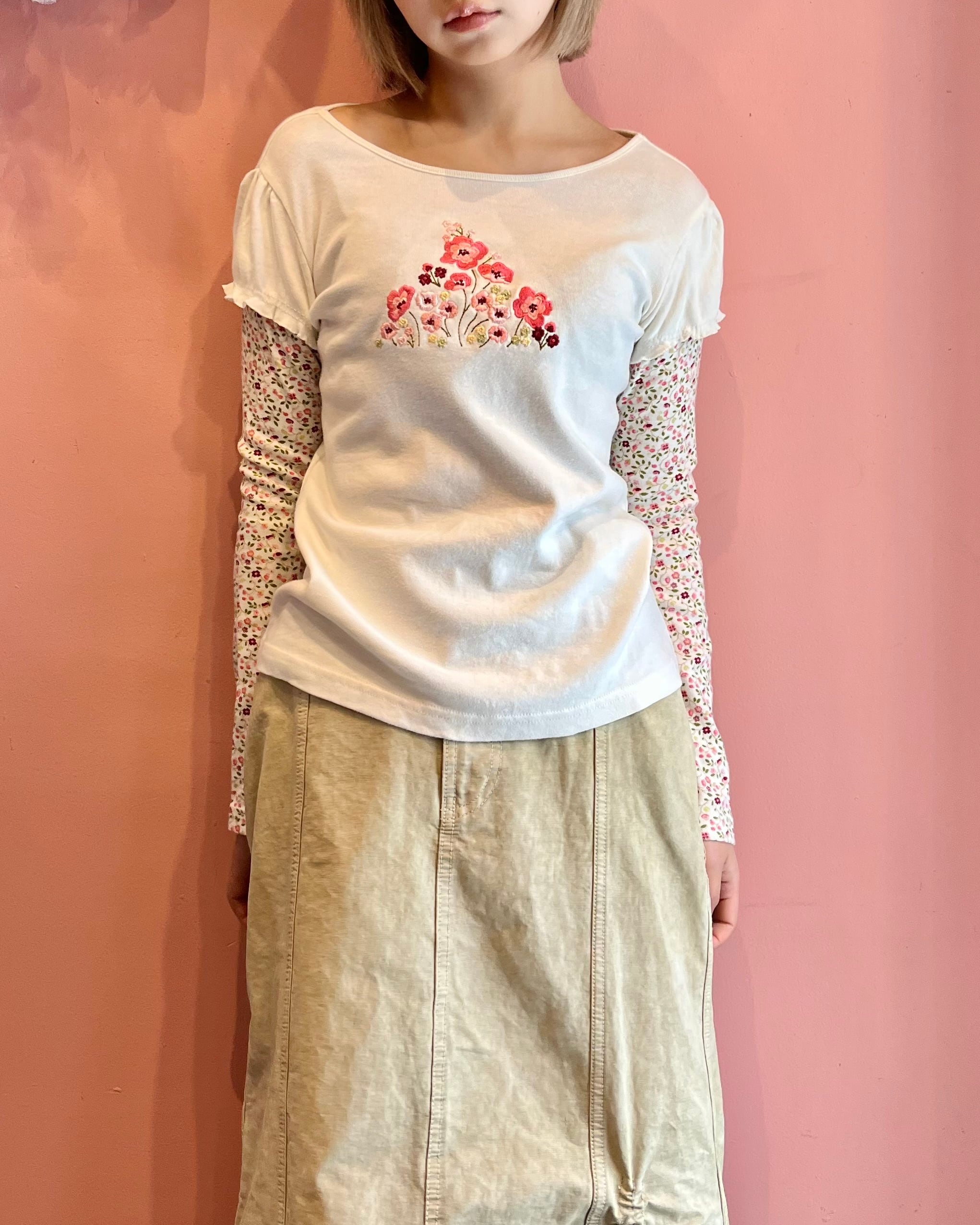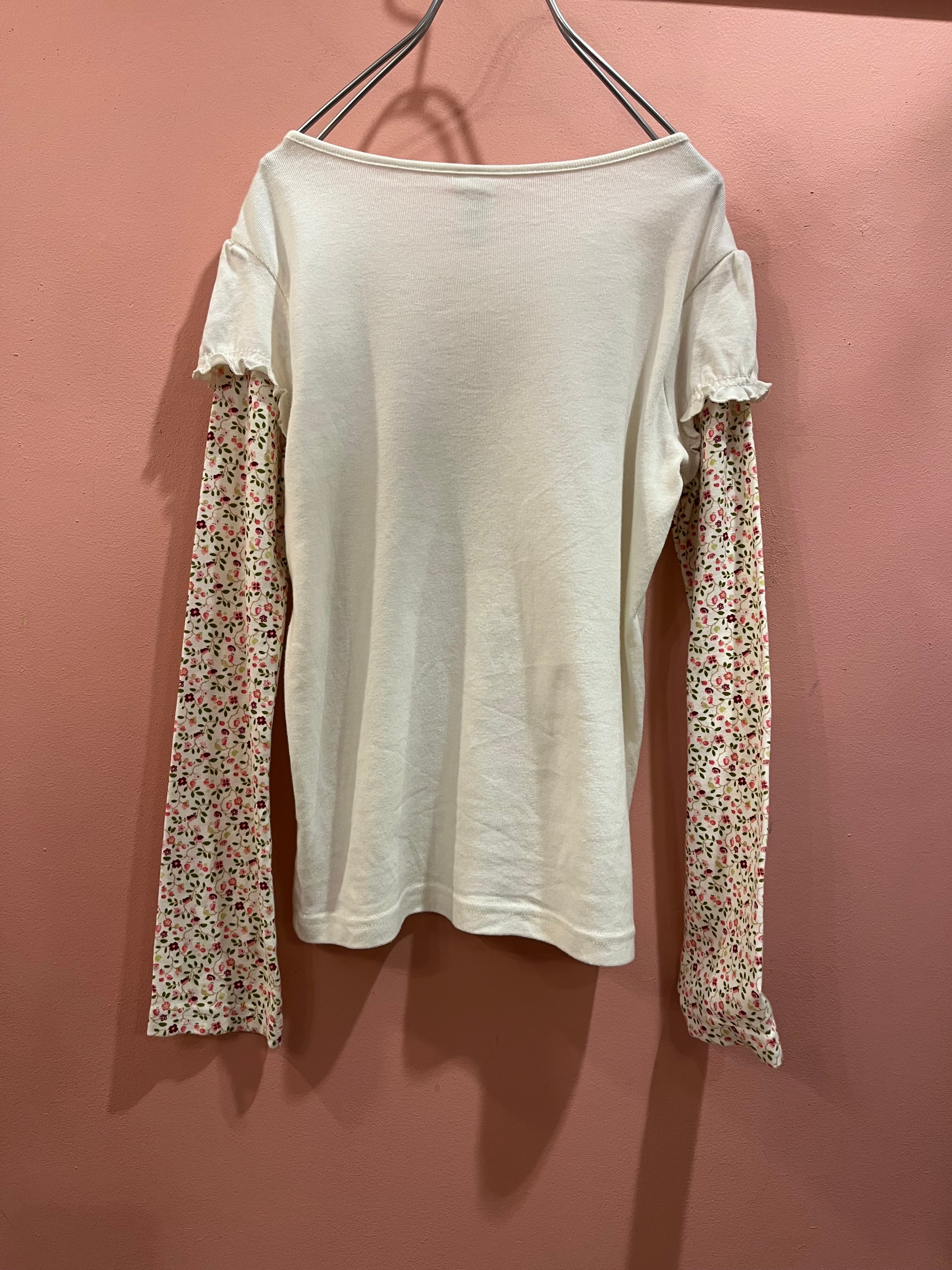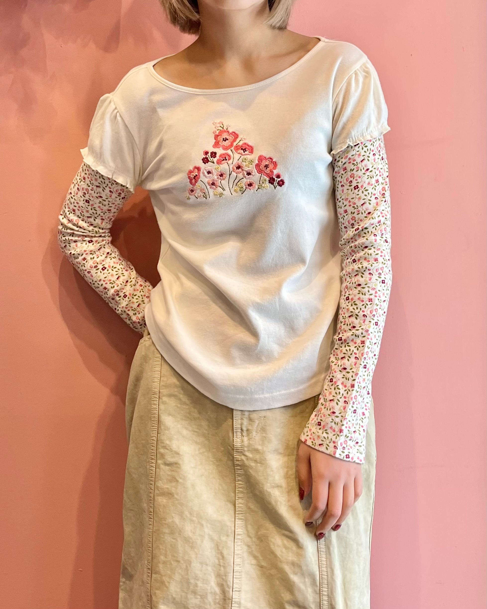 花柄スリーブをレイヤードしたようなデザインが特徴のトップス