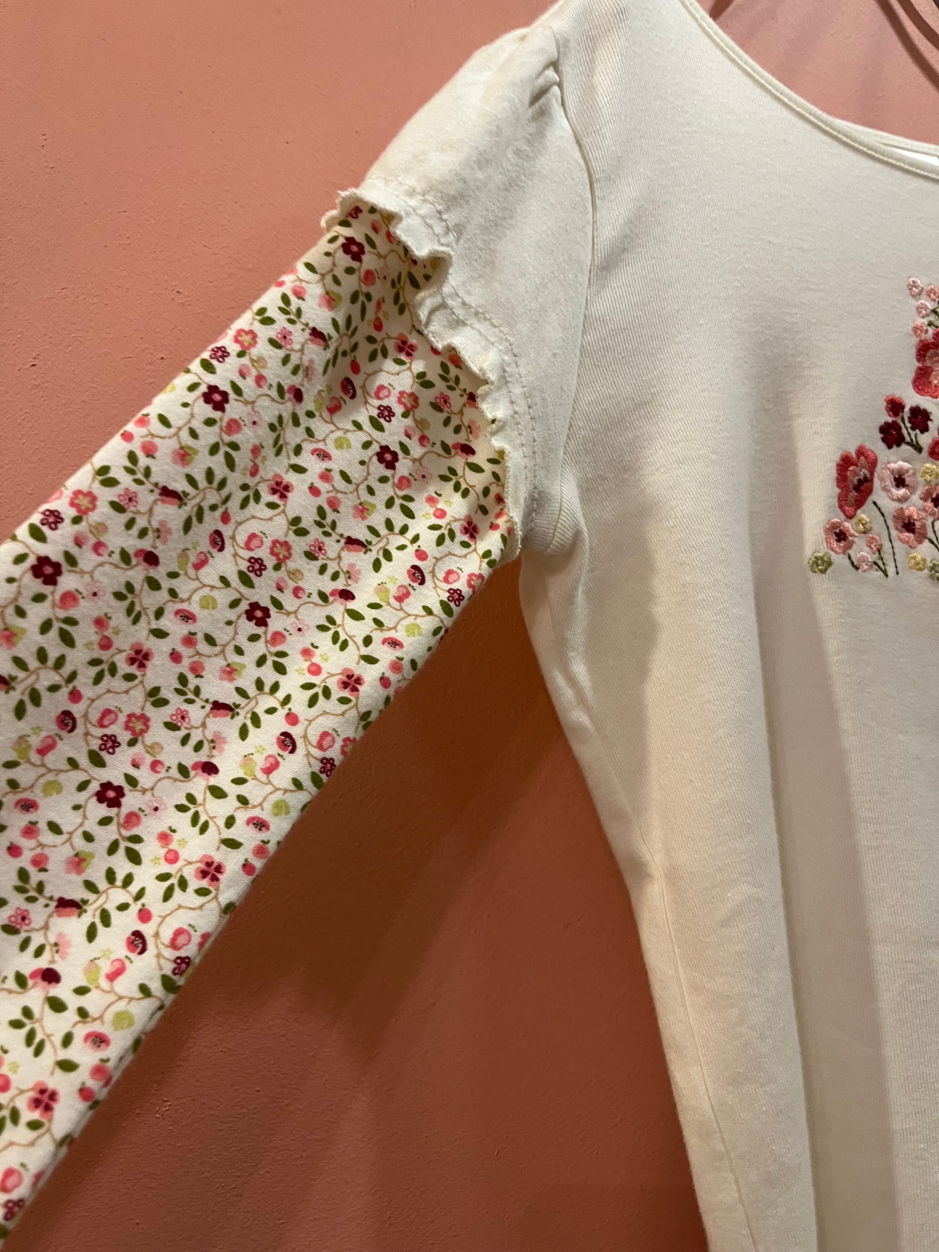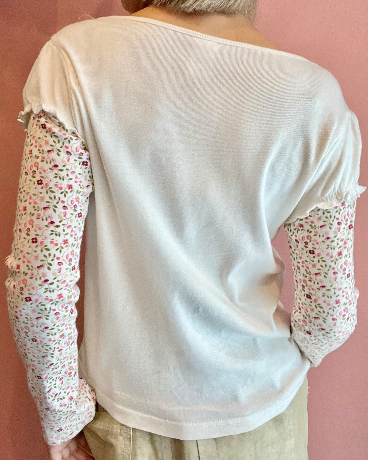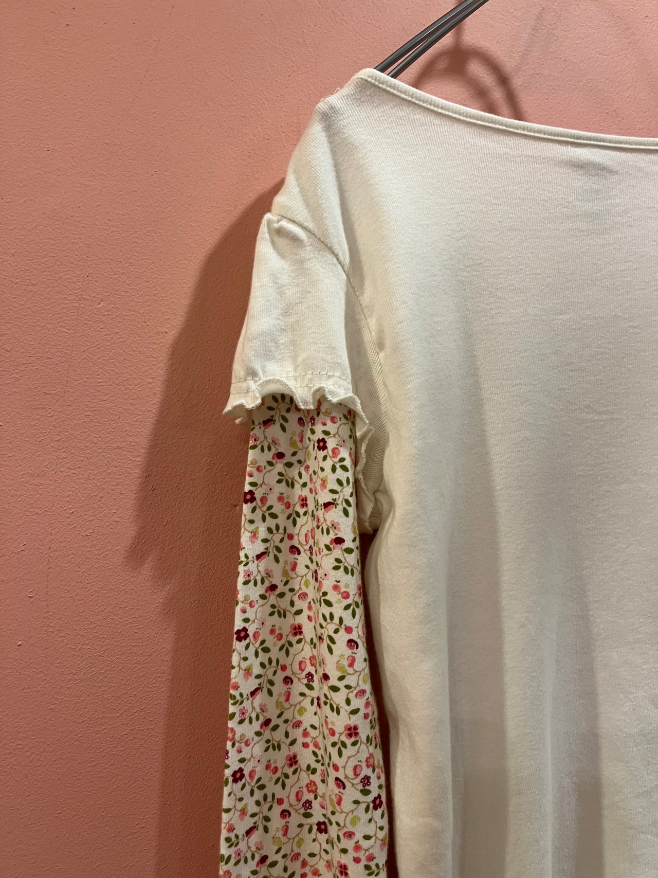 花柄スリーブをレイヤードしたようなデザインが特徴のトップス