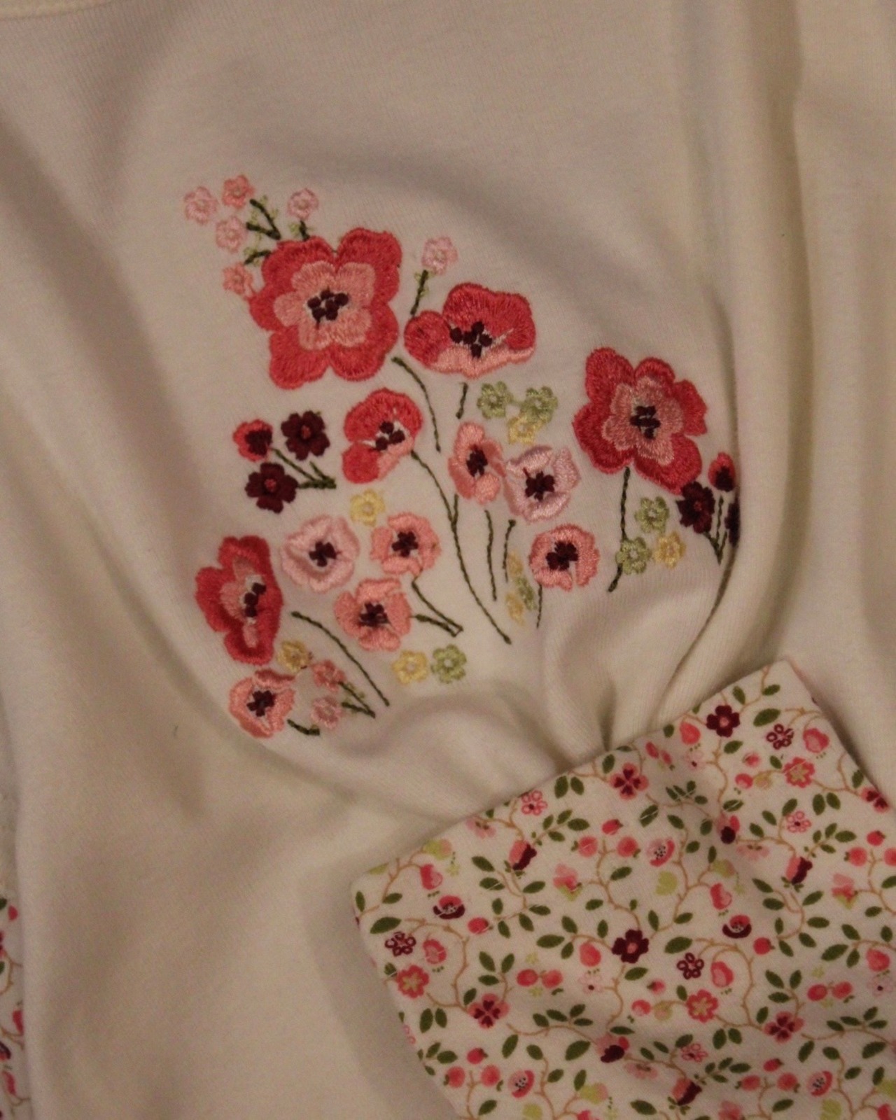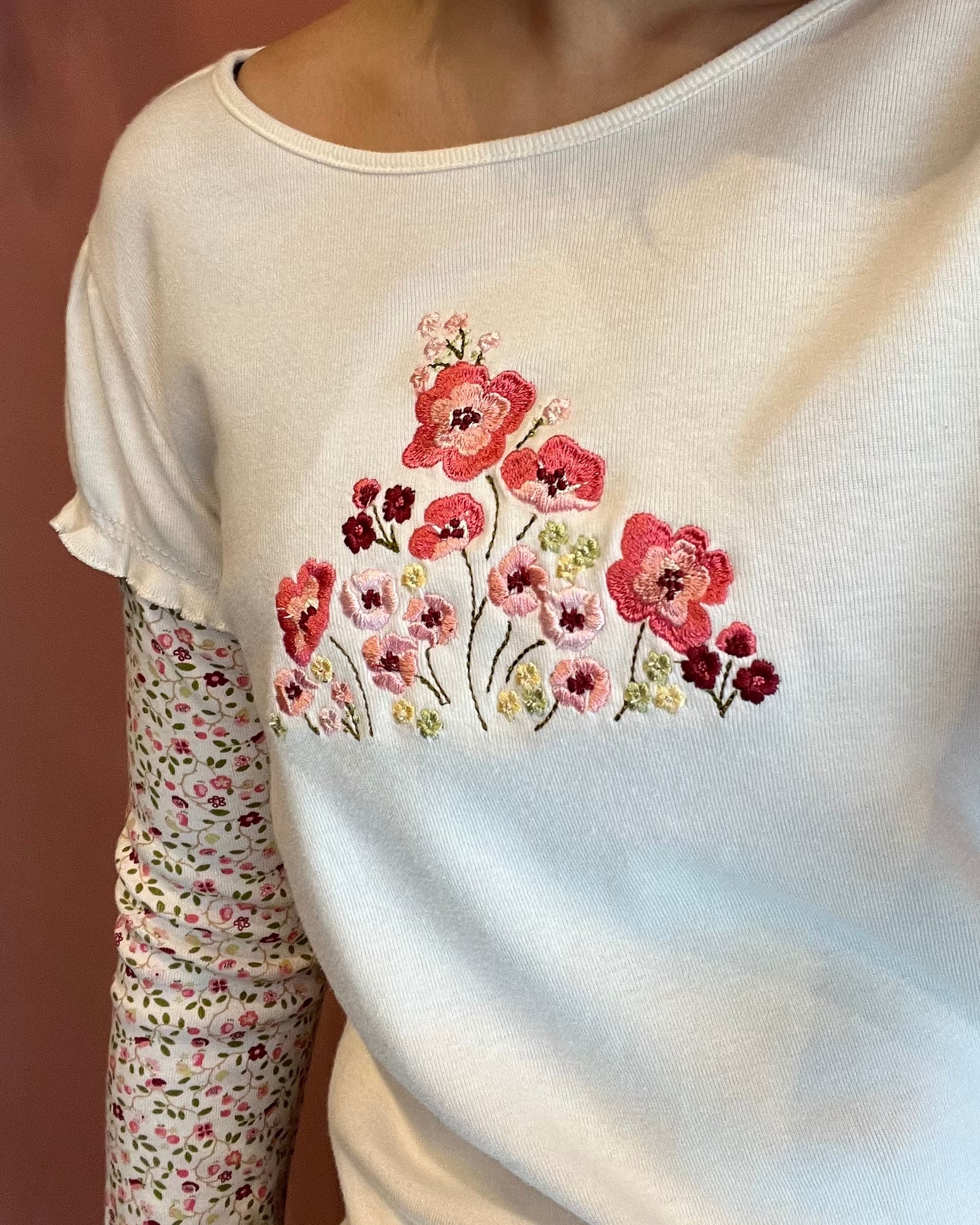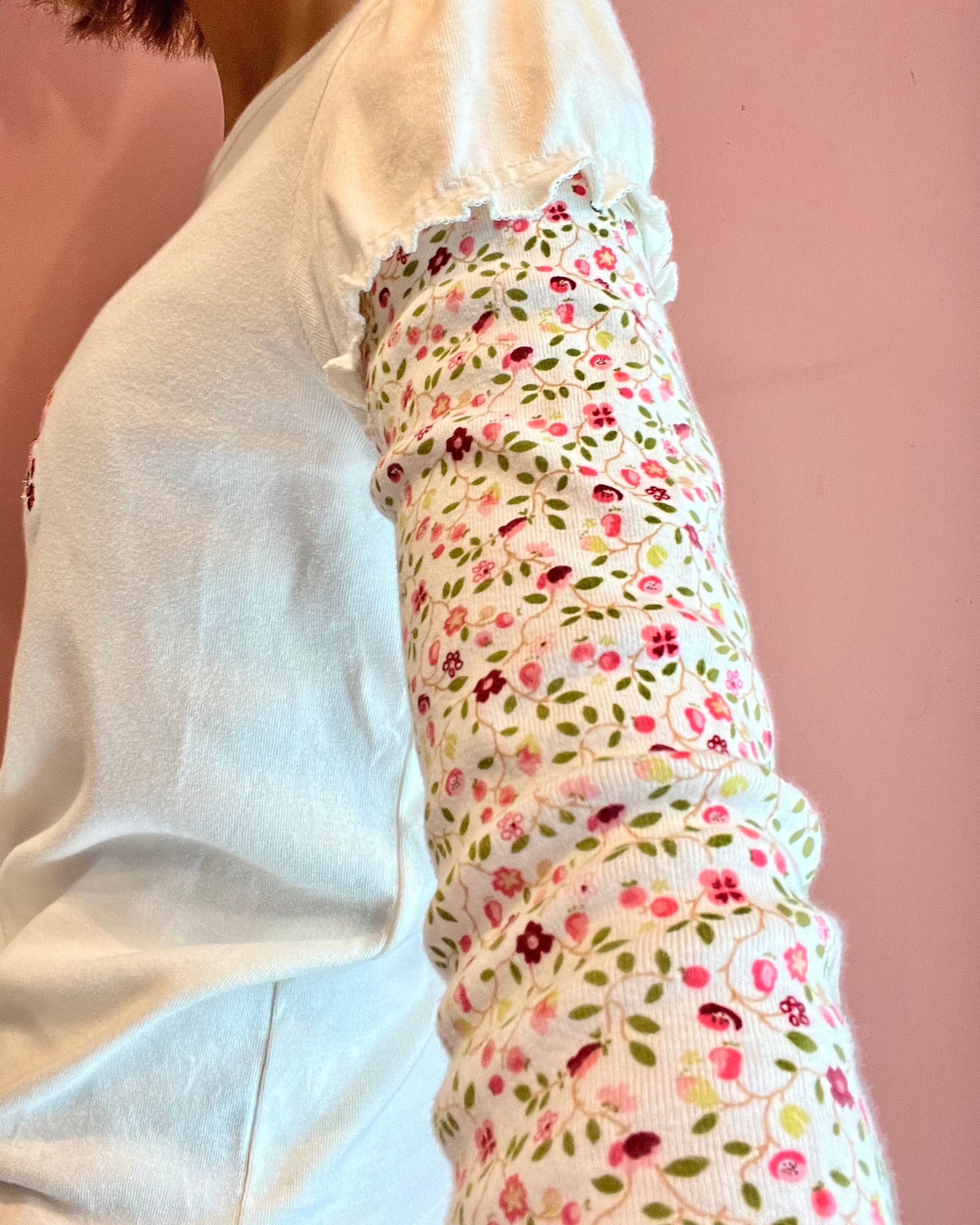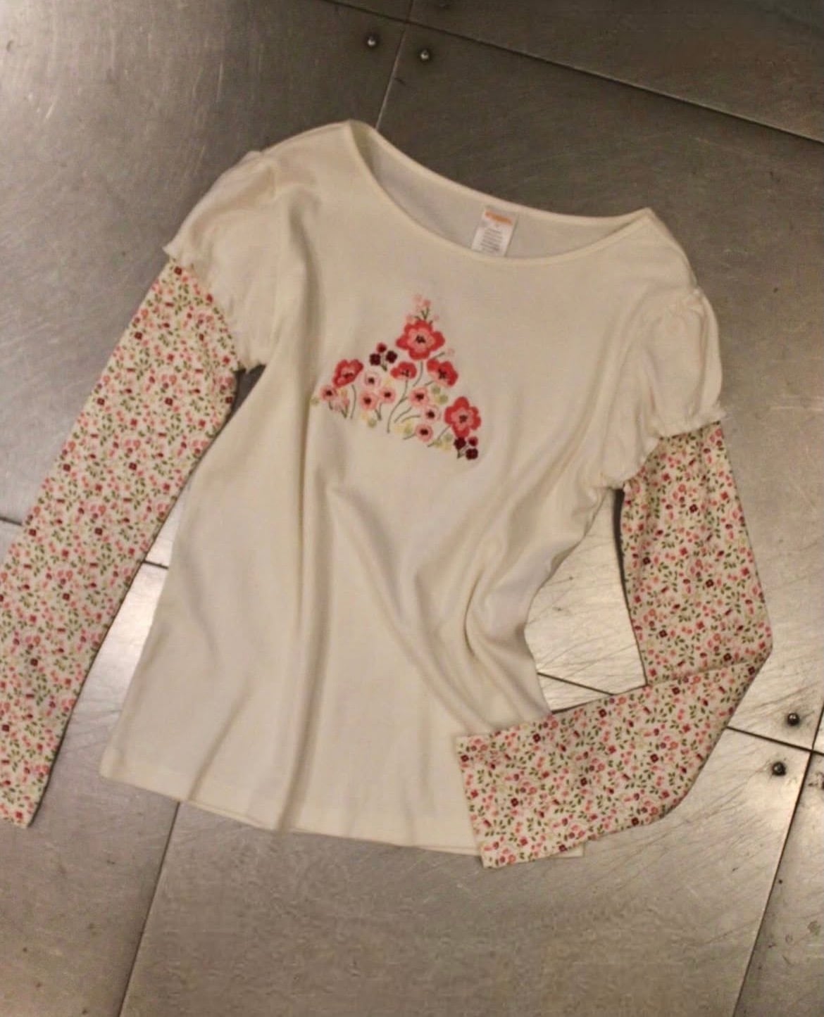 花柄スリーブをレイヤードしたようなデザインが特徴のトップス