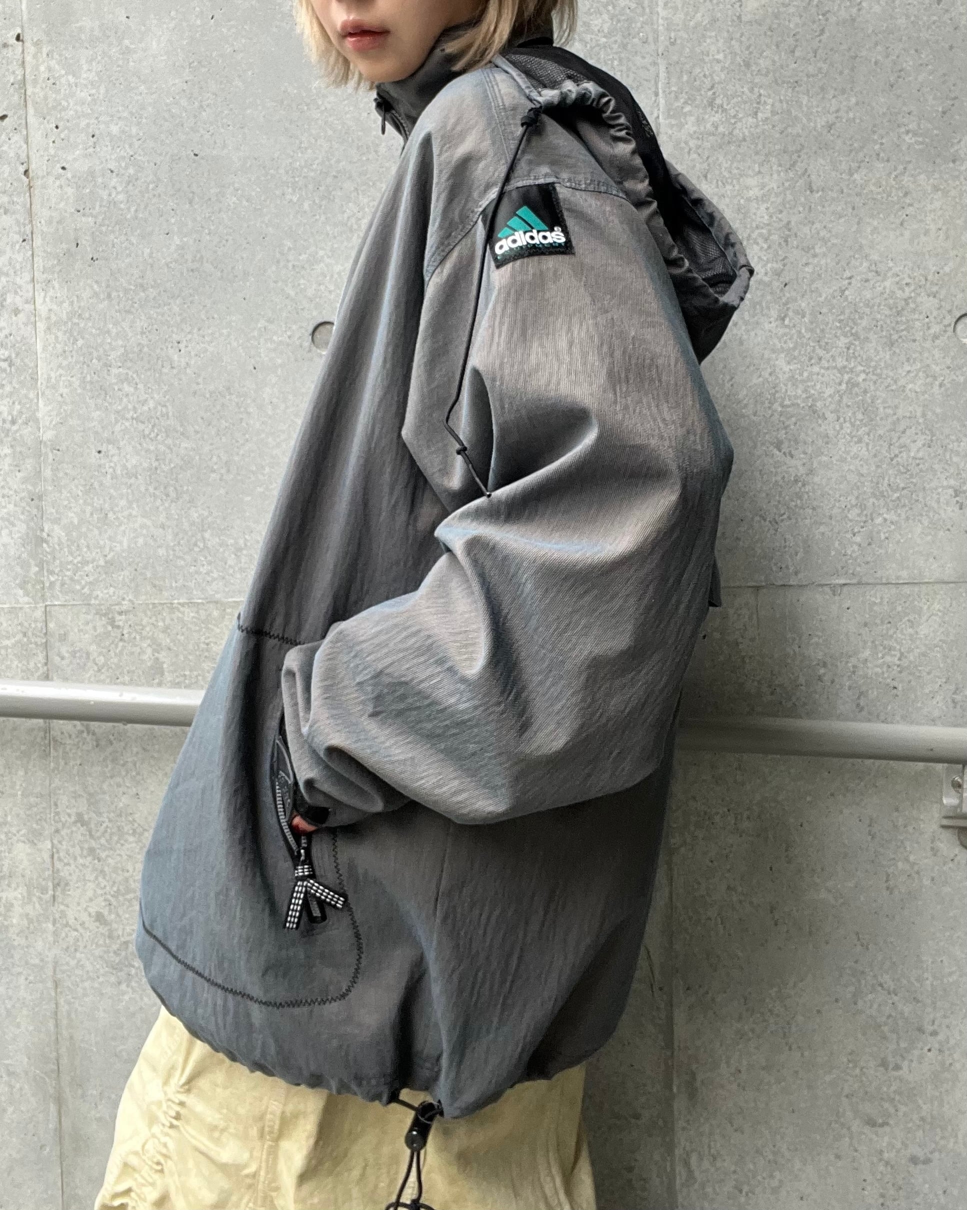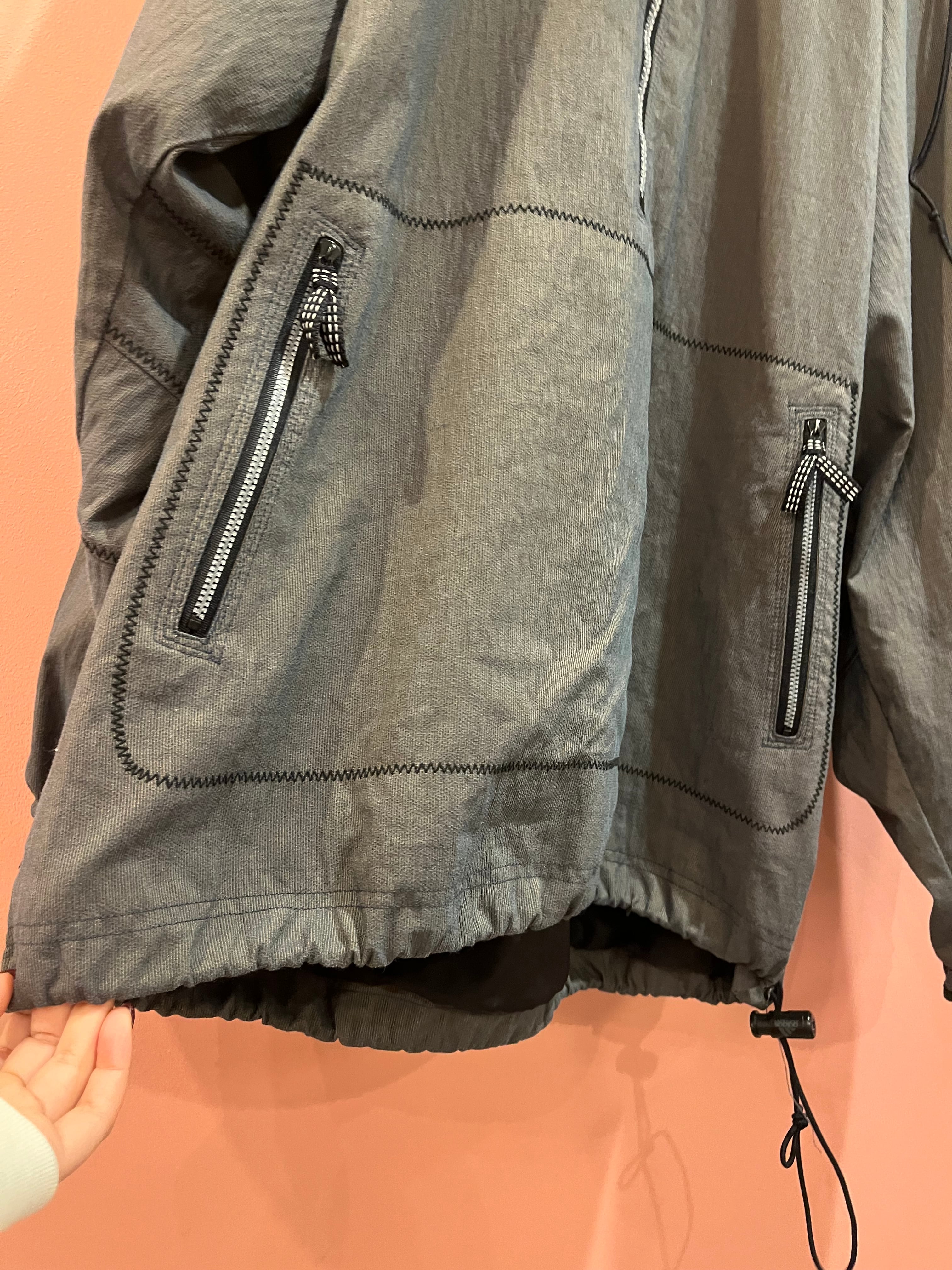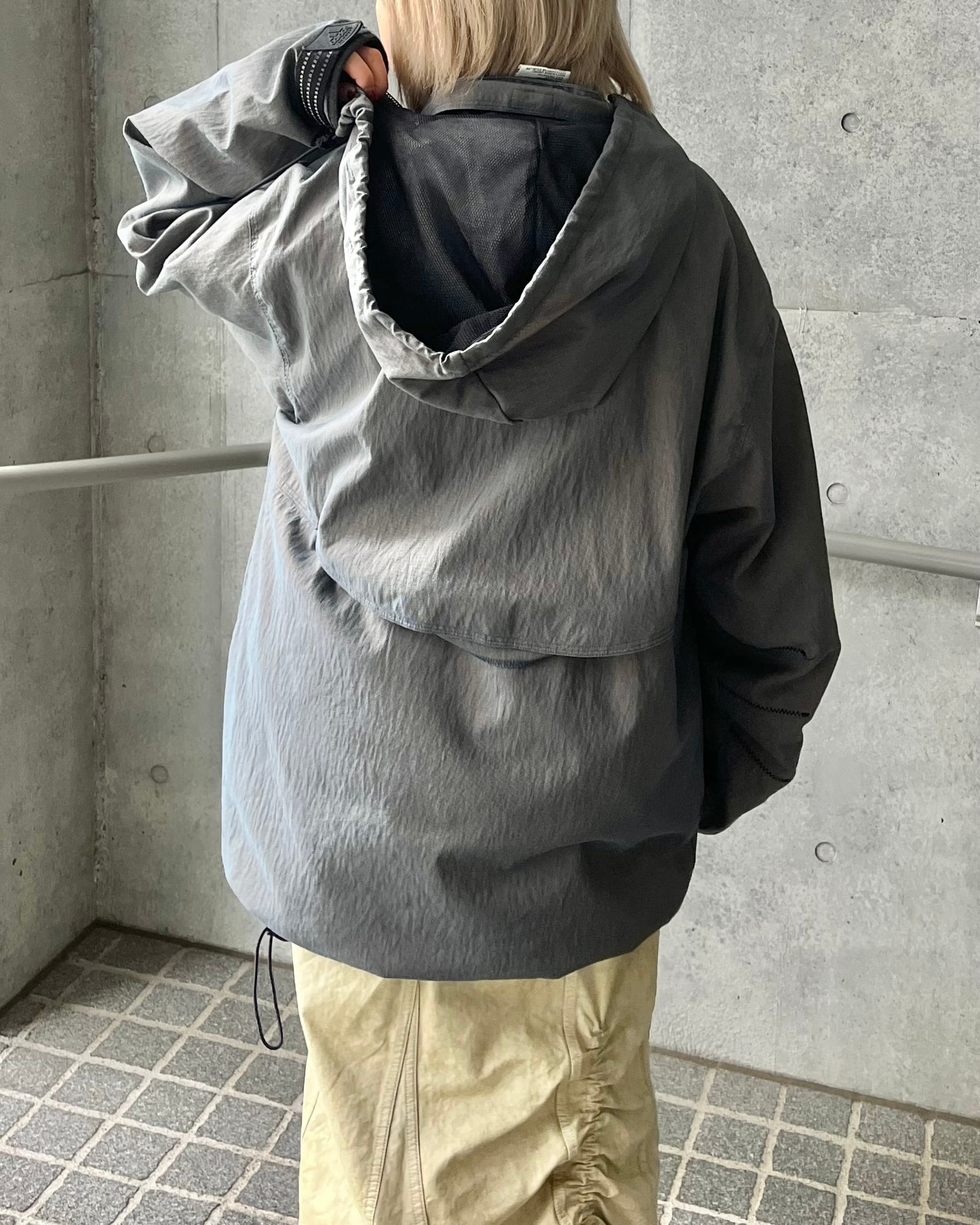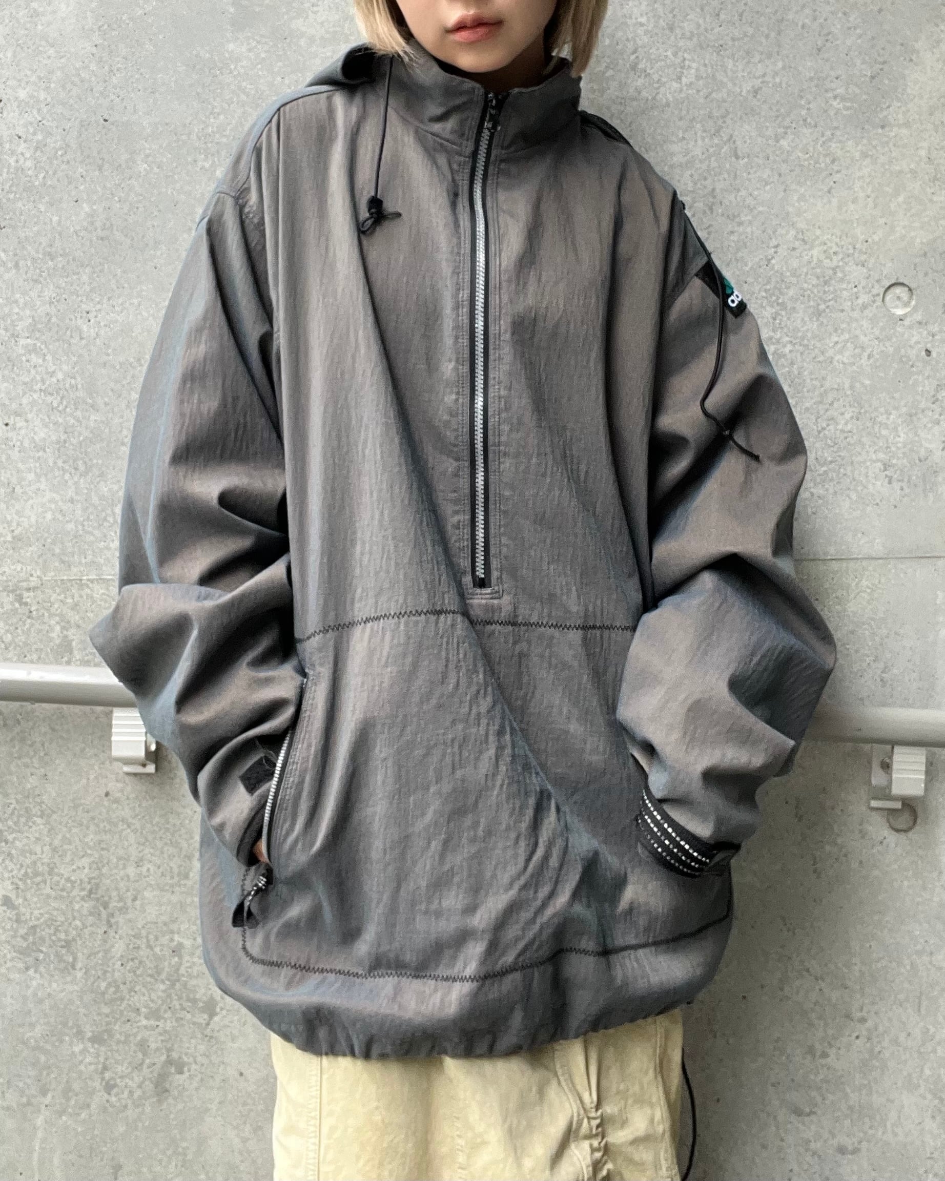 ハーフジップデザインと大きめシルエットが特徴で、ドローコード付きでシルエット調整もできます