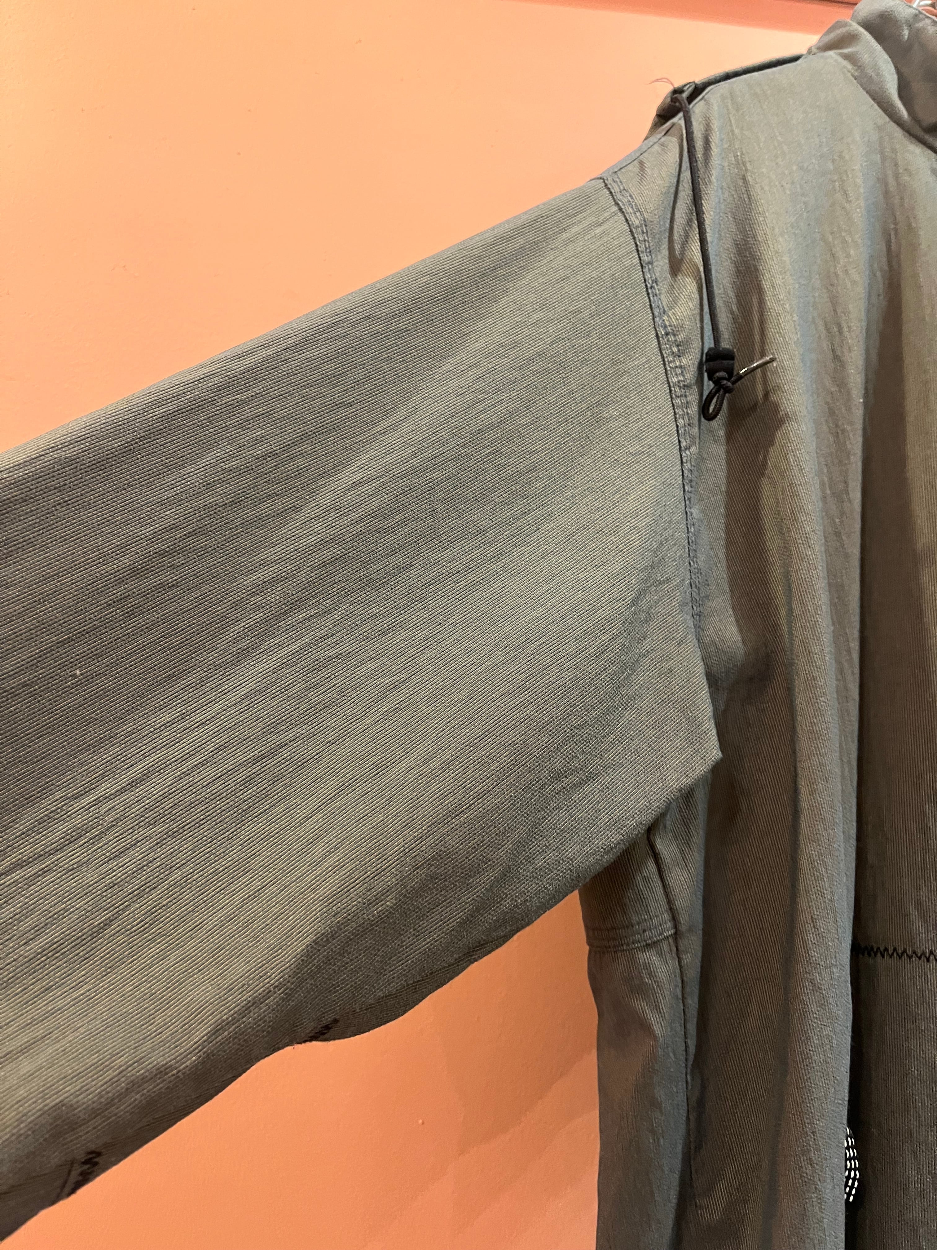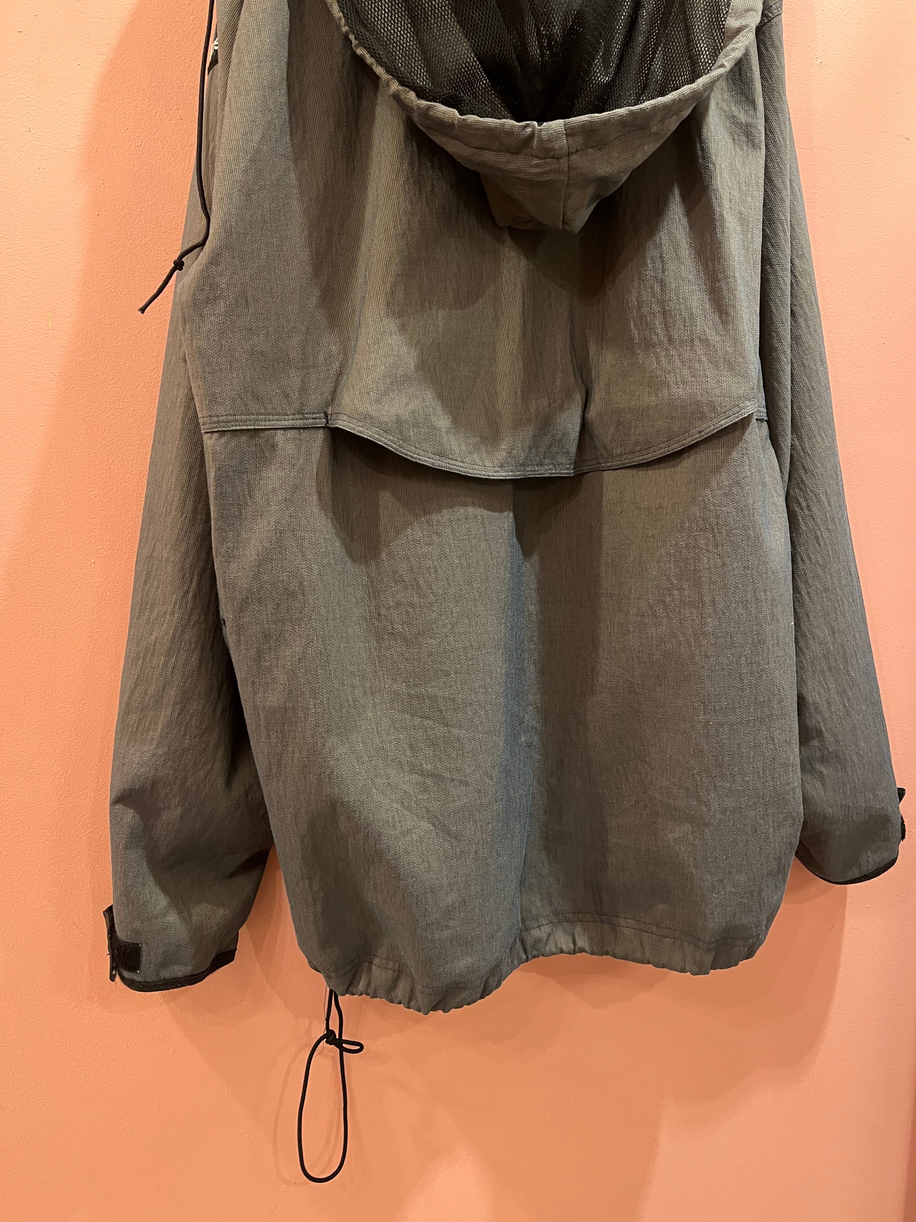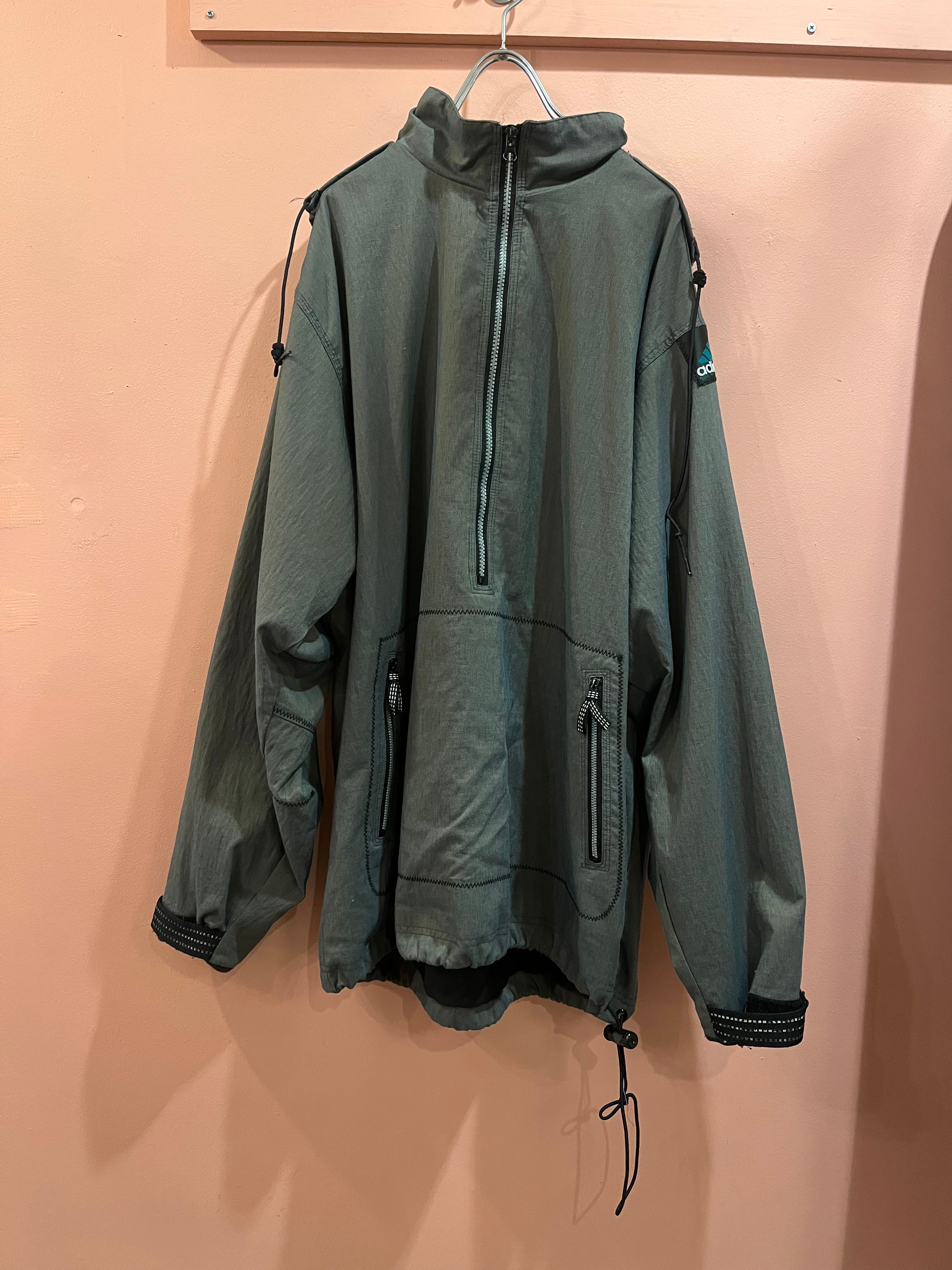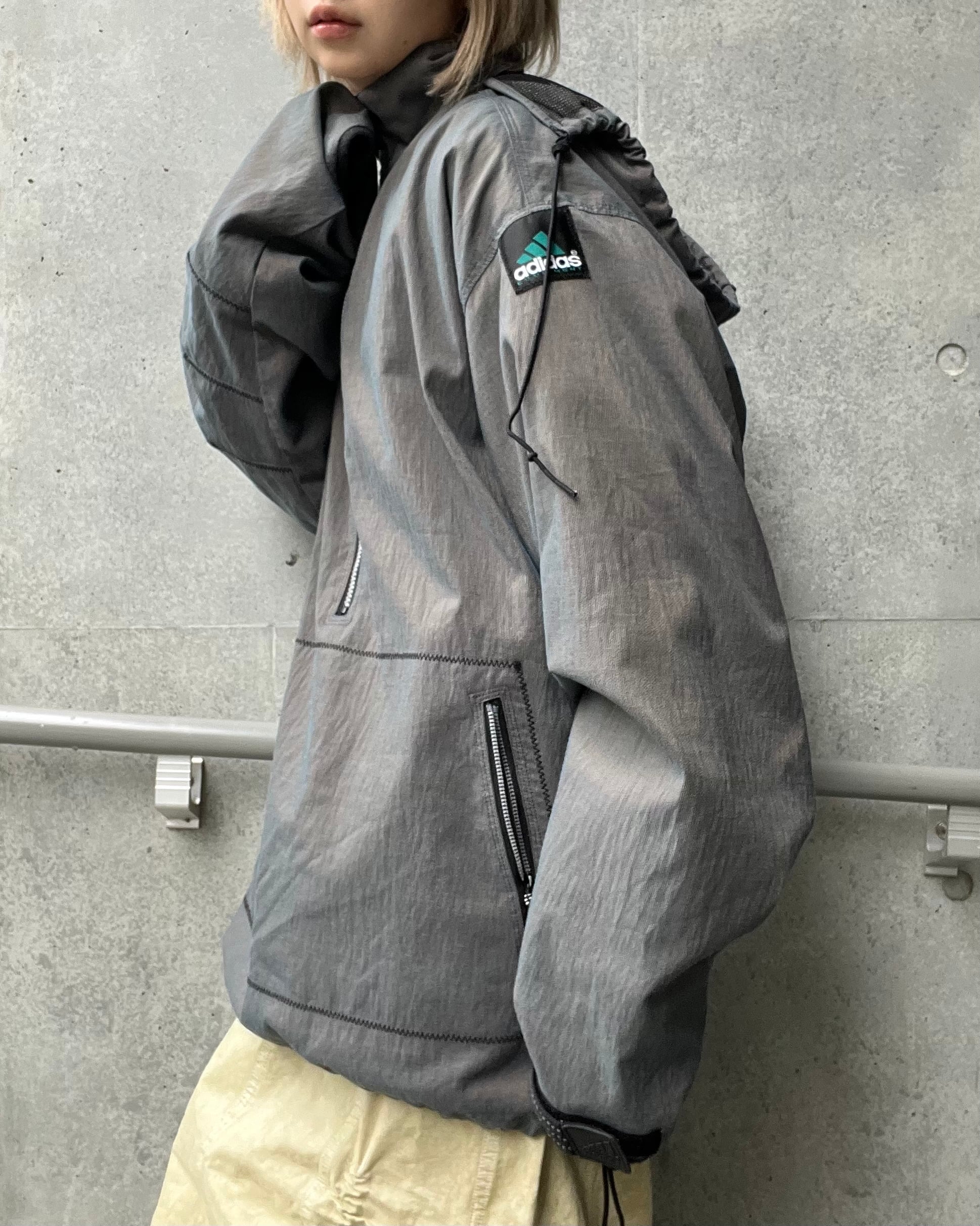 ハーフジップデザインと大きめシルエットが特徴で、ドローコード付きでシルエット調整もできます