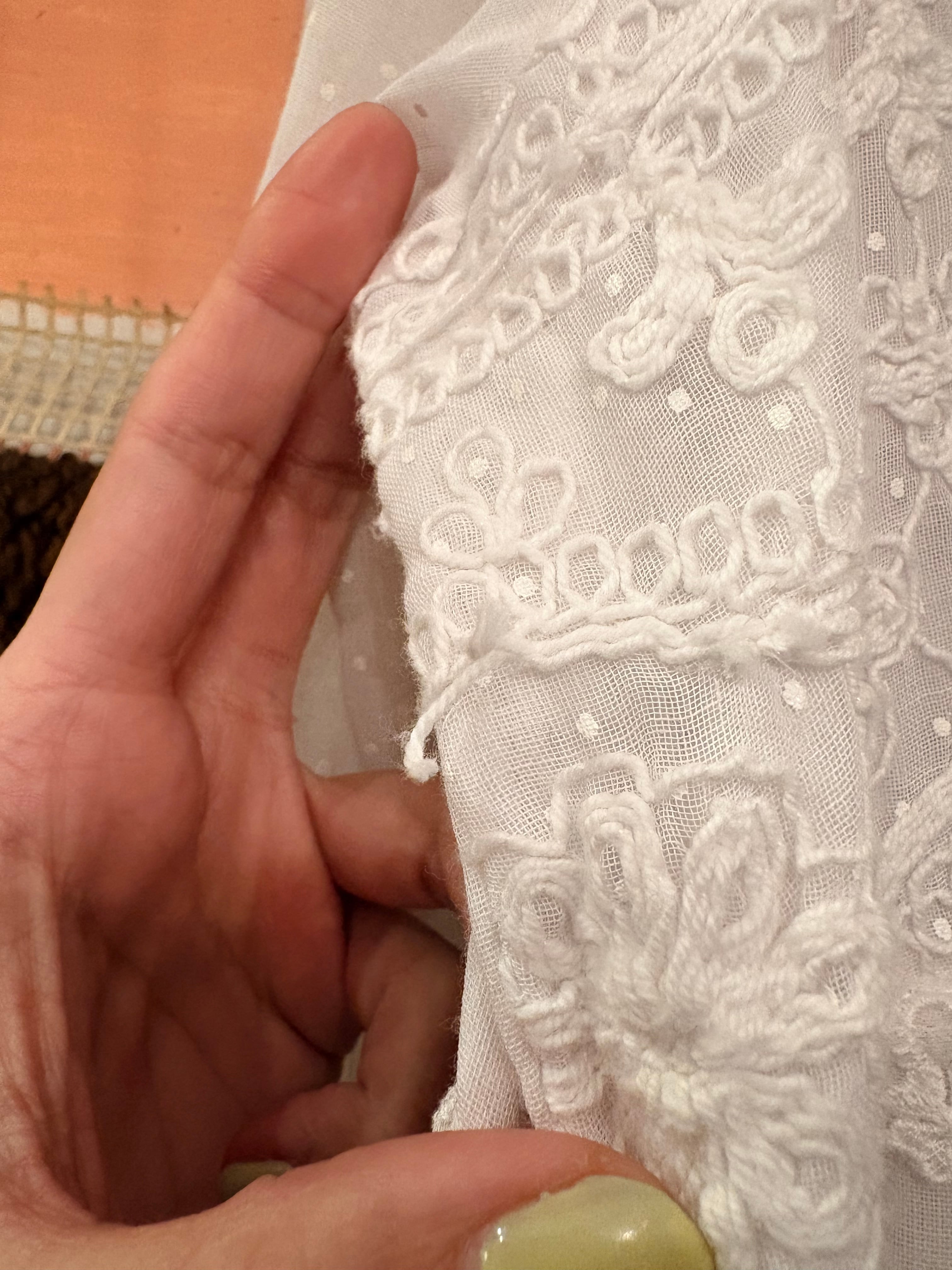 両脇の刺繍がほつれています。ご了承いただける方のみご購入をお願いいたします。