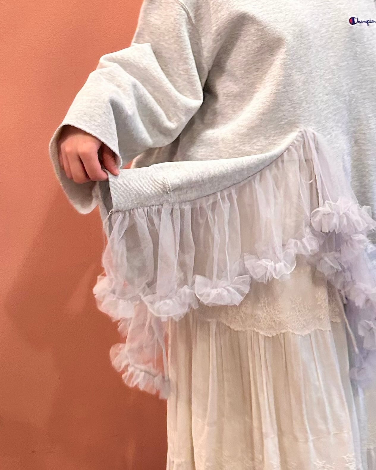 Championのスウェットに大ぶりなチュールをあしらった、ROSE originalラインの"aanew"のアイテム