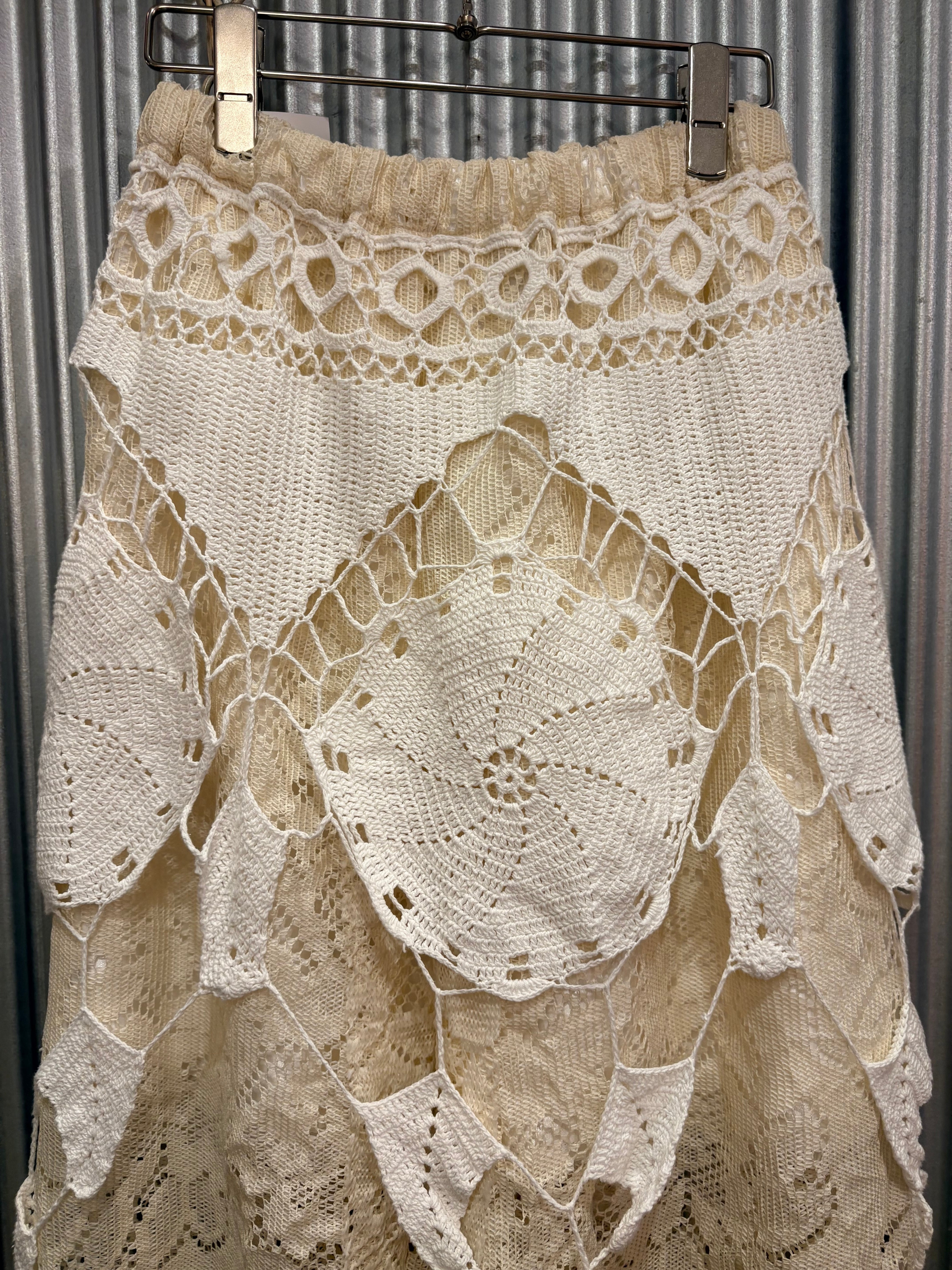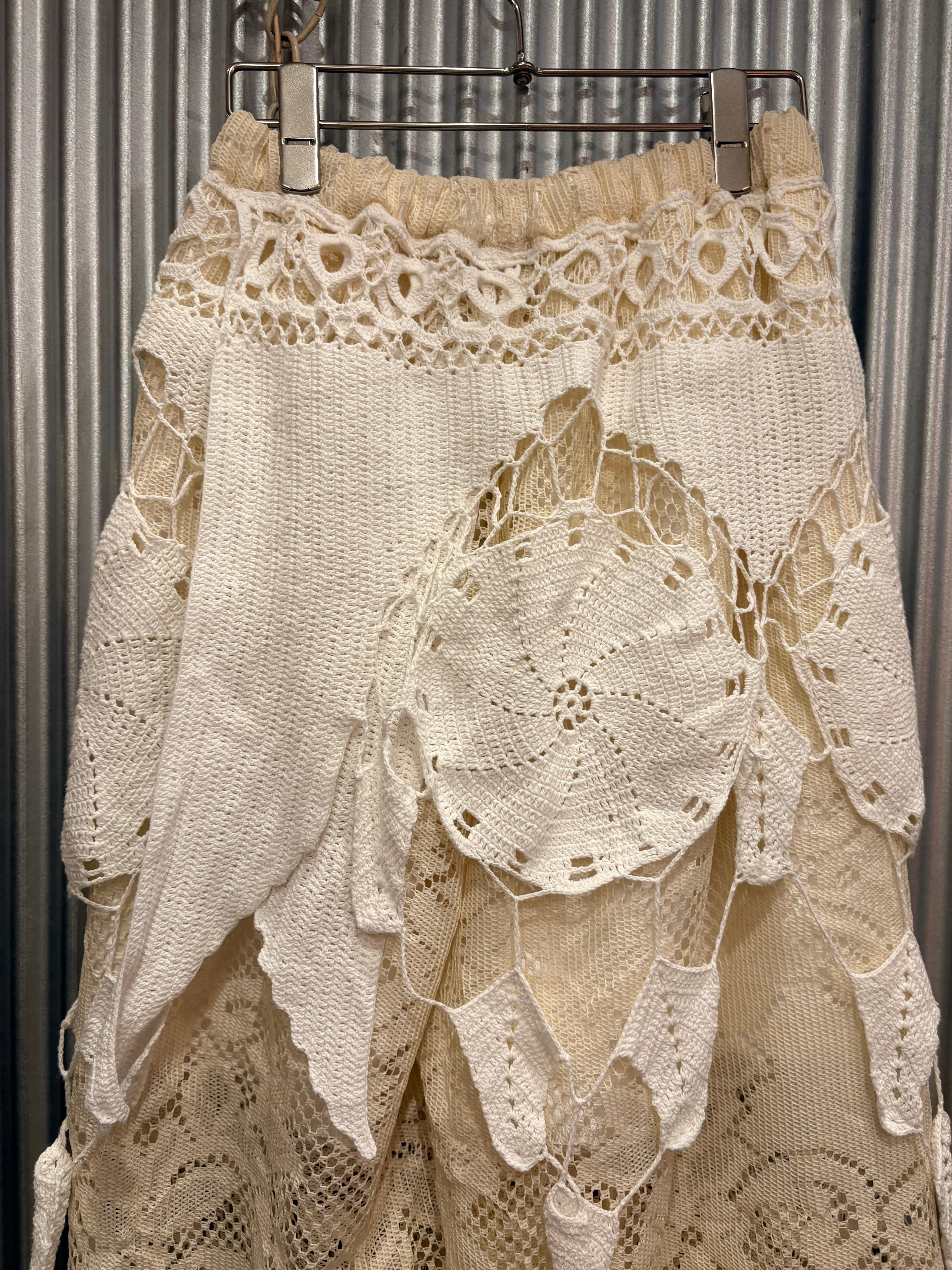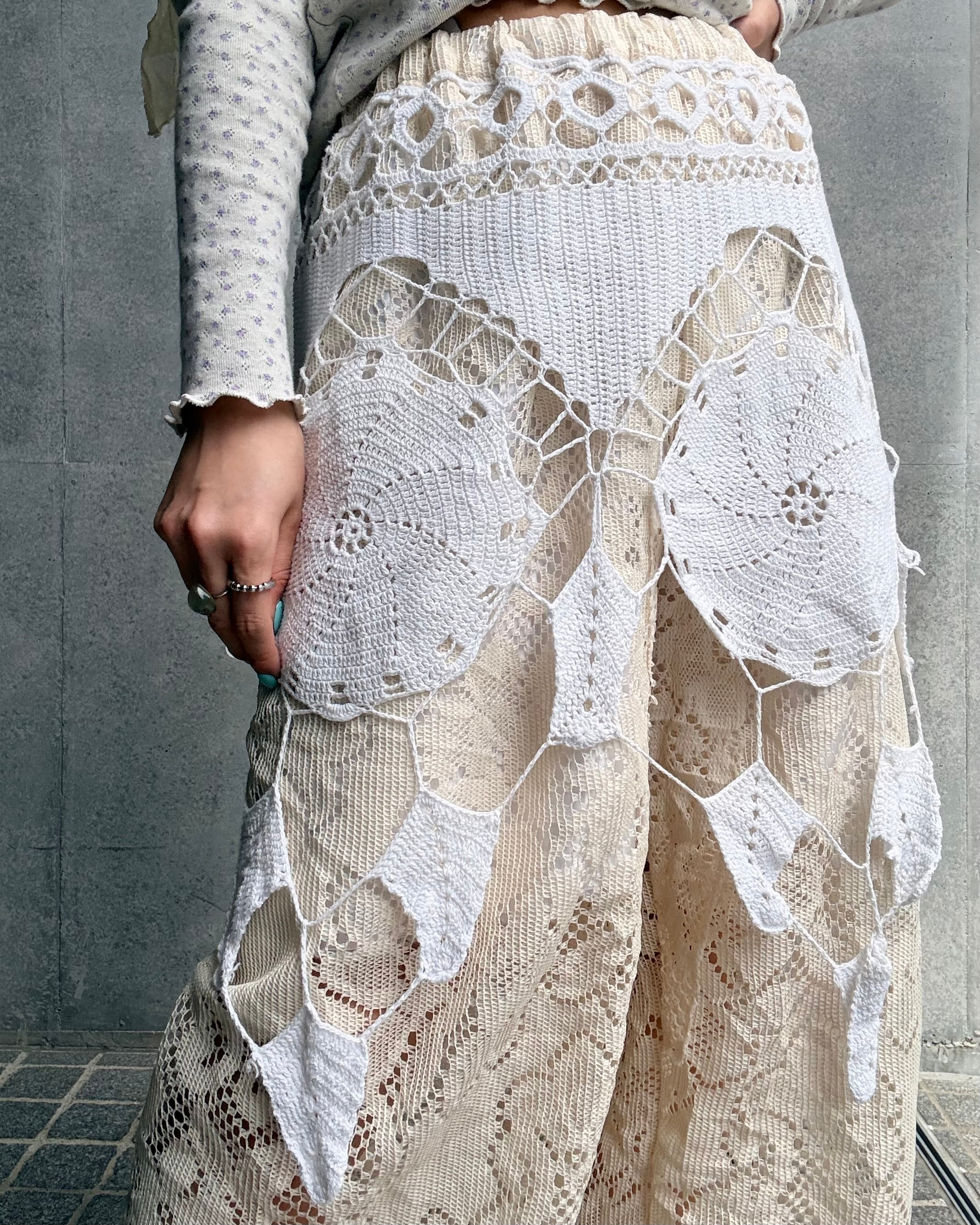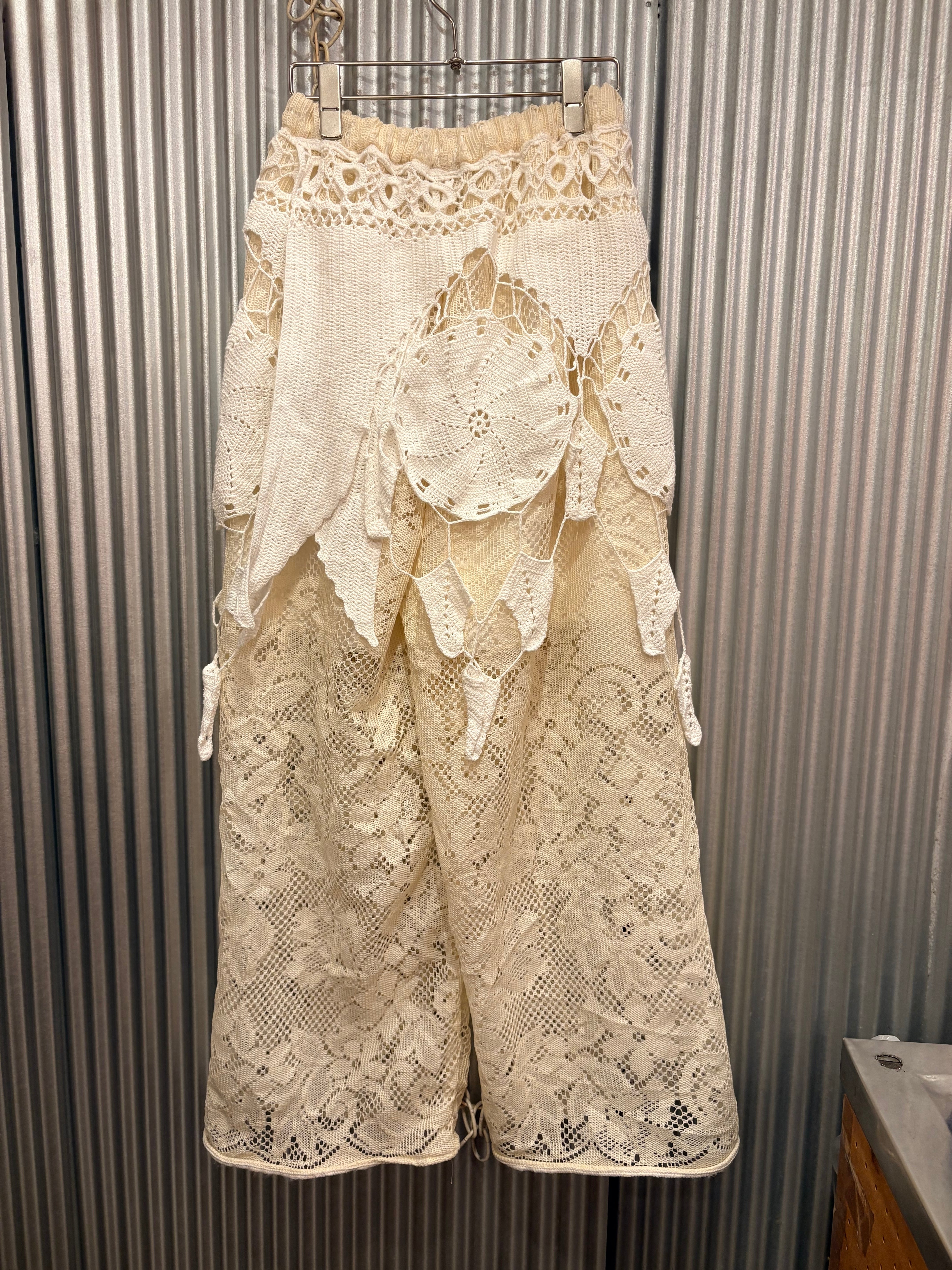 1枚でこなれ感のでるレイヤードパンツ。レースパンツにレースのスカートをレイヤードしたようなデザインです。