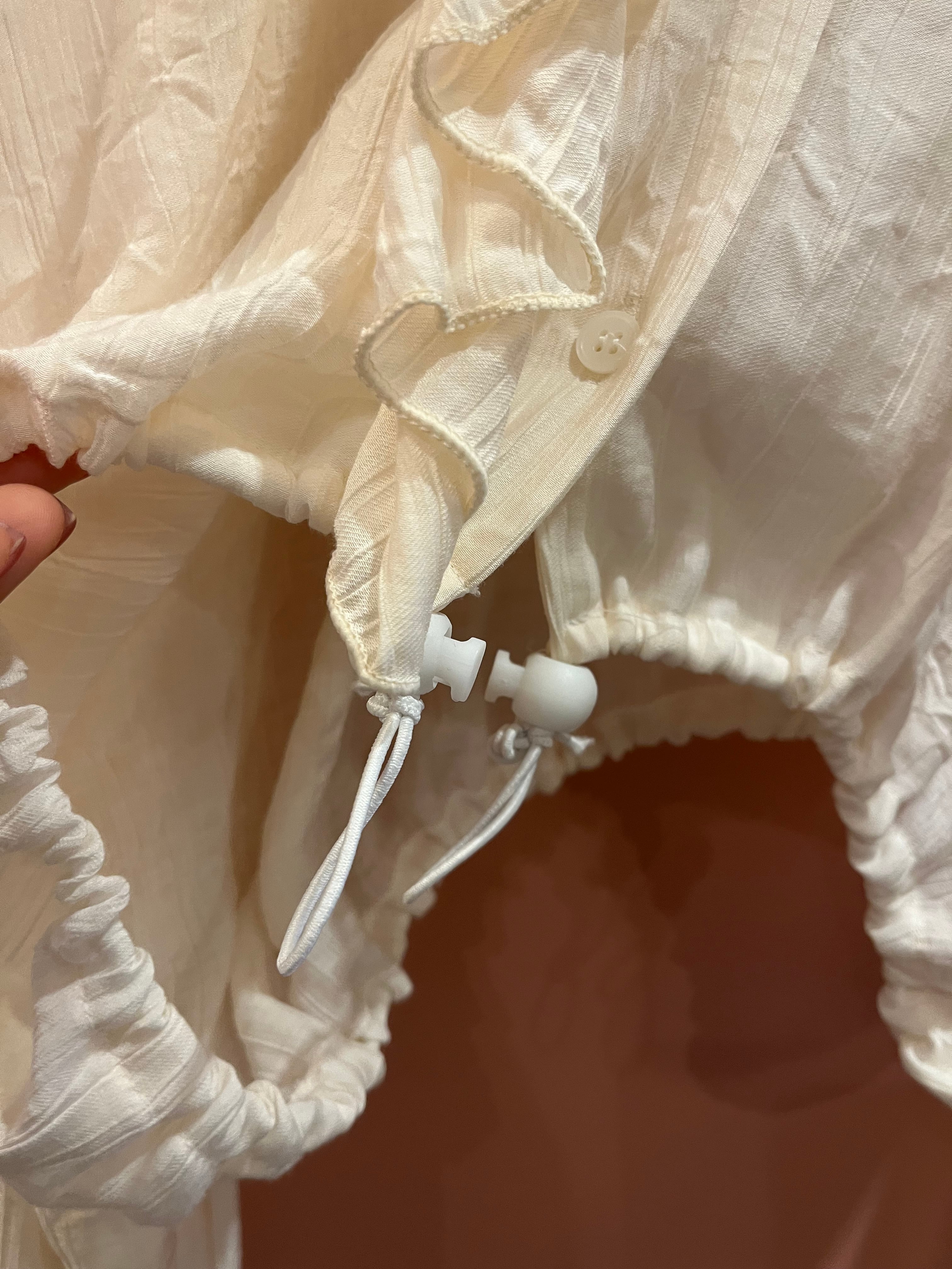 軽やかな素材感とギャザーシルエットで、甘さの中に抜け感もある1枚です