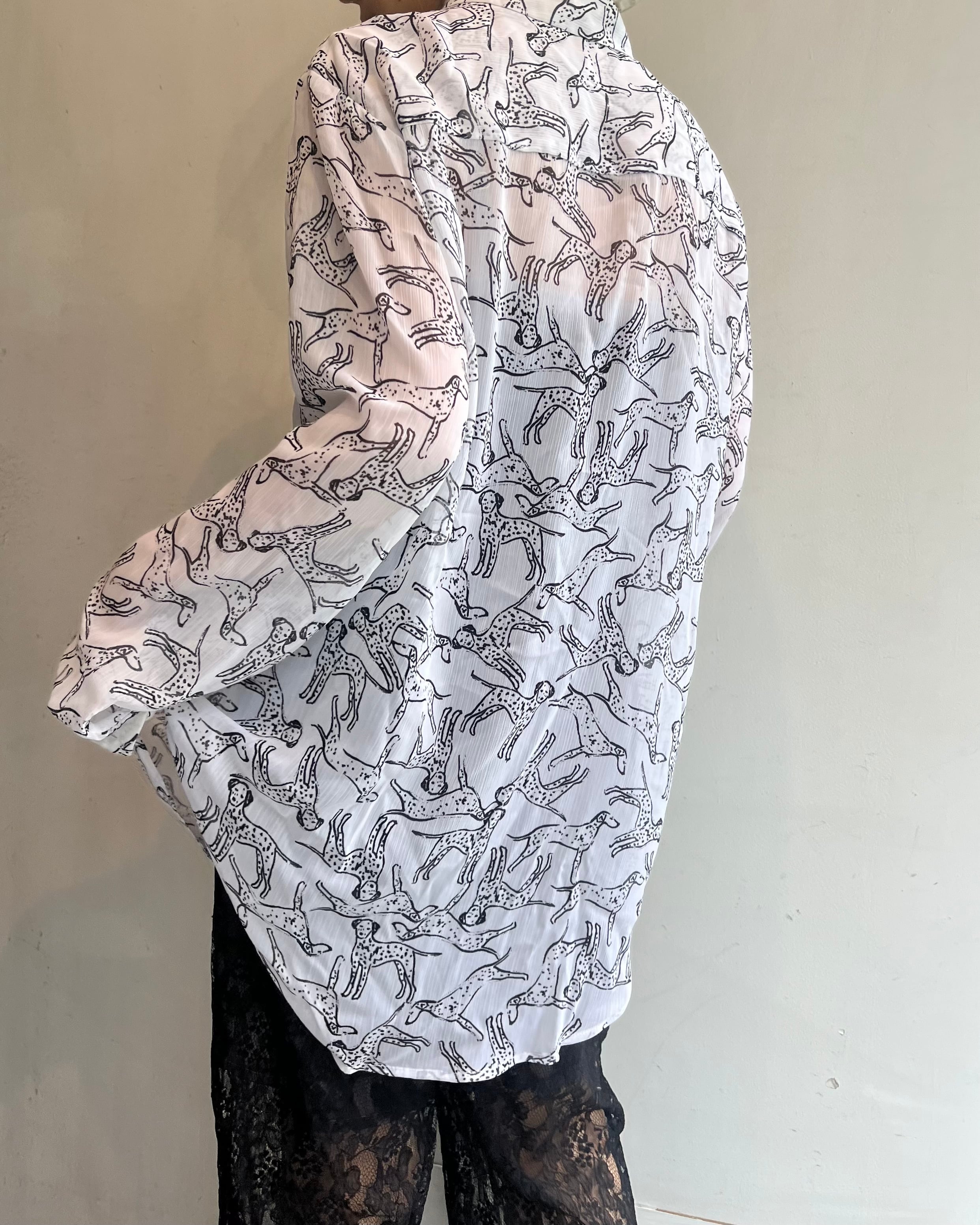 繊細なタッチで描かれたダルメシアン柄のプリントが印象的