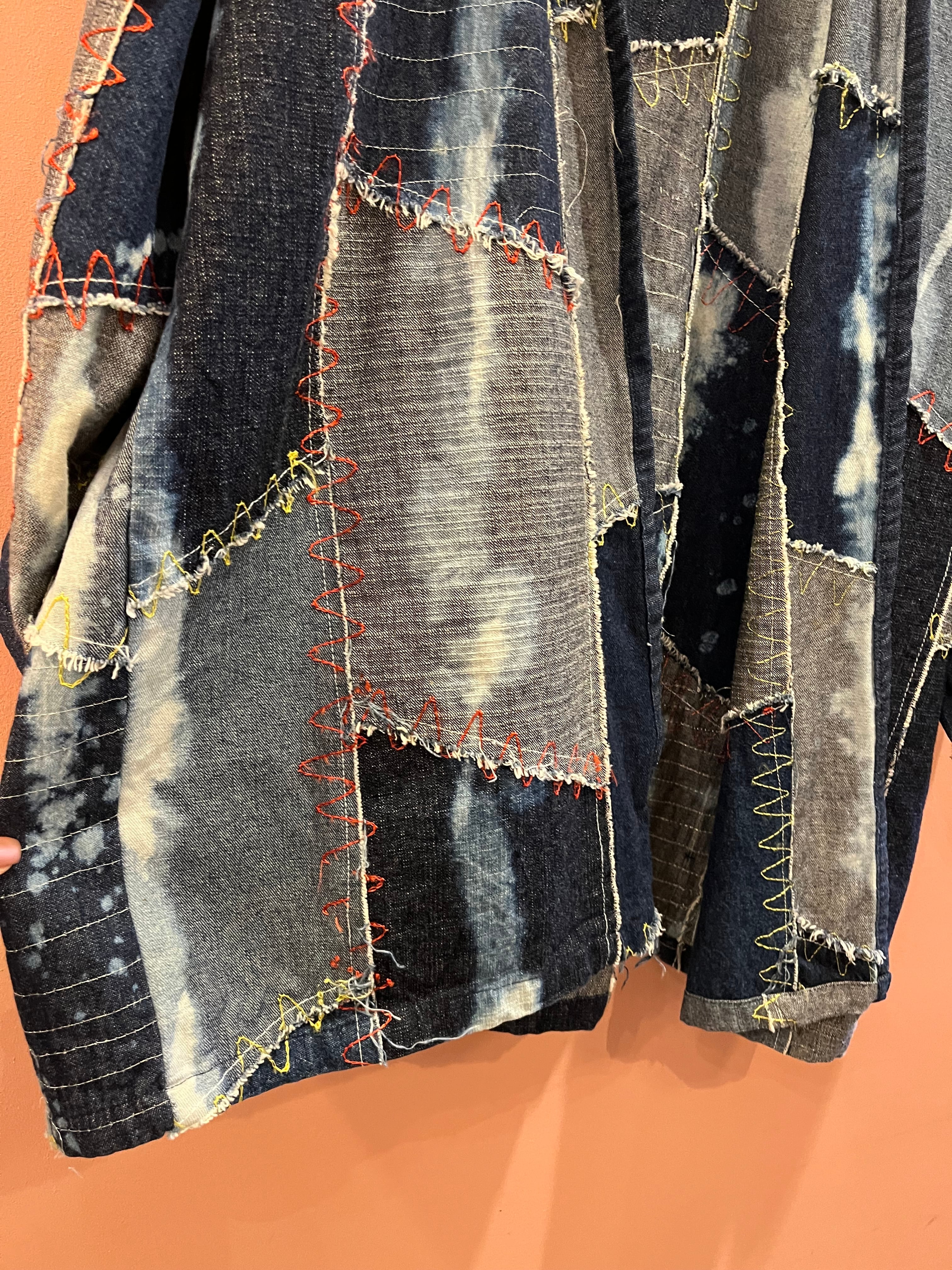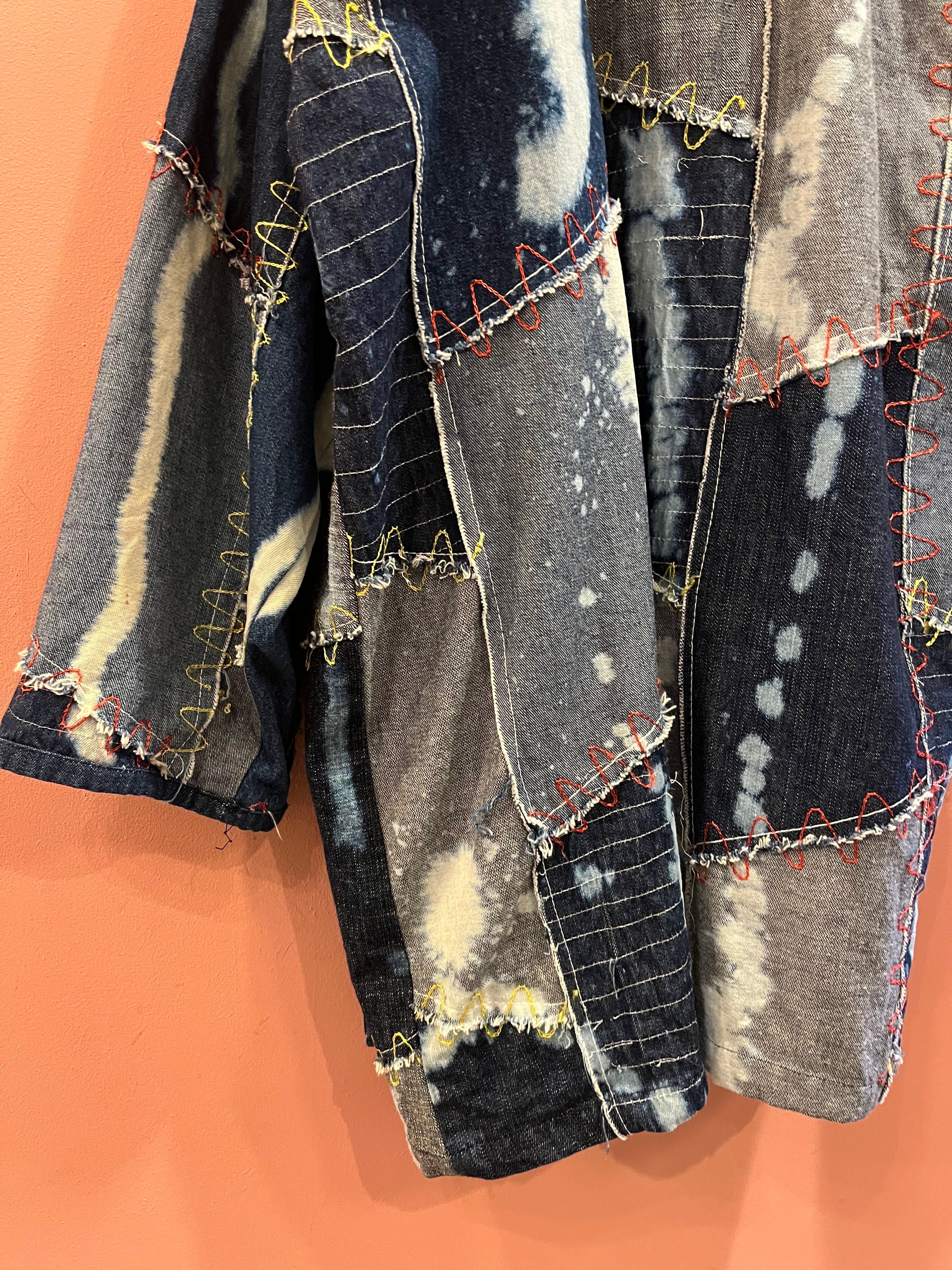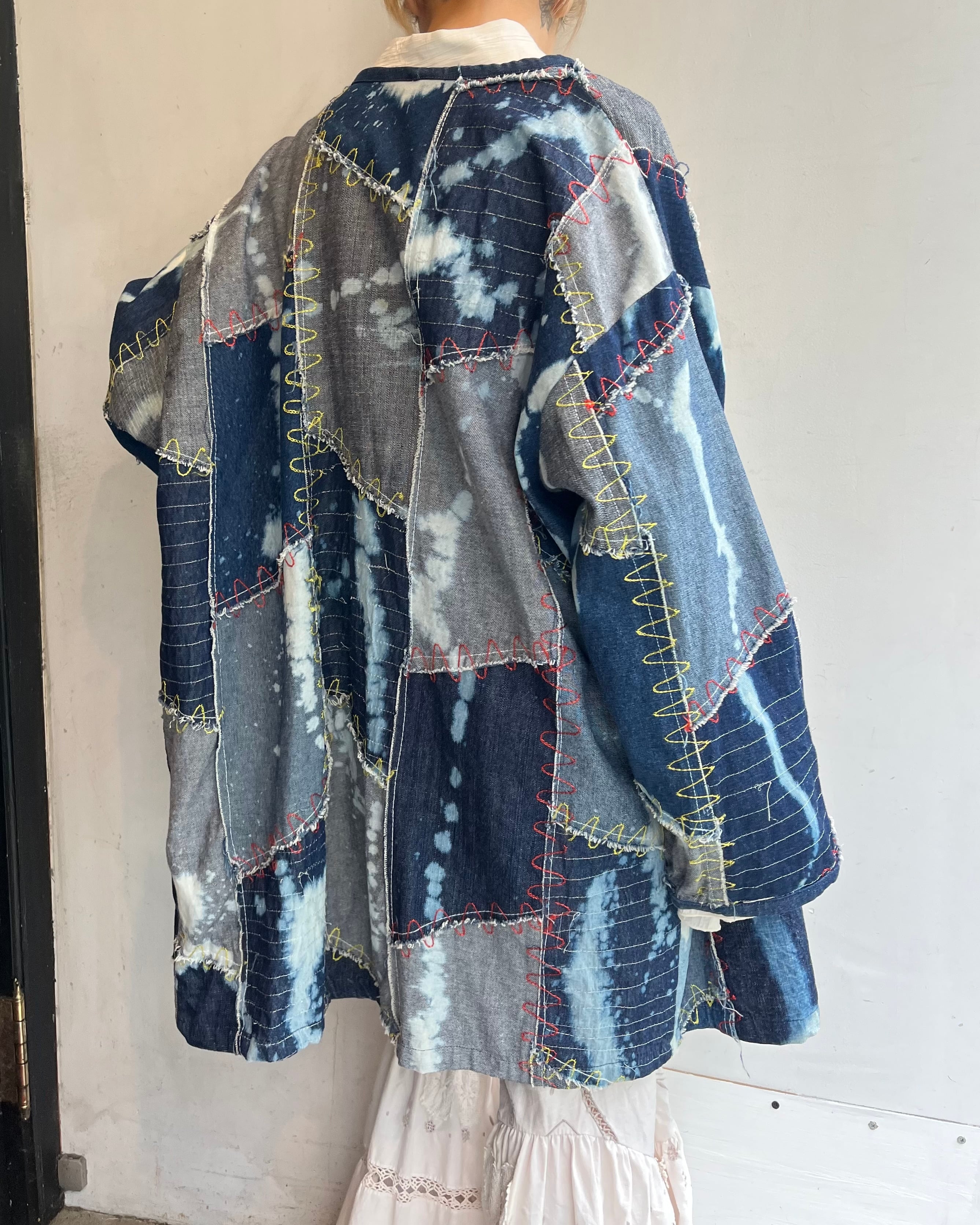 異なるデニム生地を組み合わせたリメイクのようなデザインジャケット