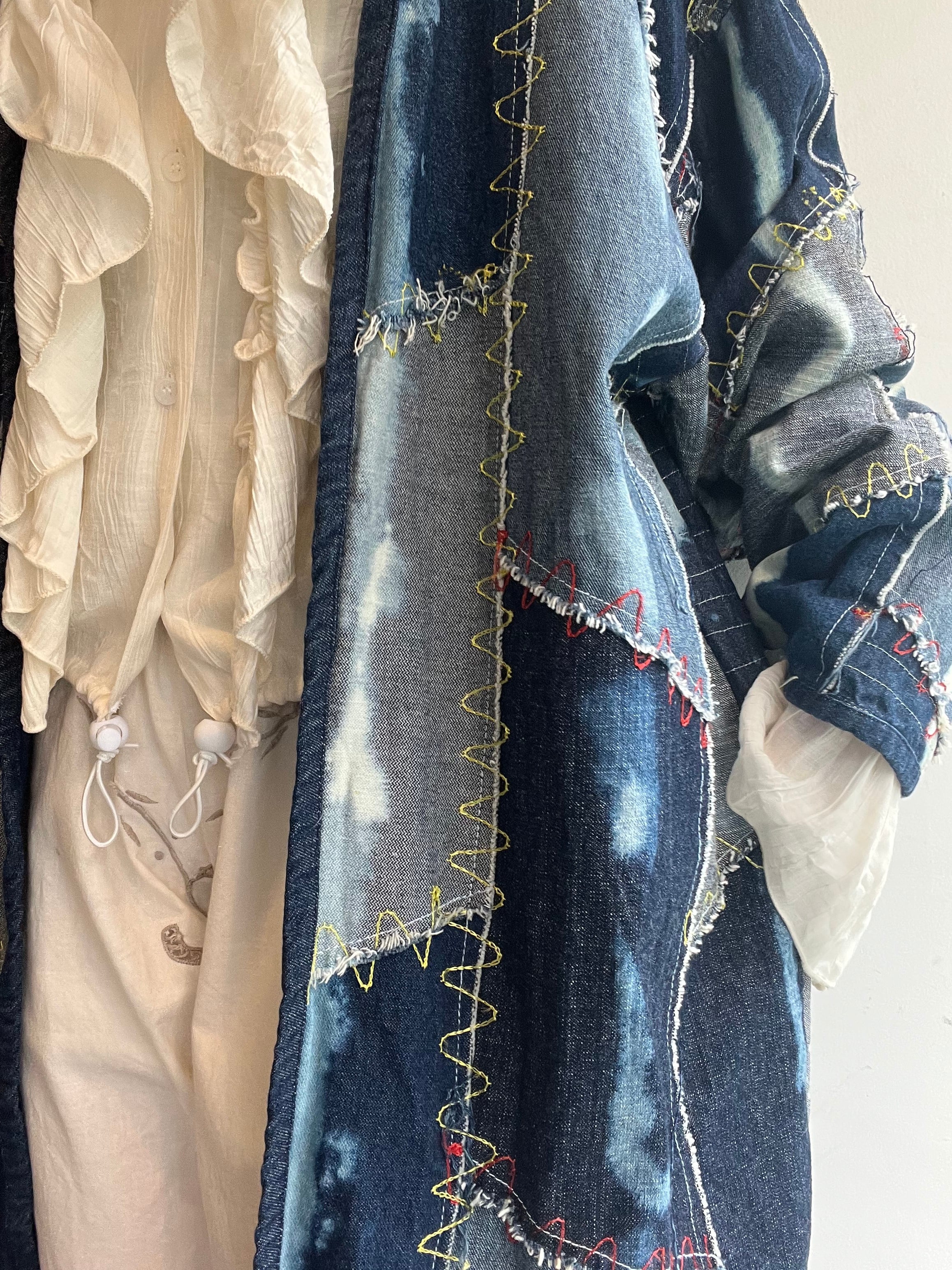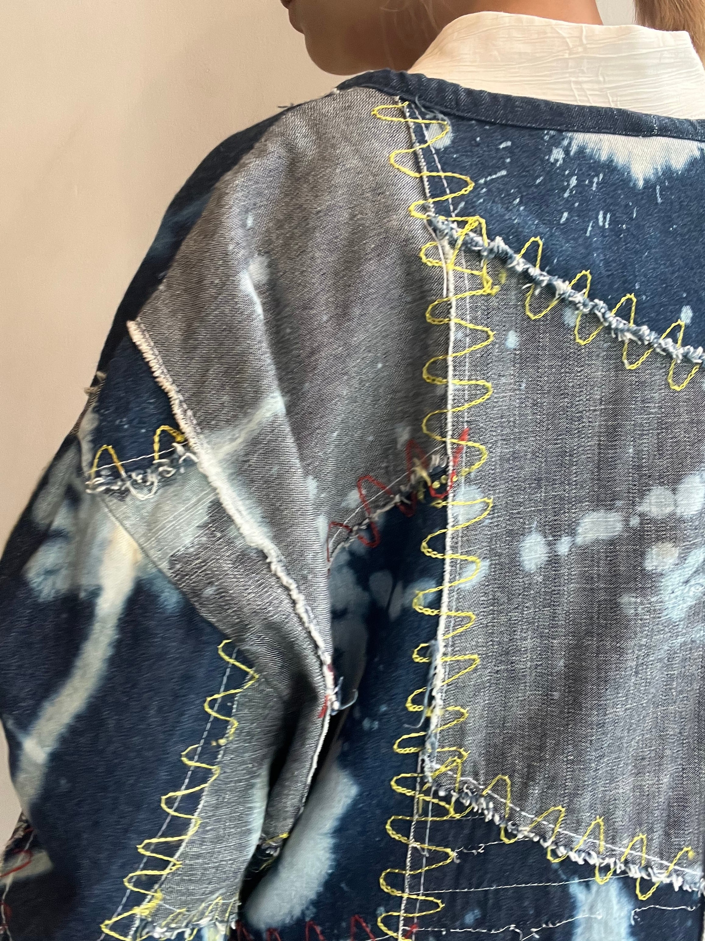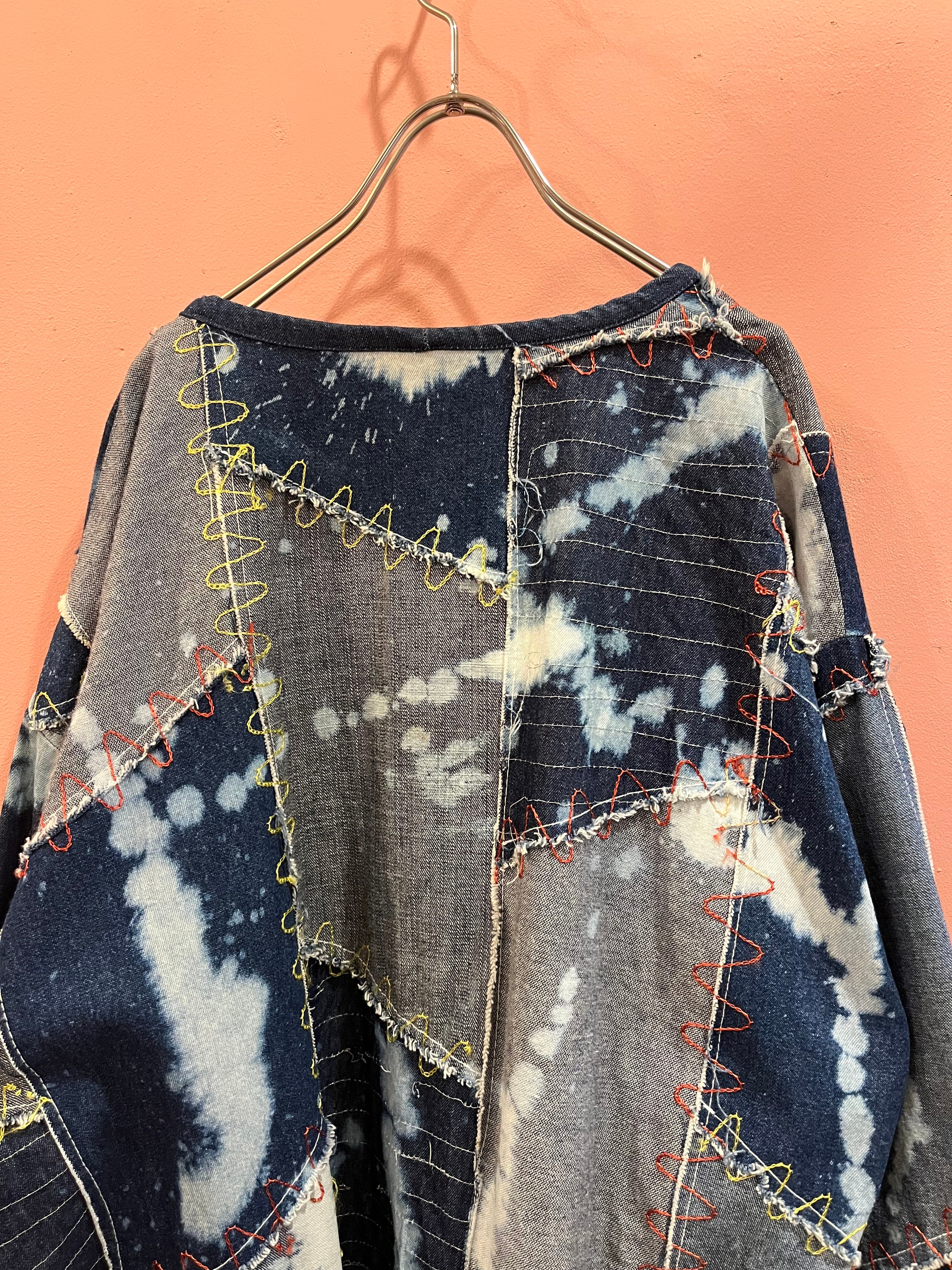 異なるデニム生地を組み合わせたリメイクのようなデザインジャケット