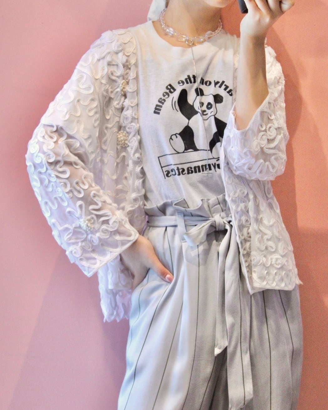 透け感のある軽やかな素材で、前を開けて羽織るだけでコーデに奥行きをプラスしてくれます