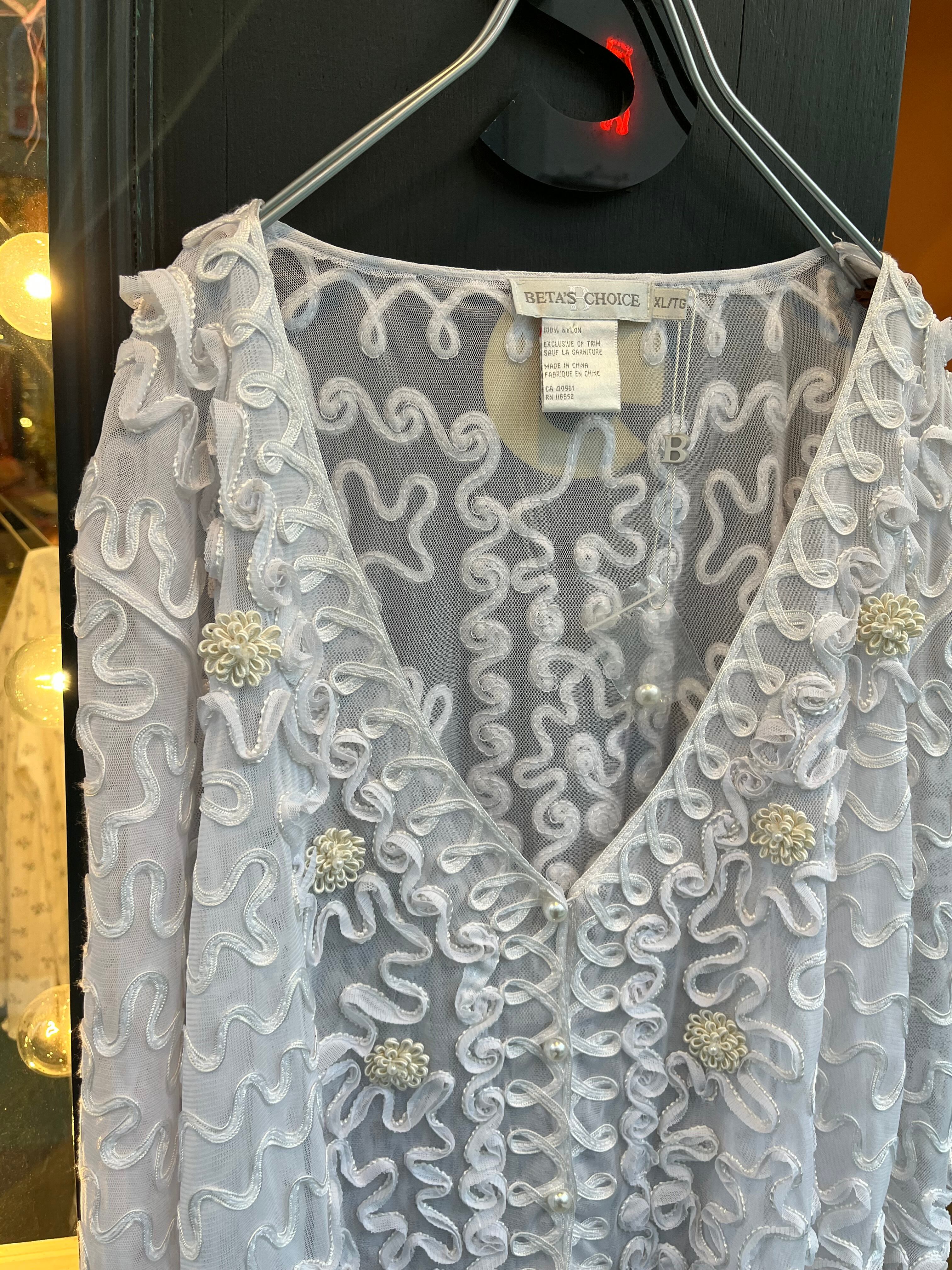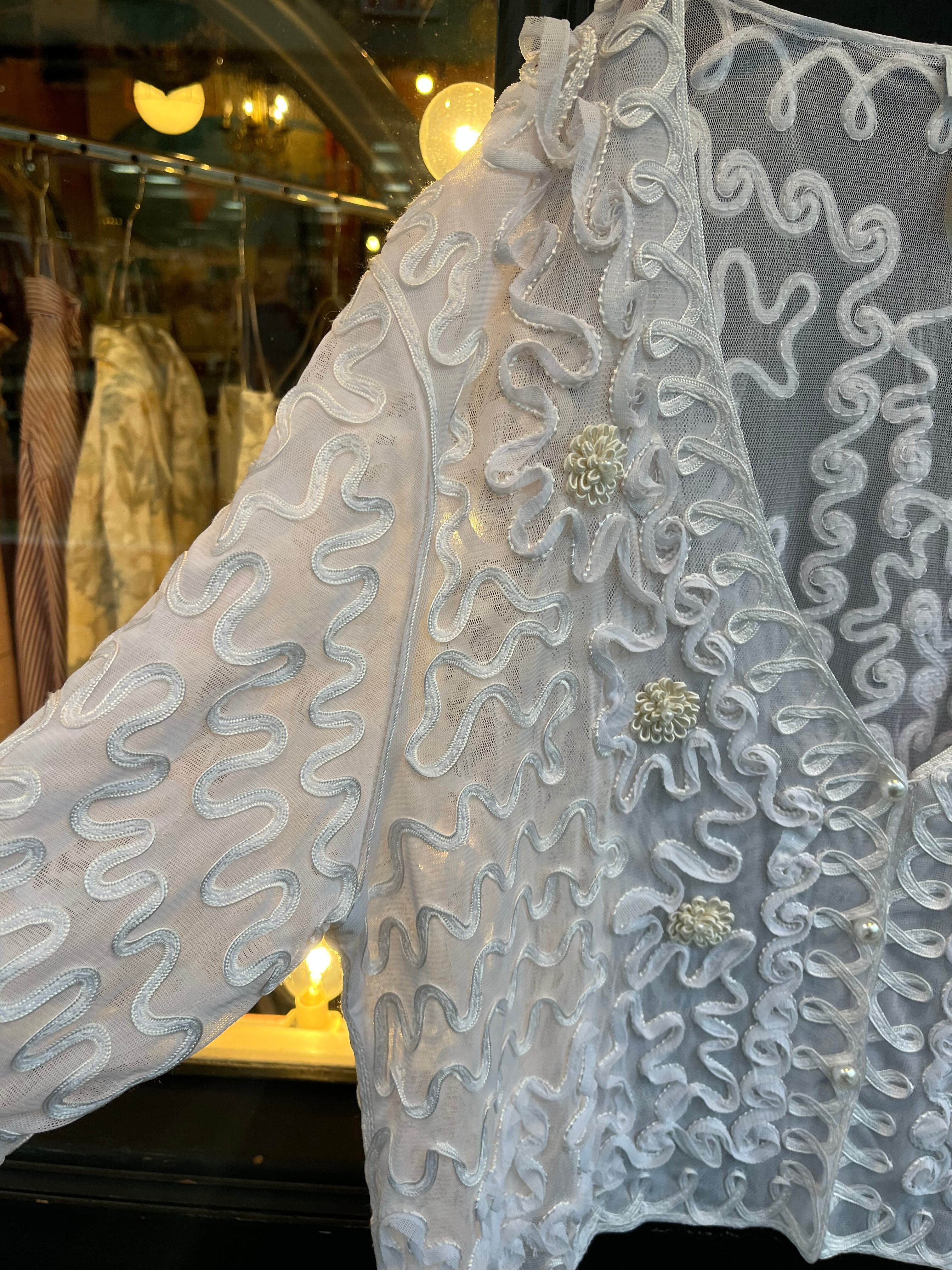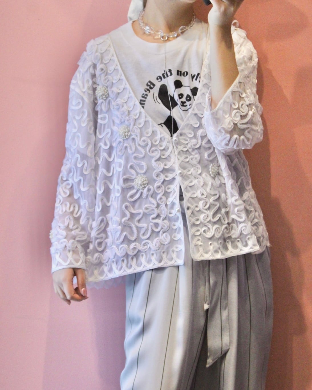 立体的なコード刺繍が全面に施されたシアーカーディガン