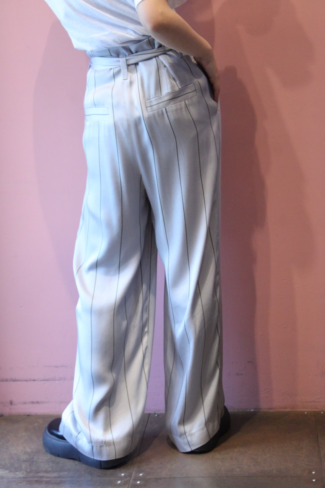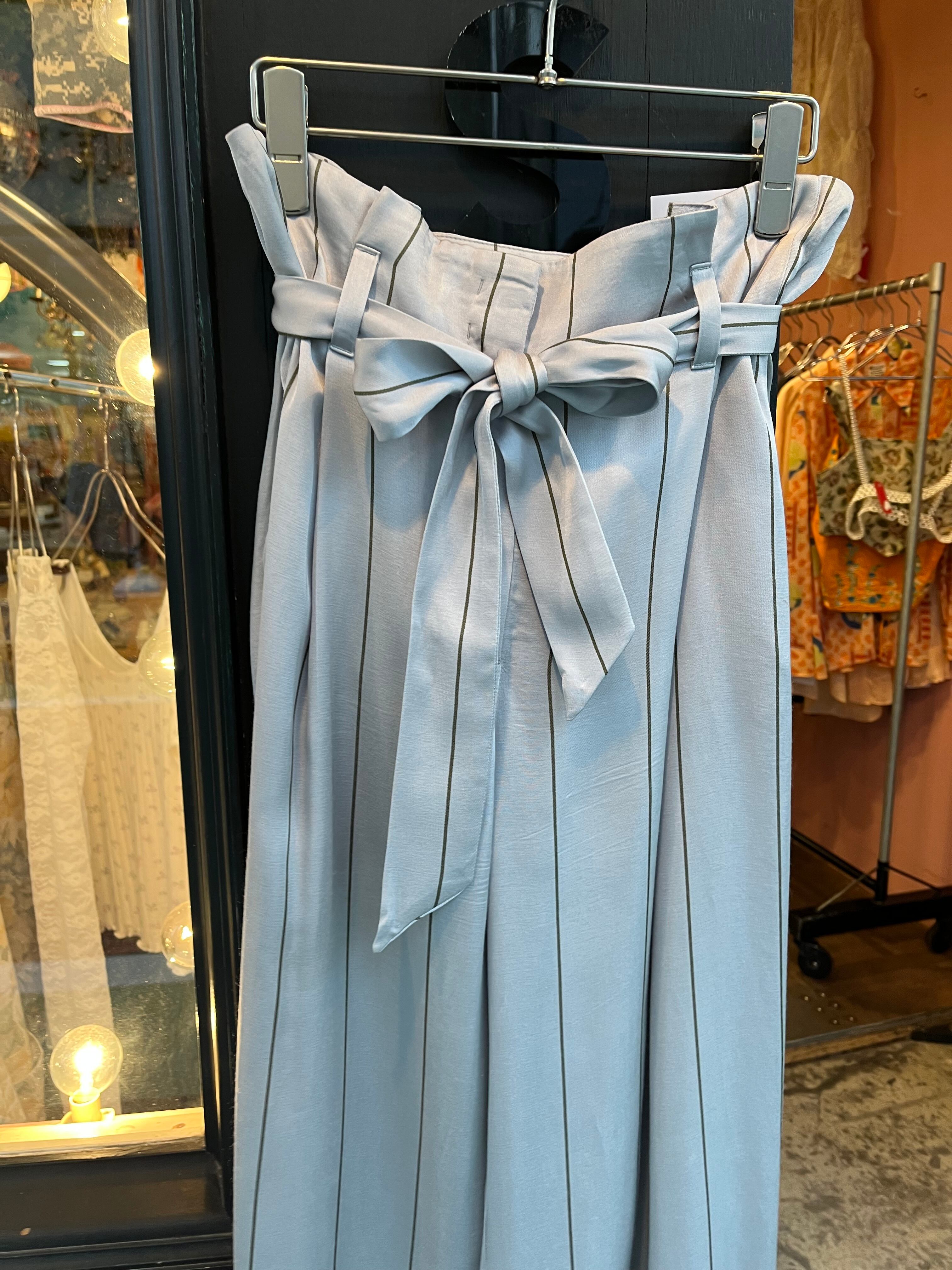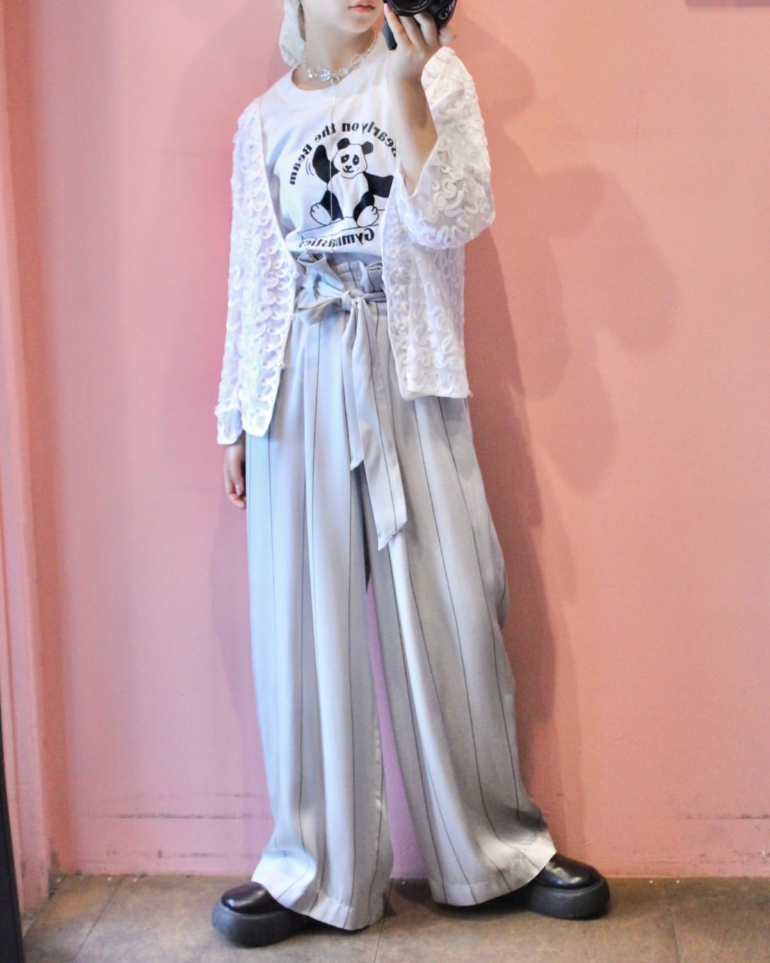 ハイウエストなデザインとウエストリボンが印象的なワイドパンツ