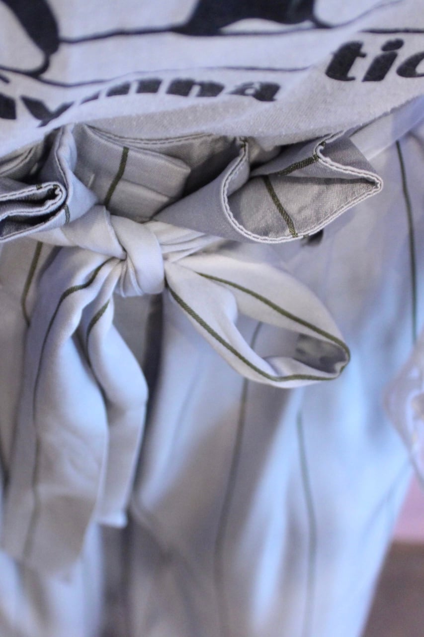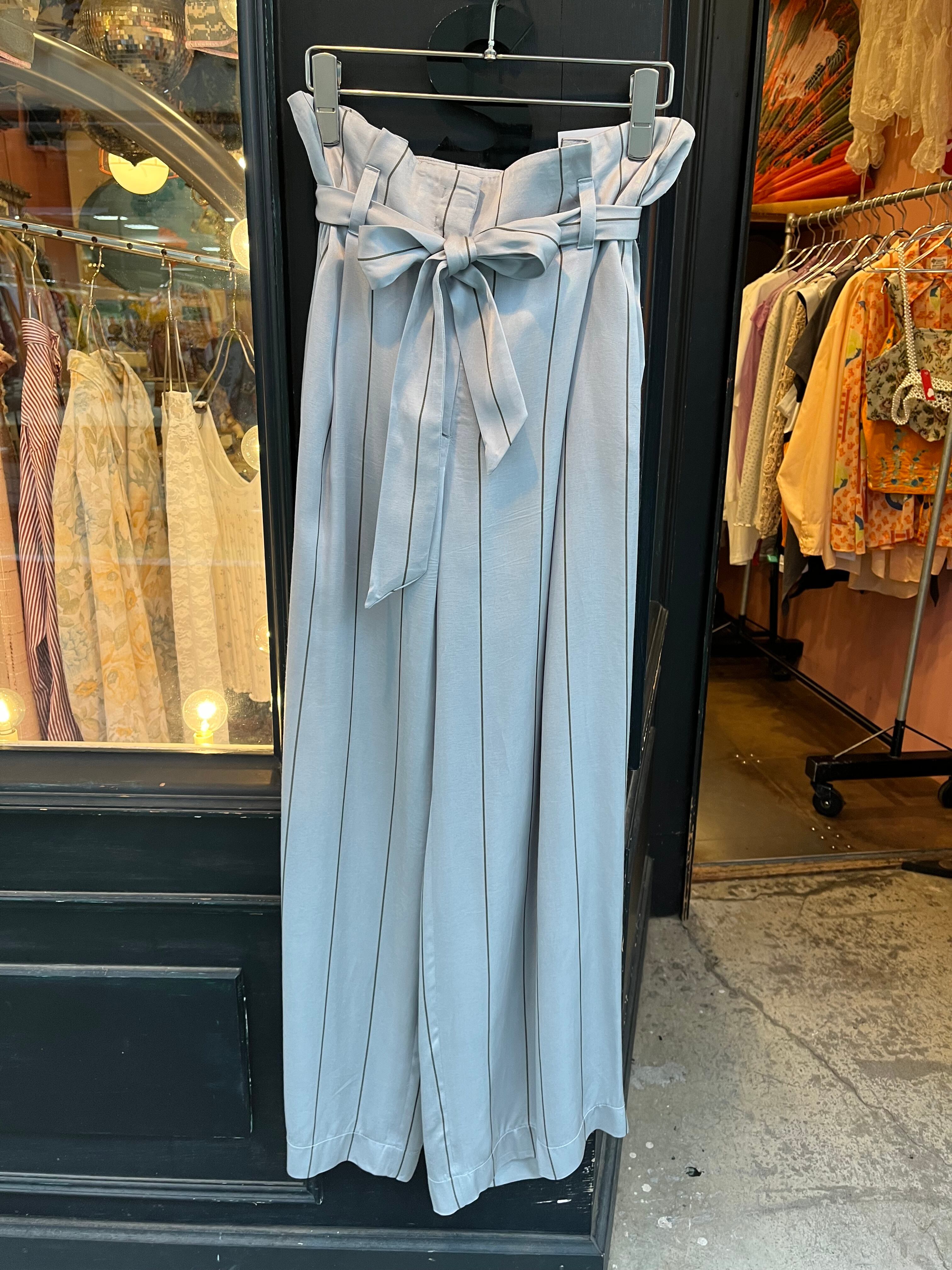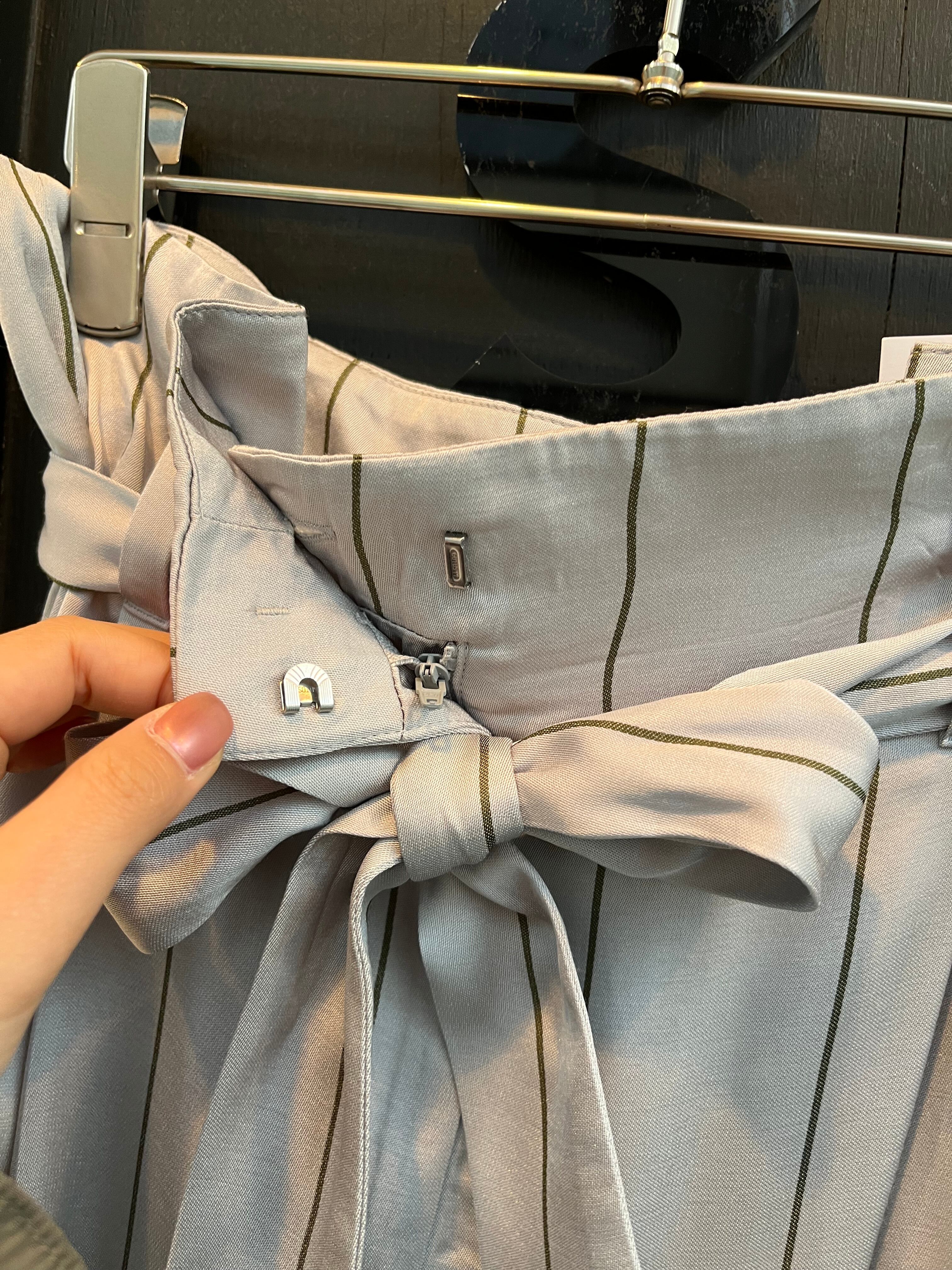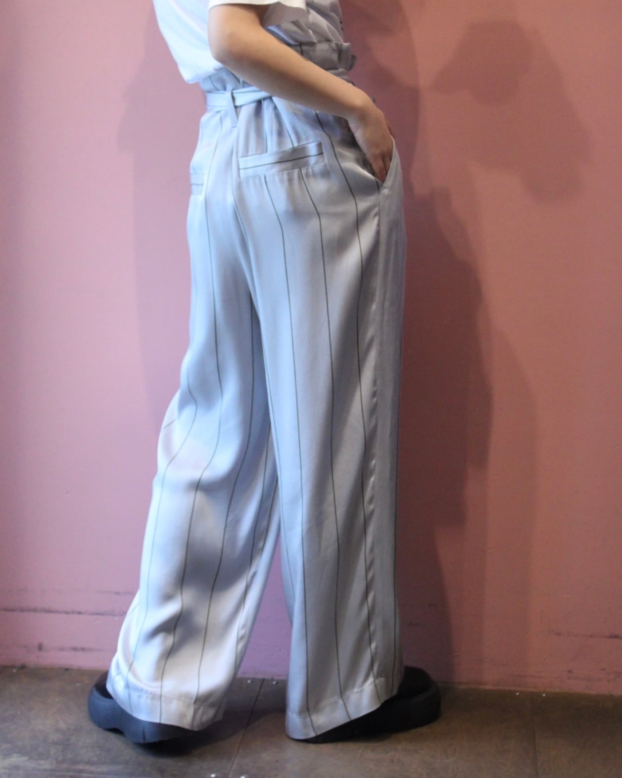 ハイウエストなデザインとウエストリボンが印象的なワイドパンツ