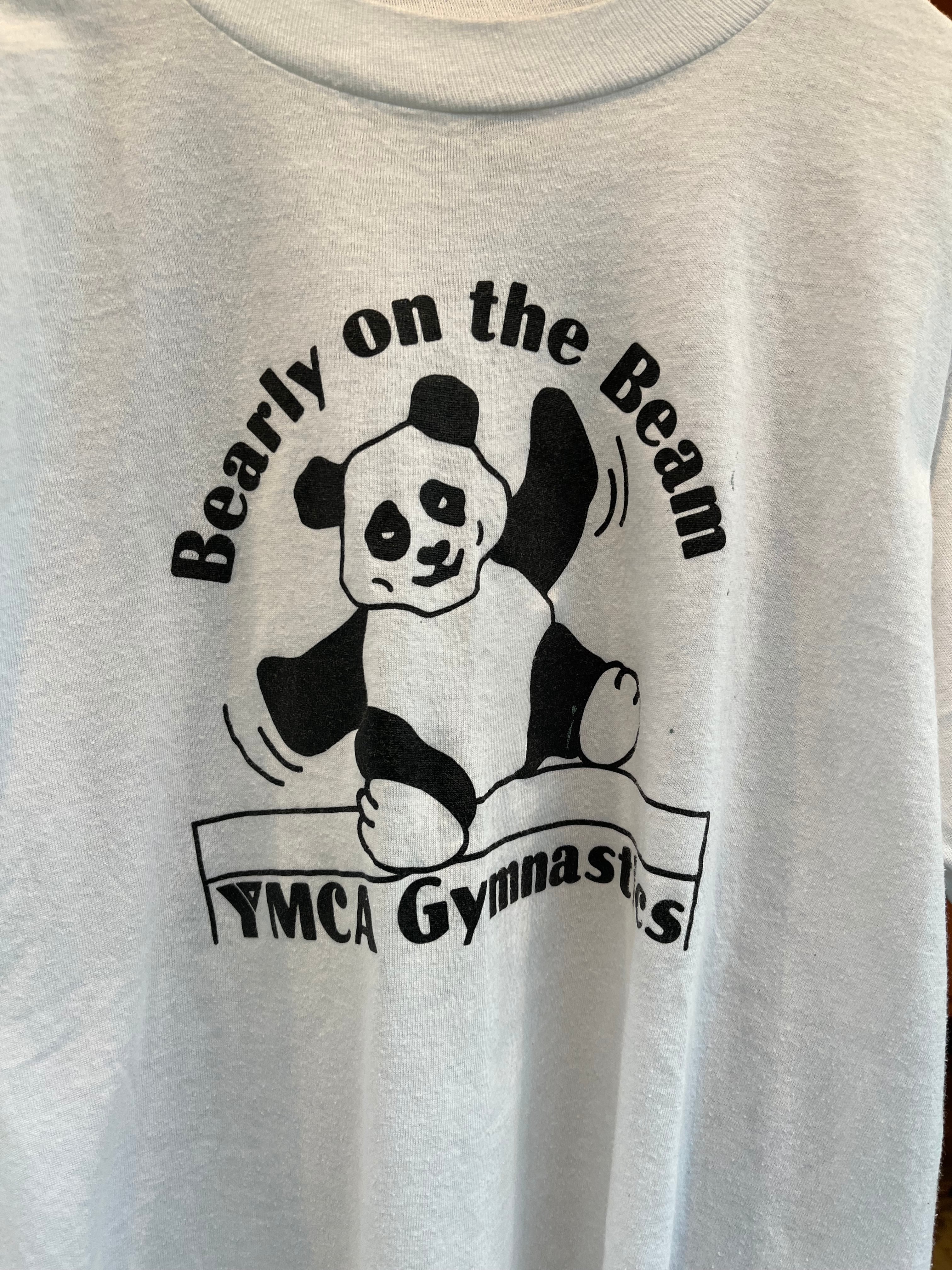 パンダのようなクマが平均台にのっているプリントtシャツ
