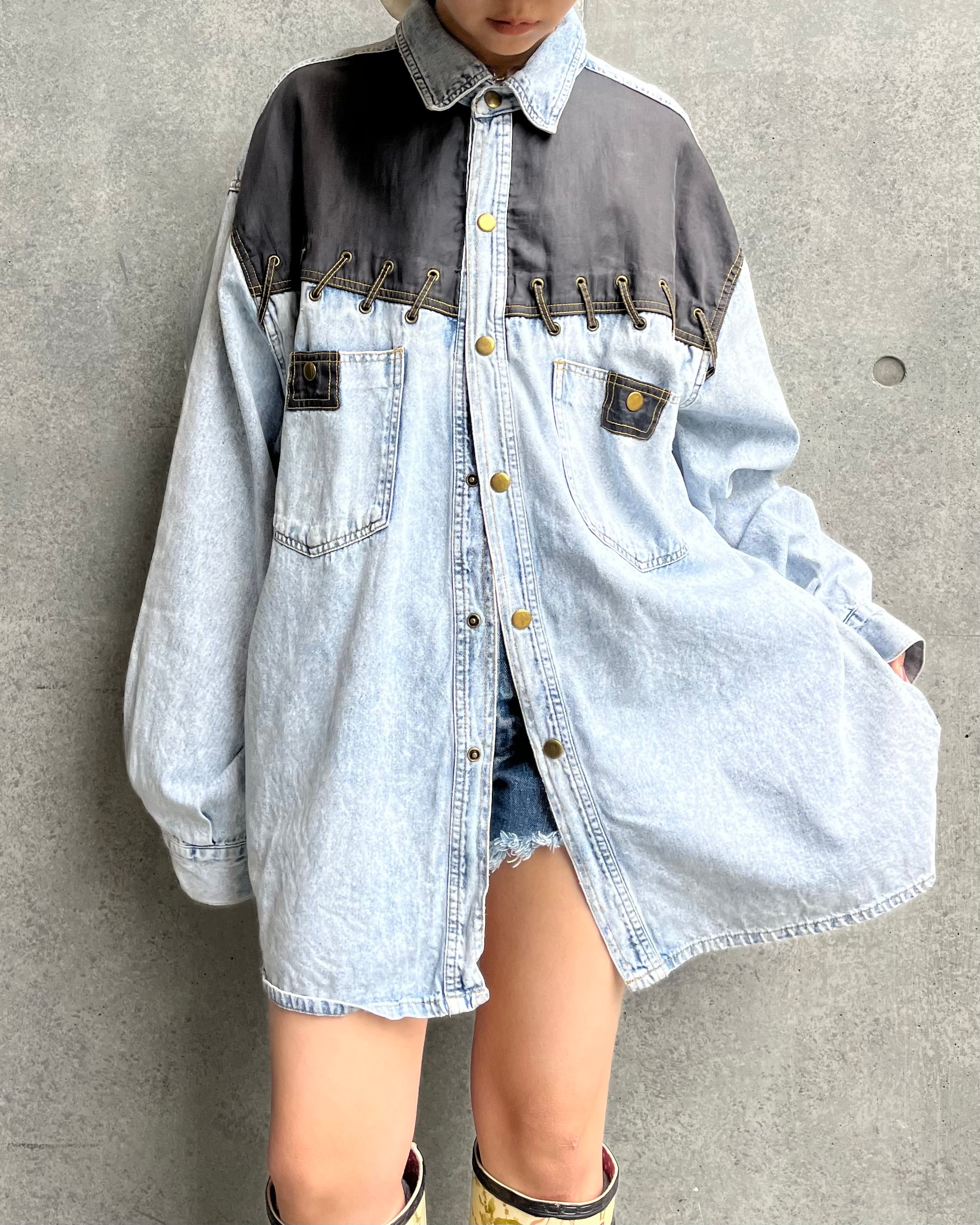 1990's chemical wash switching denim shirt