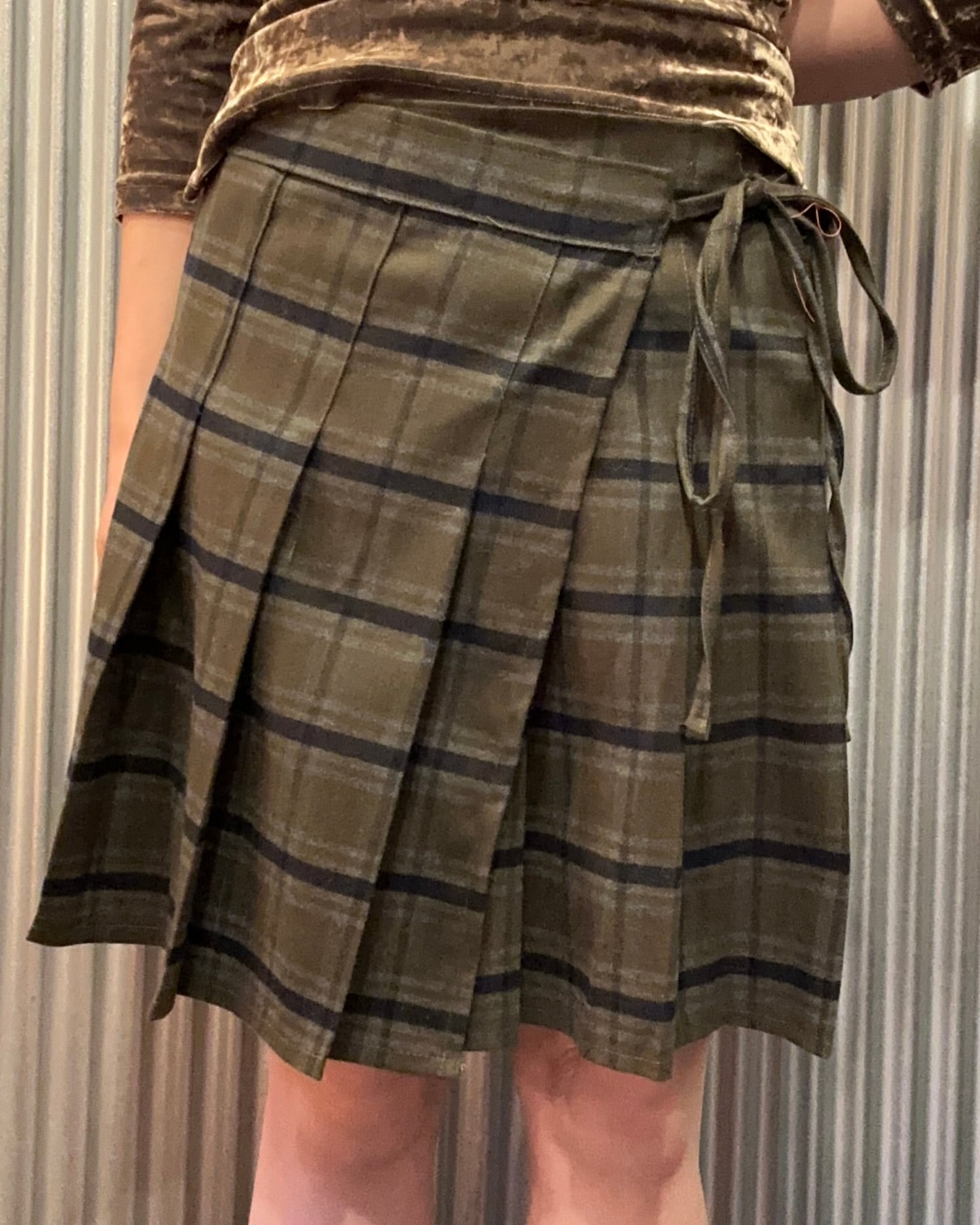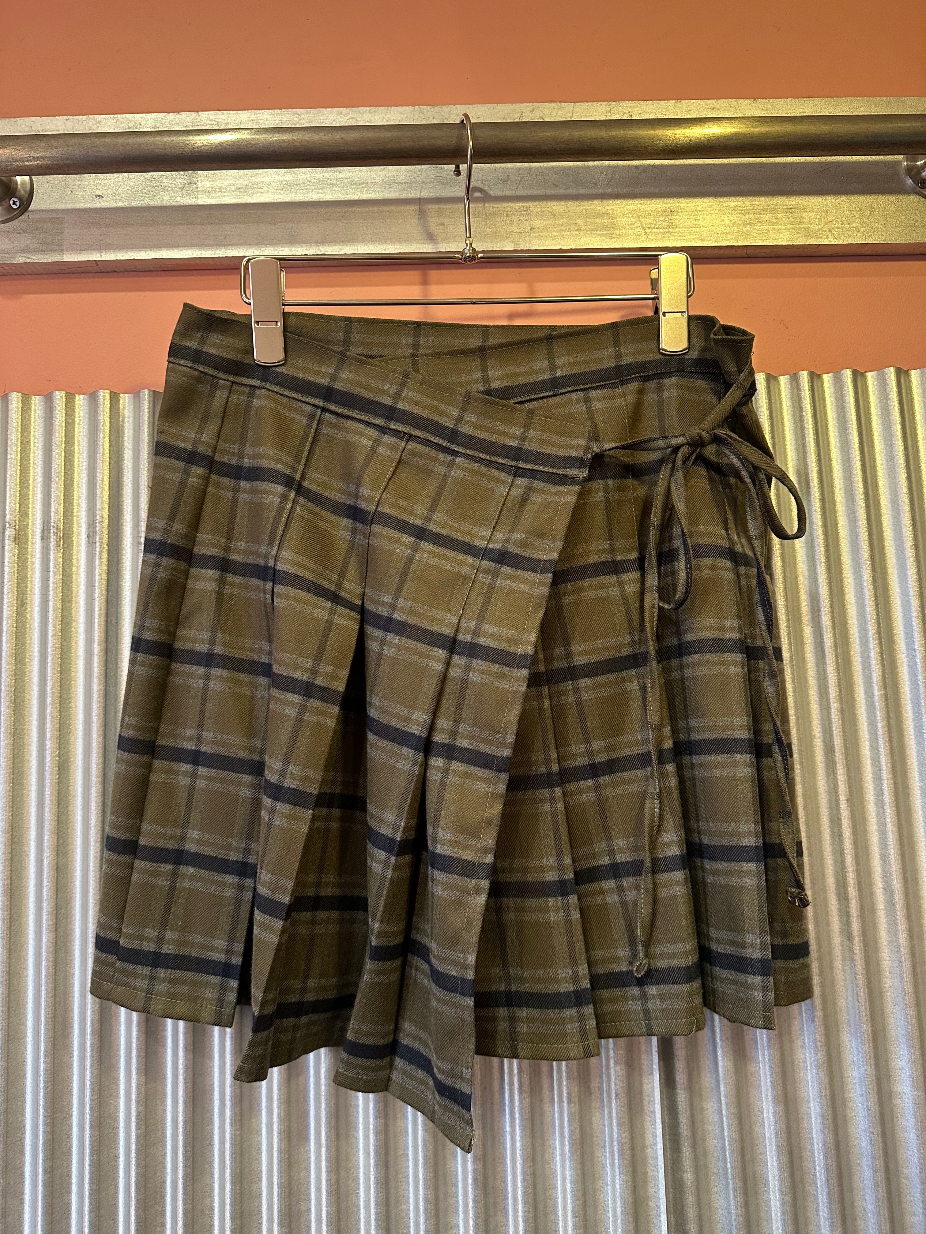 wrap check mini skirt