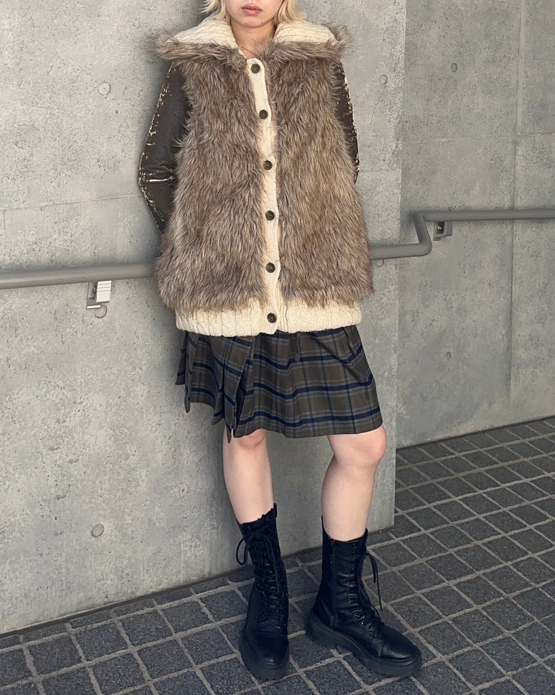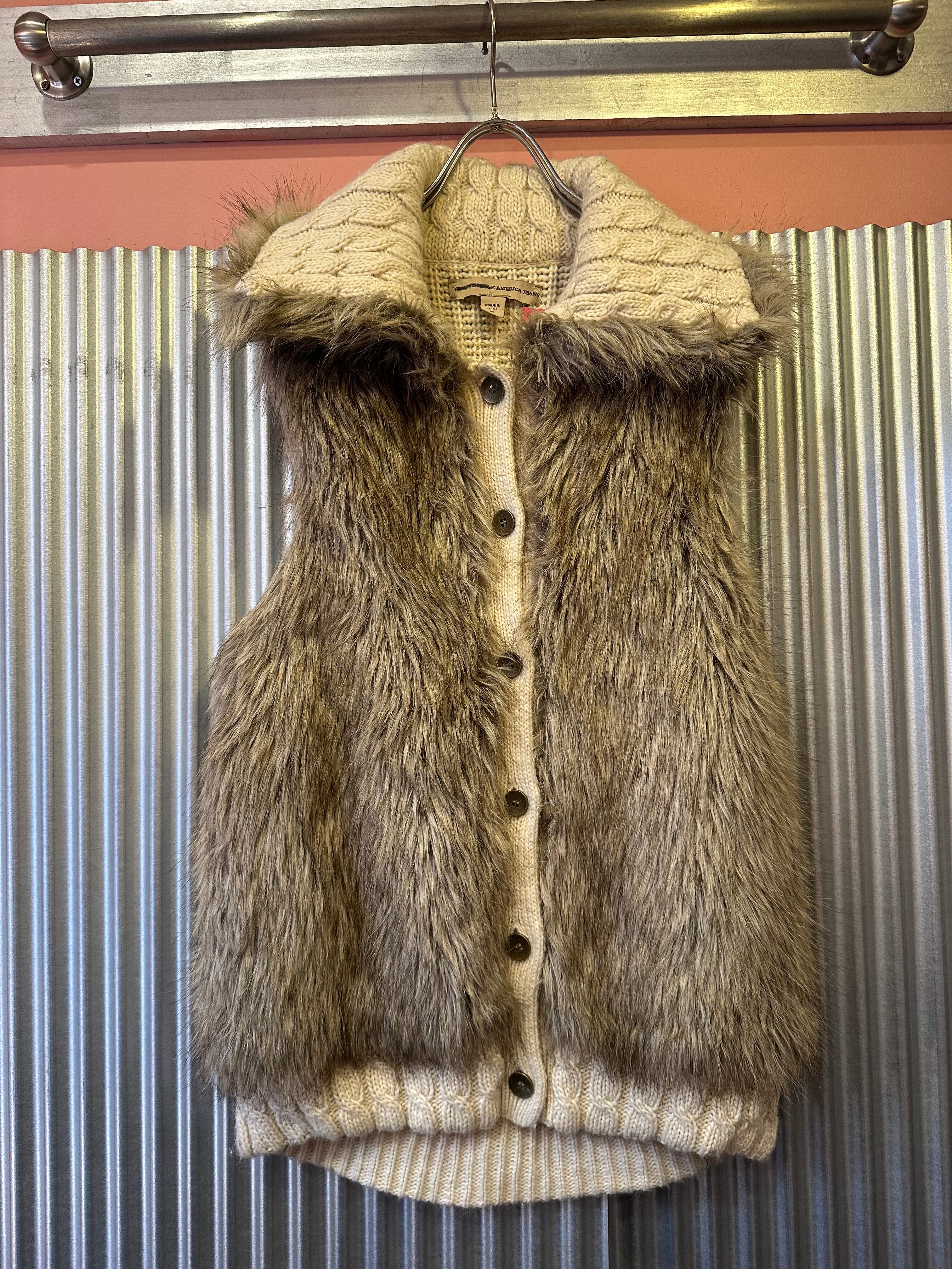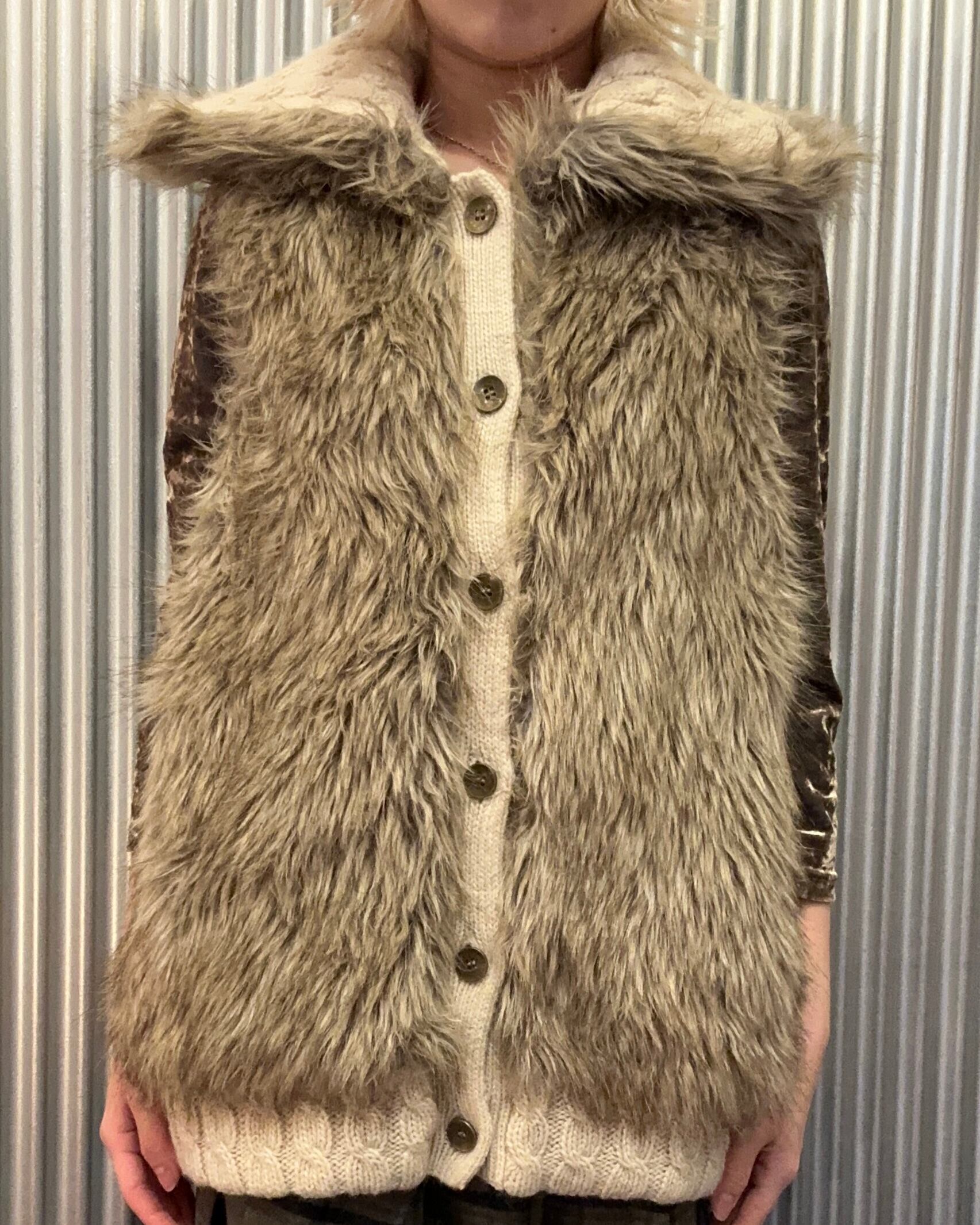2000's knit x faux fur vest